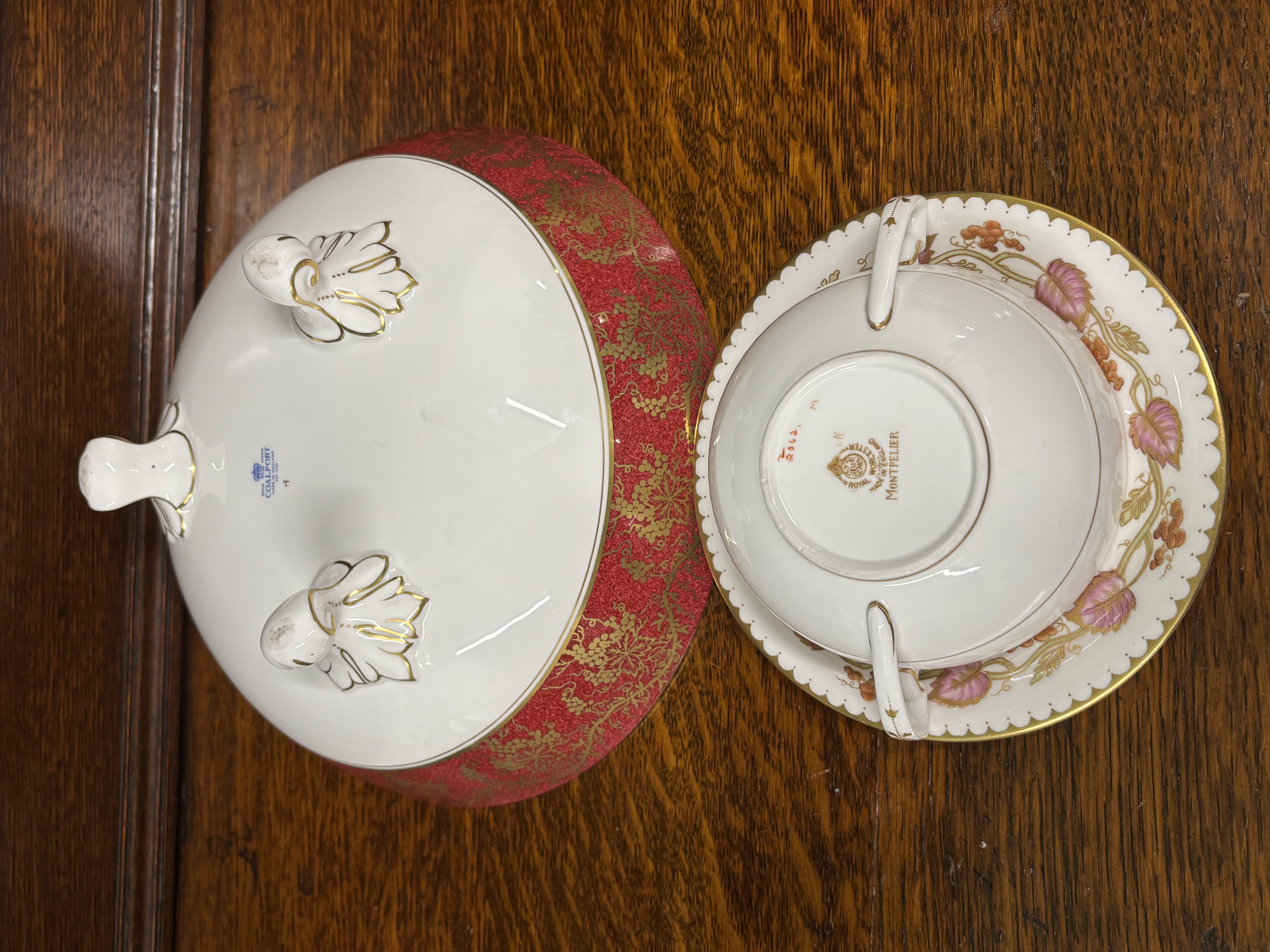 A Coalport fruit bowl on three feet together with a Royal Worcester Montpellier two handled cup and saucer