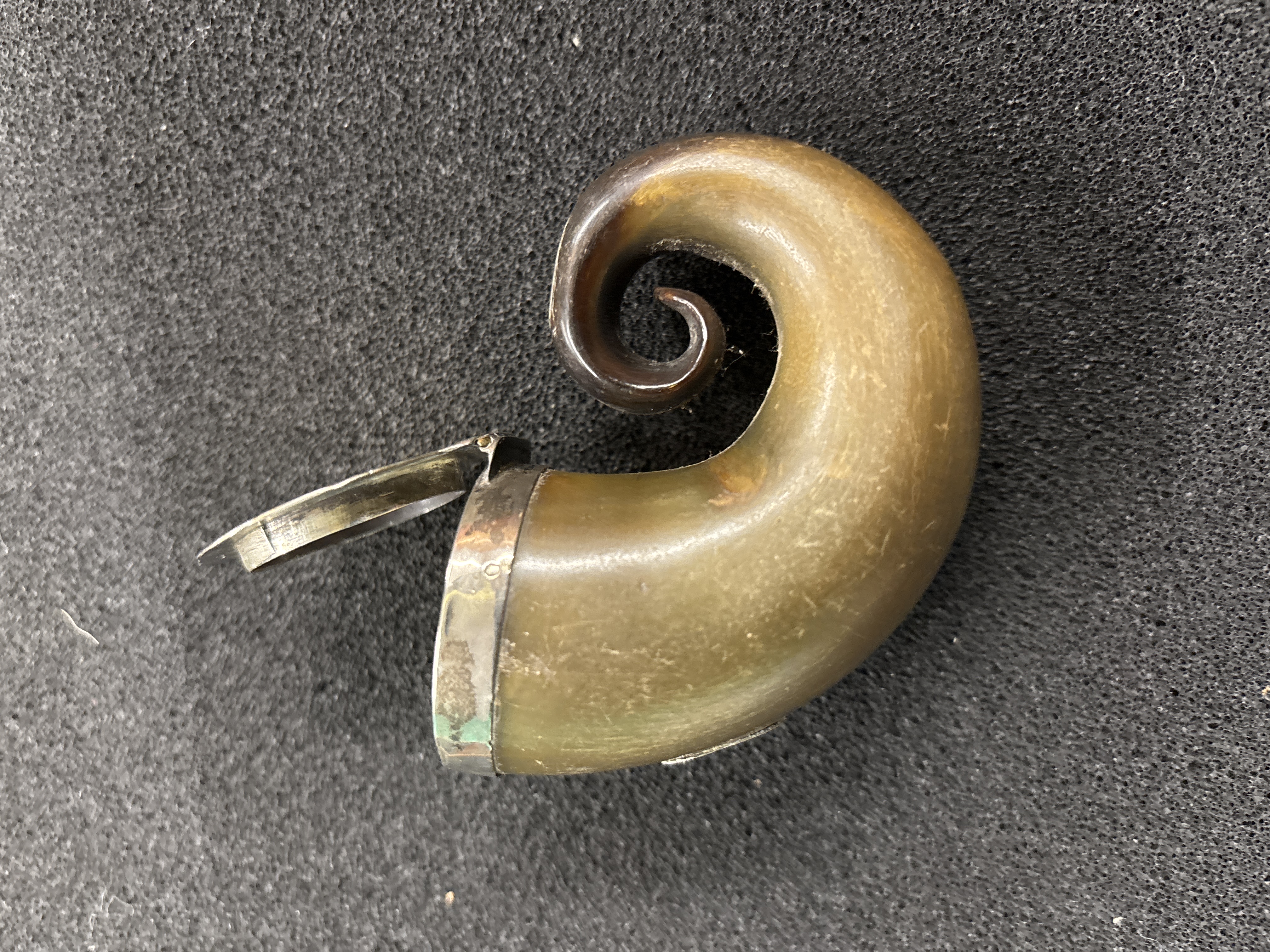 A 19th century Scottish Ram’s horn snuff Mull with white metal detail and engraved for J Easter