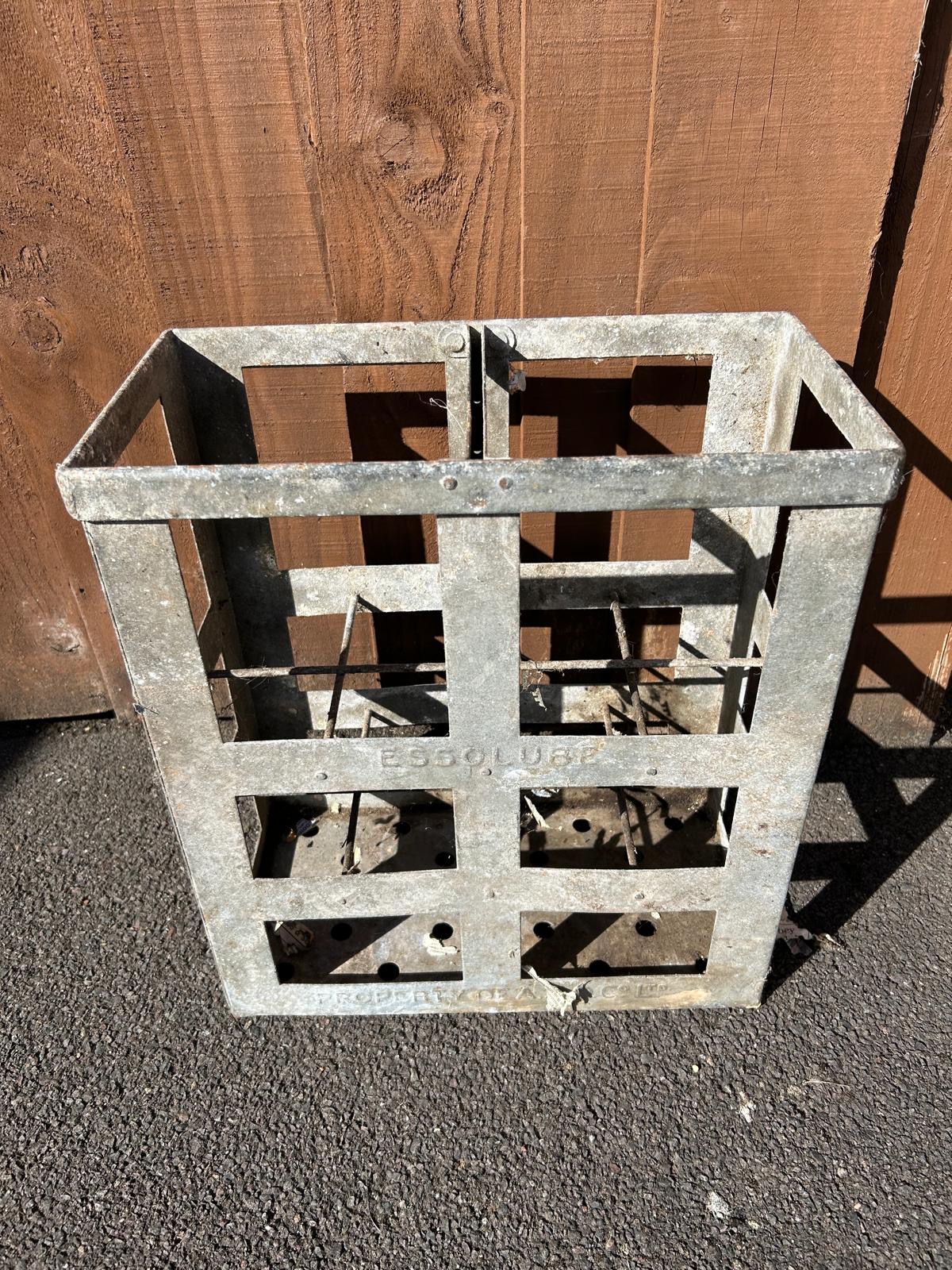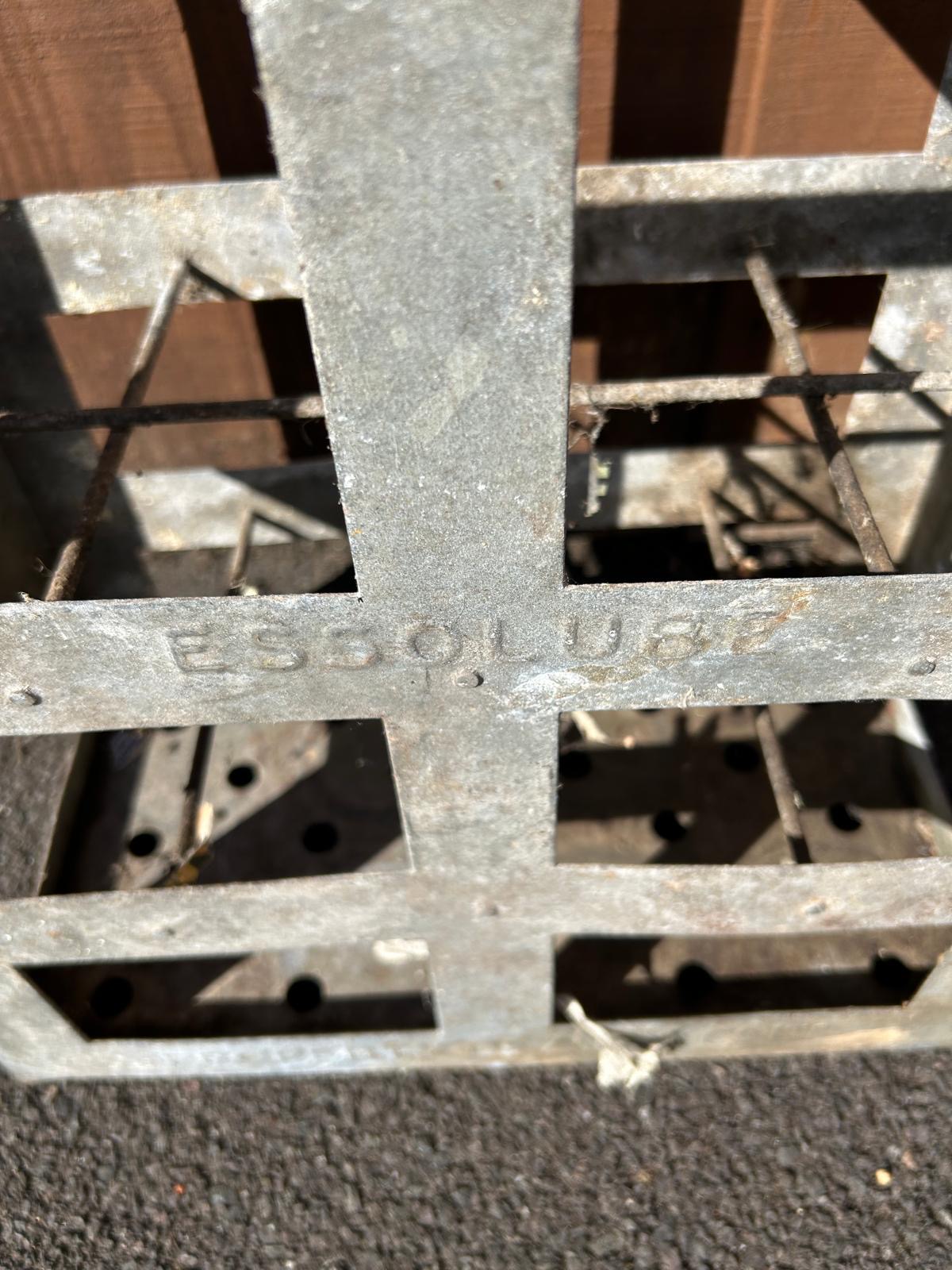 An original Esso Lube carrying frame with Esso Lube designed to carry eight bottles, stamped on the front, measuring 38 cm wide and 42 cm high