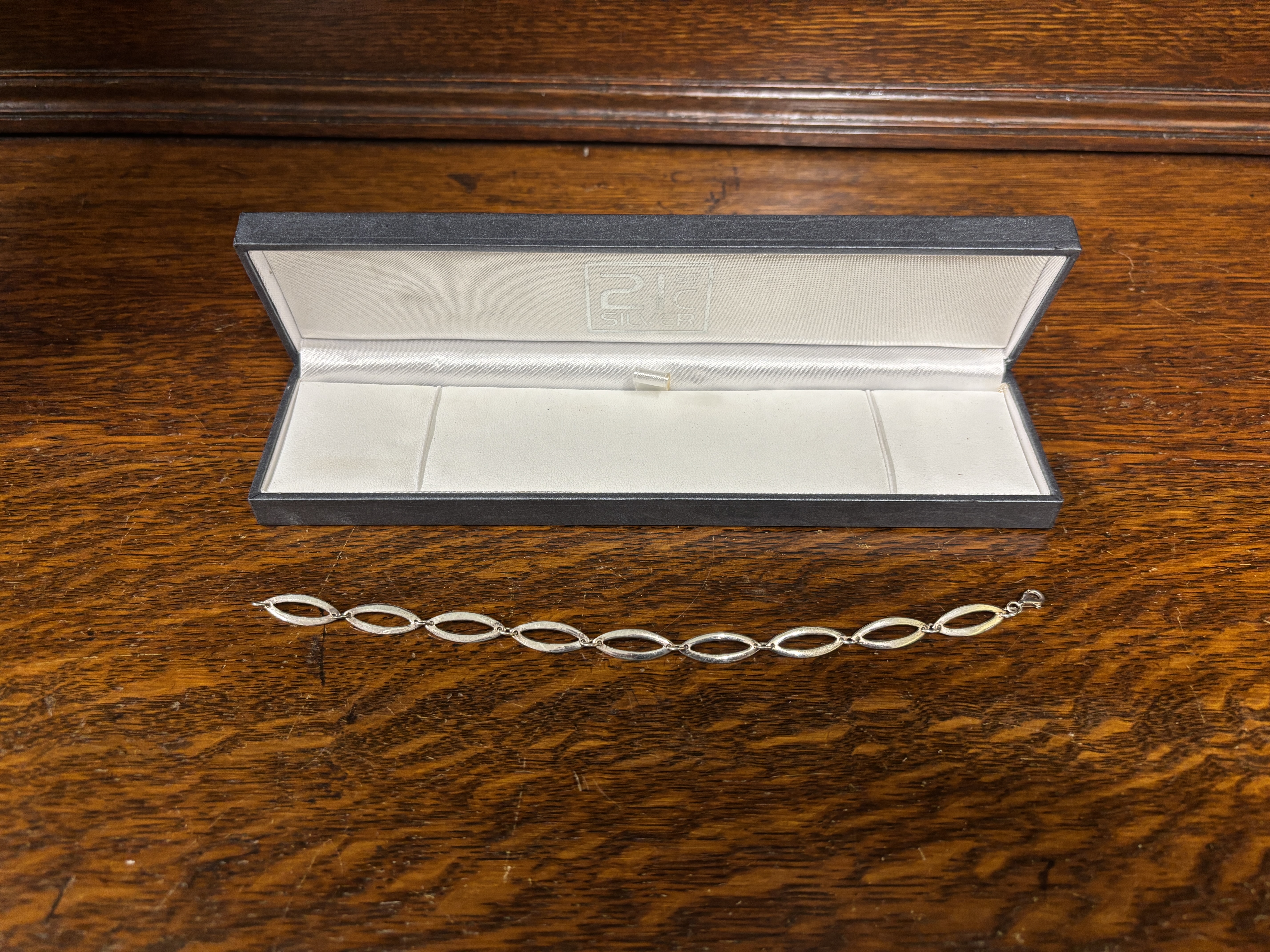 A Modern Silver-Toned Link Bracelet with ’21 SILVER’ Presentation Box