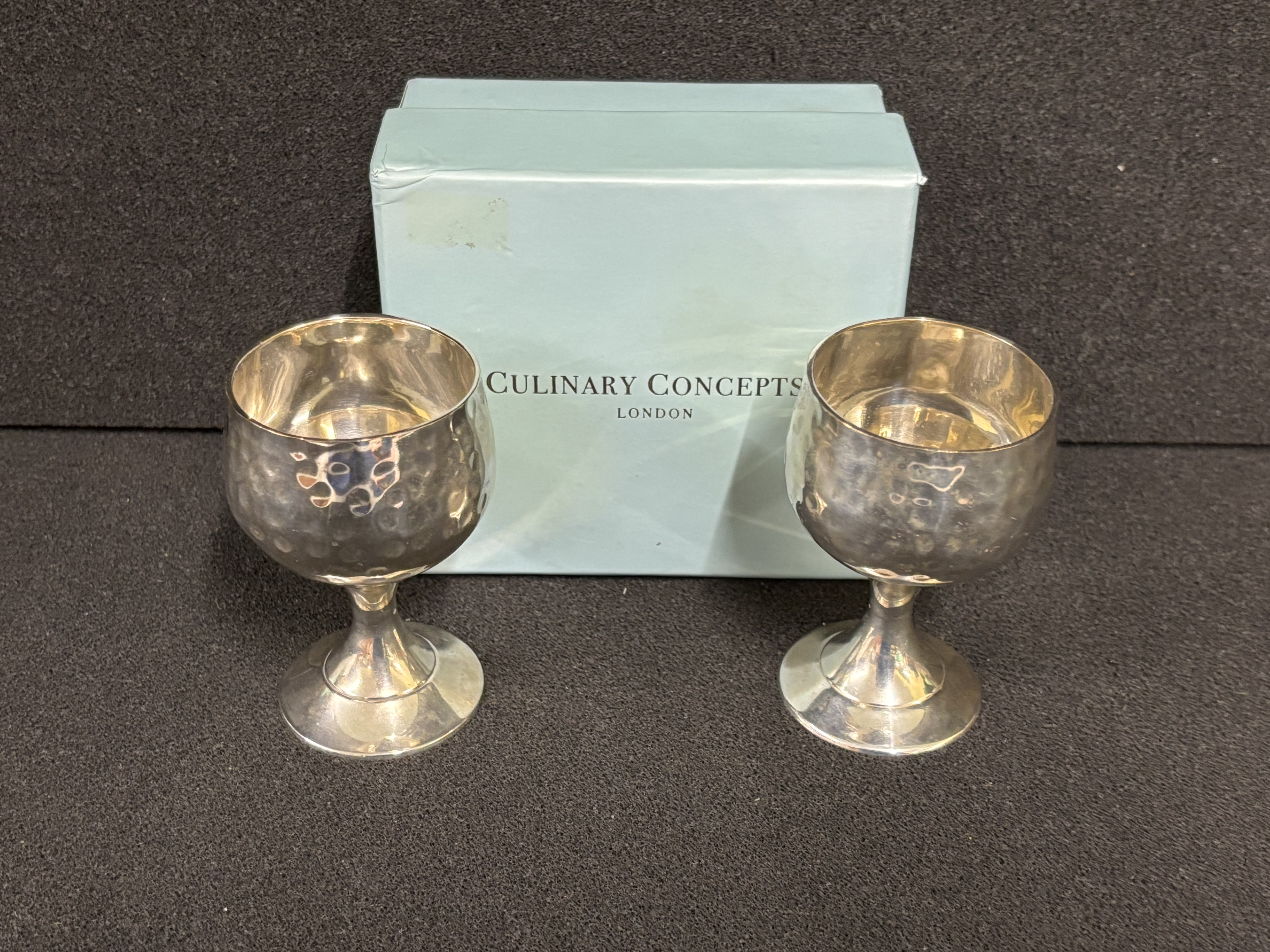 A pair of small aperative goblets in original Culinary Concepts box measuring 8 cm tall