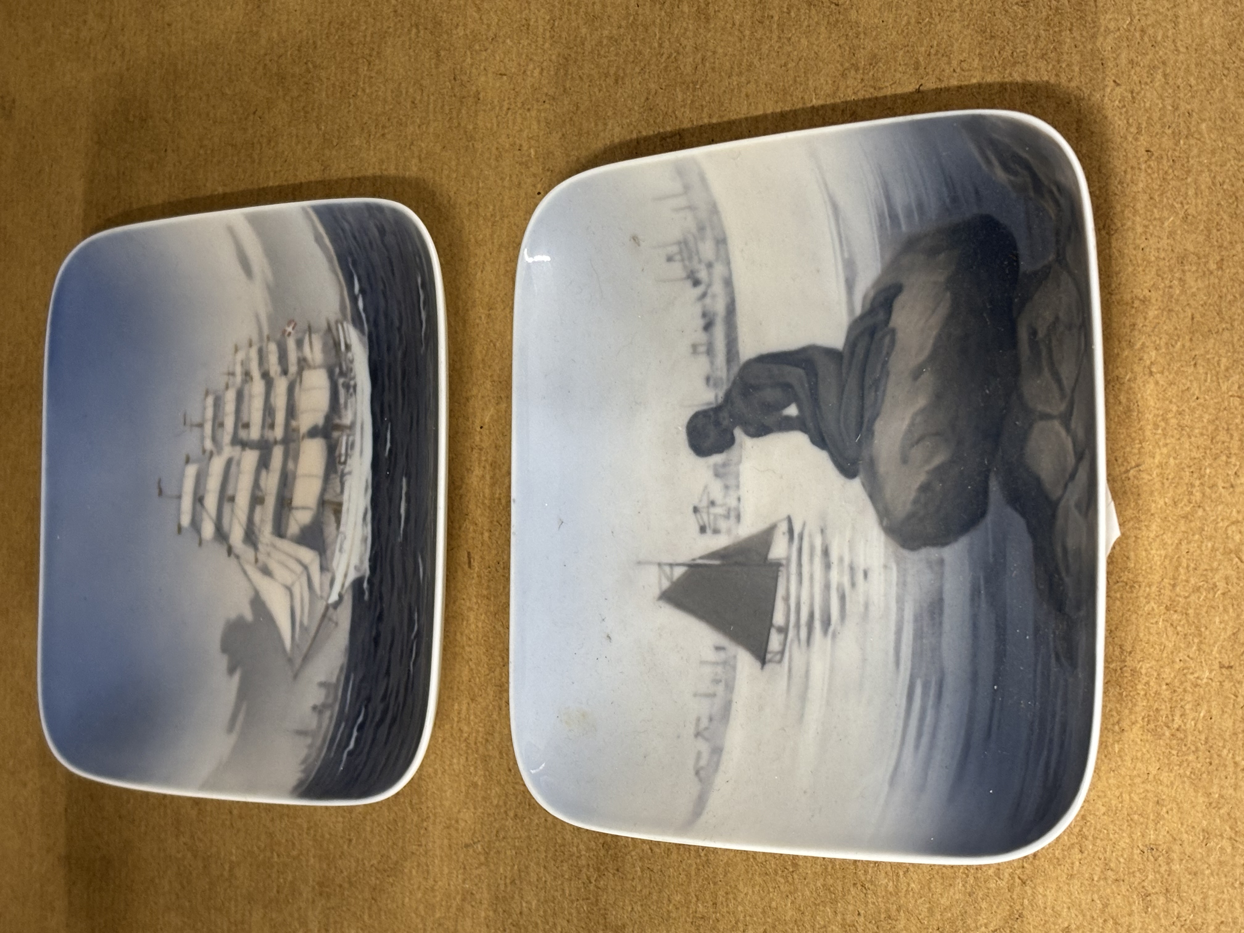 Two Royal Copenhagen pin dishes, one of The Mermaid and one of a galleon each 13 cm wide