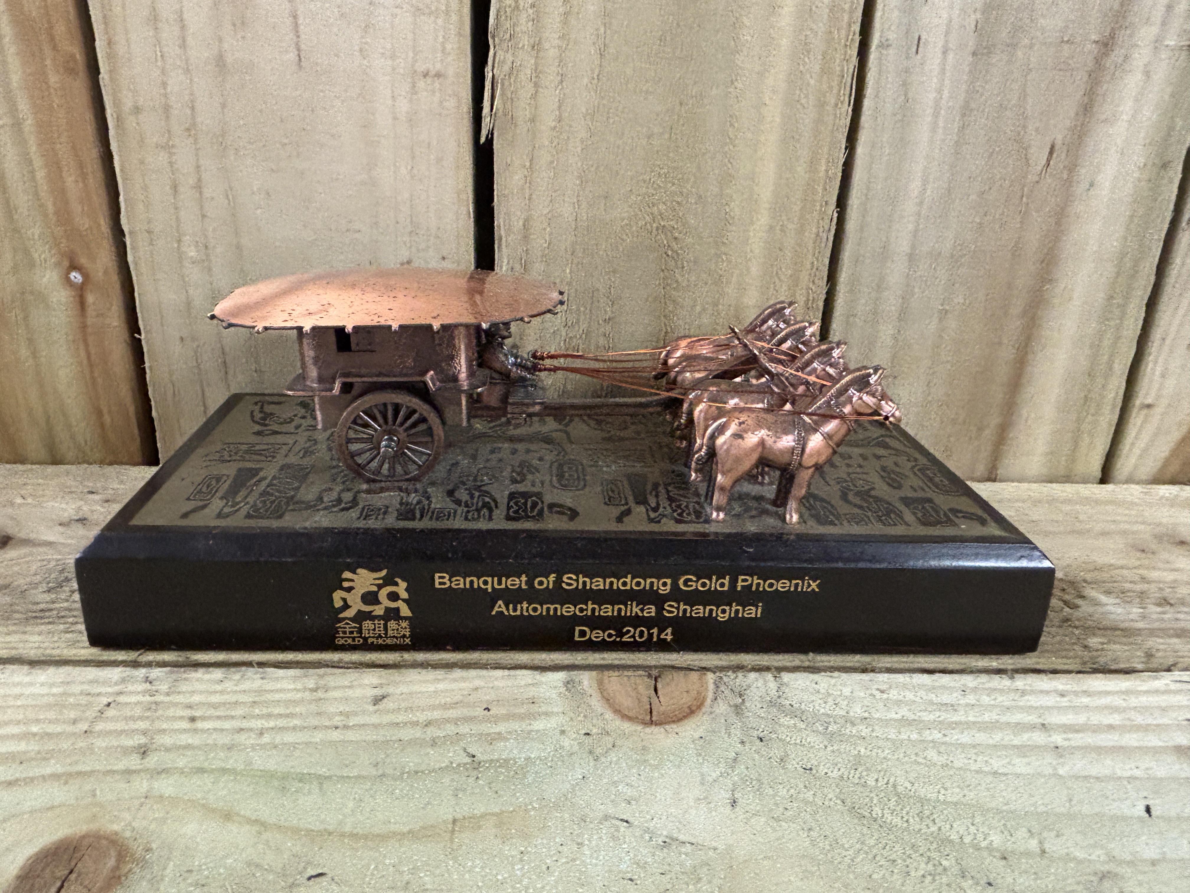 A copper model of four horses and chariot presented in December 2014 at the Banquet of Shandong Gold Phoenix Automechanika Shanghai