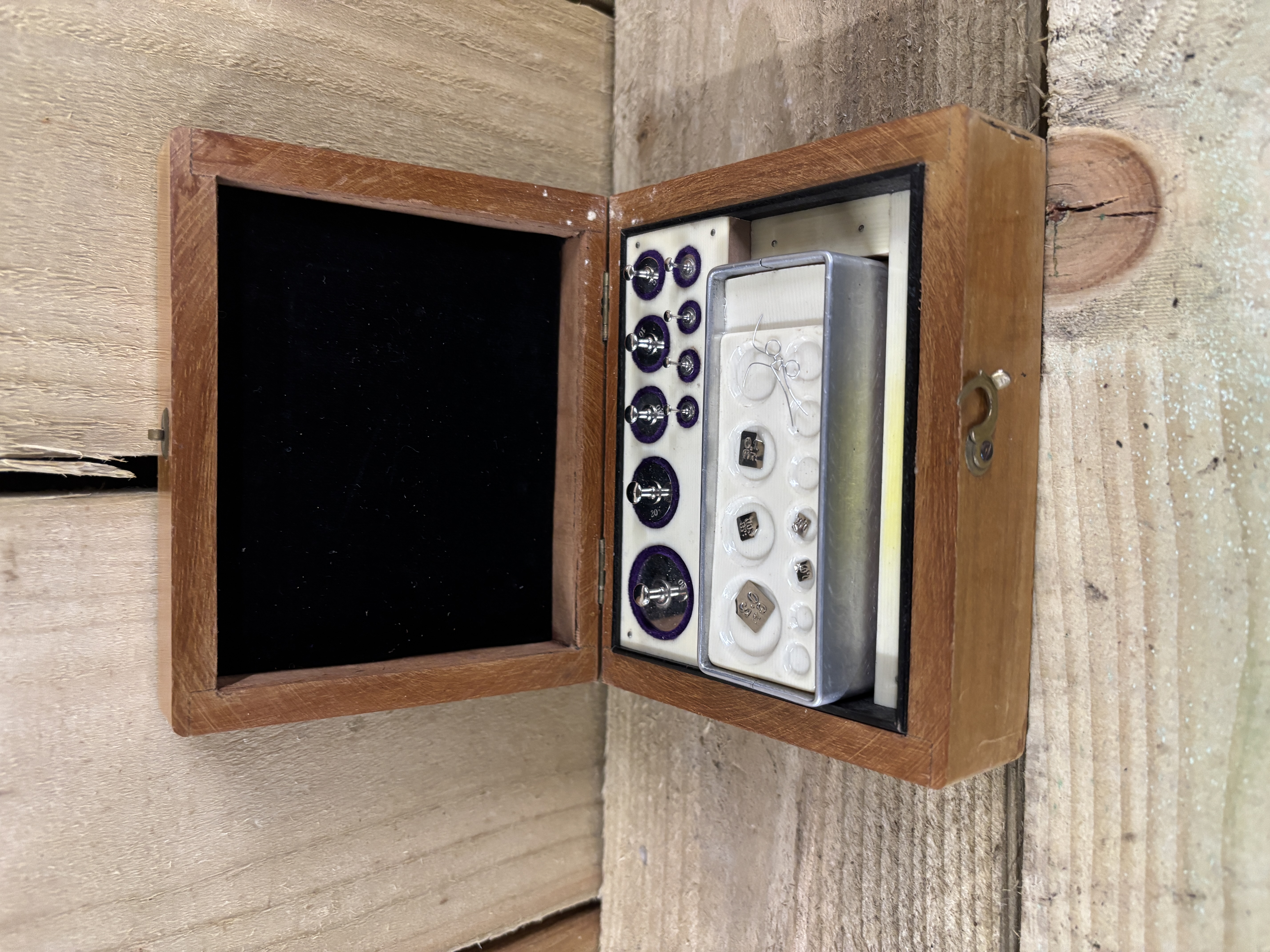 A boxed set of jeweller’s weights ranging from 0.1 gm to 50 gm