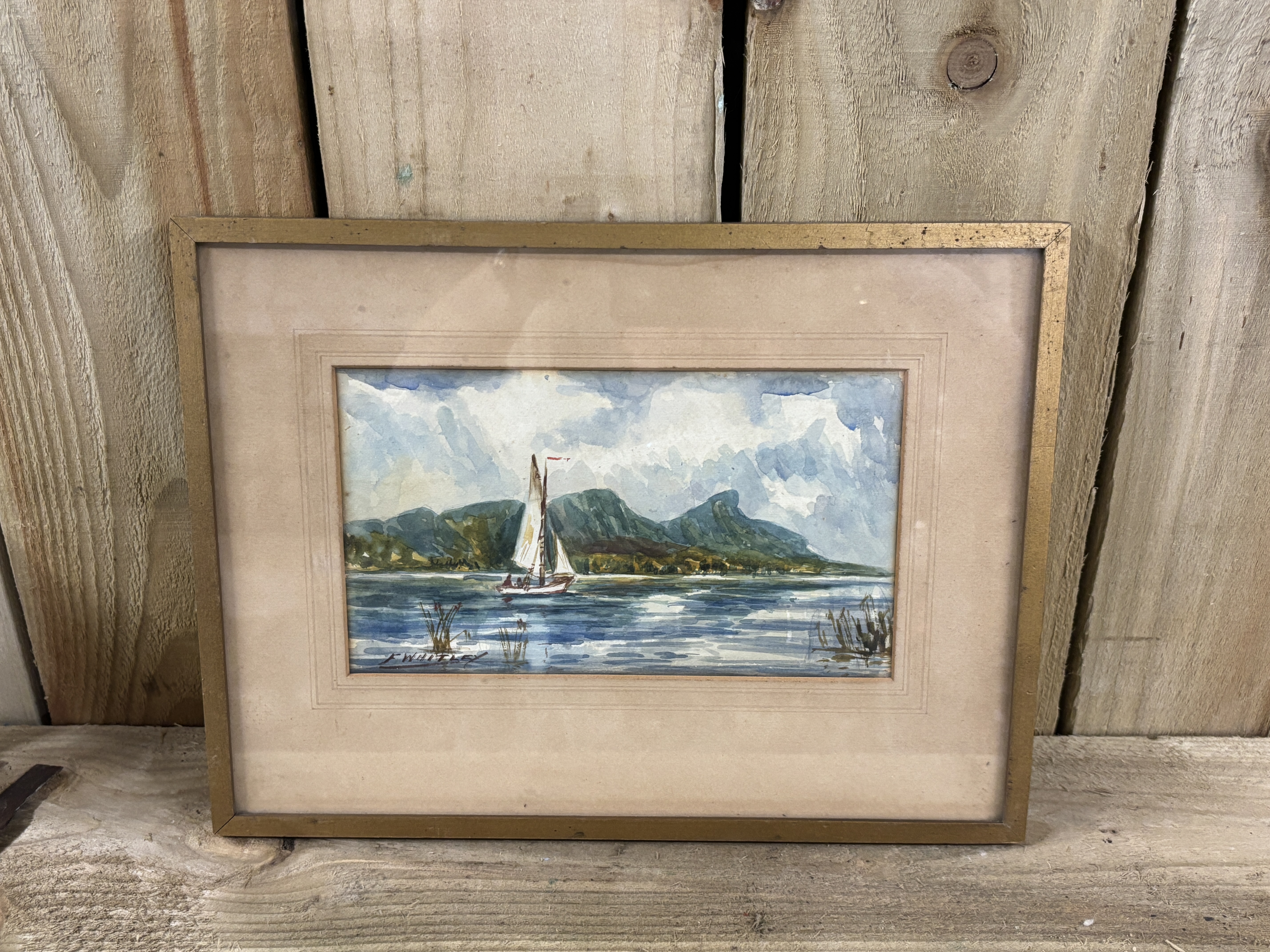 A Watercolour by F Whitley of a yacht measuring 25 x 33 cm