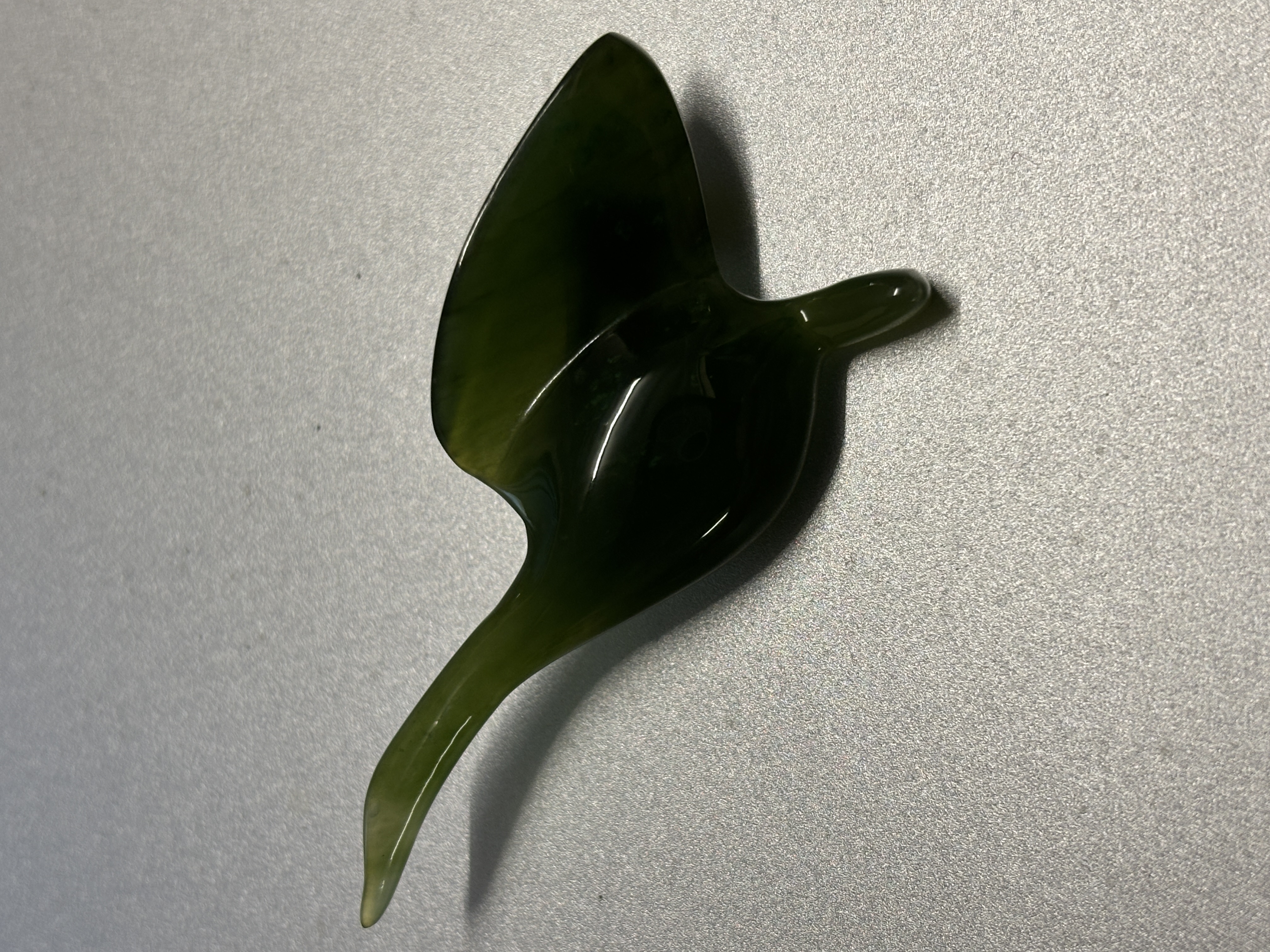 A Jade brooch in the shape of a Canada Goose, pin is missing from the back