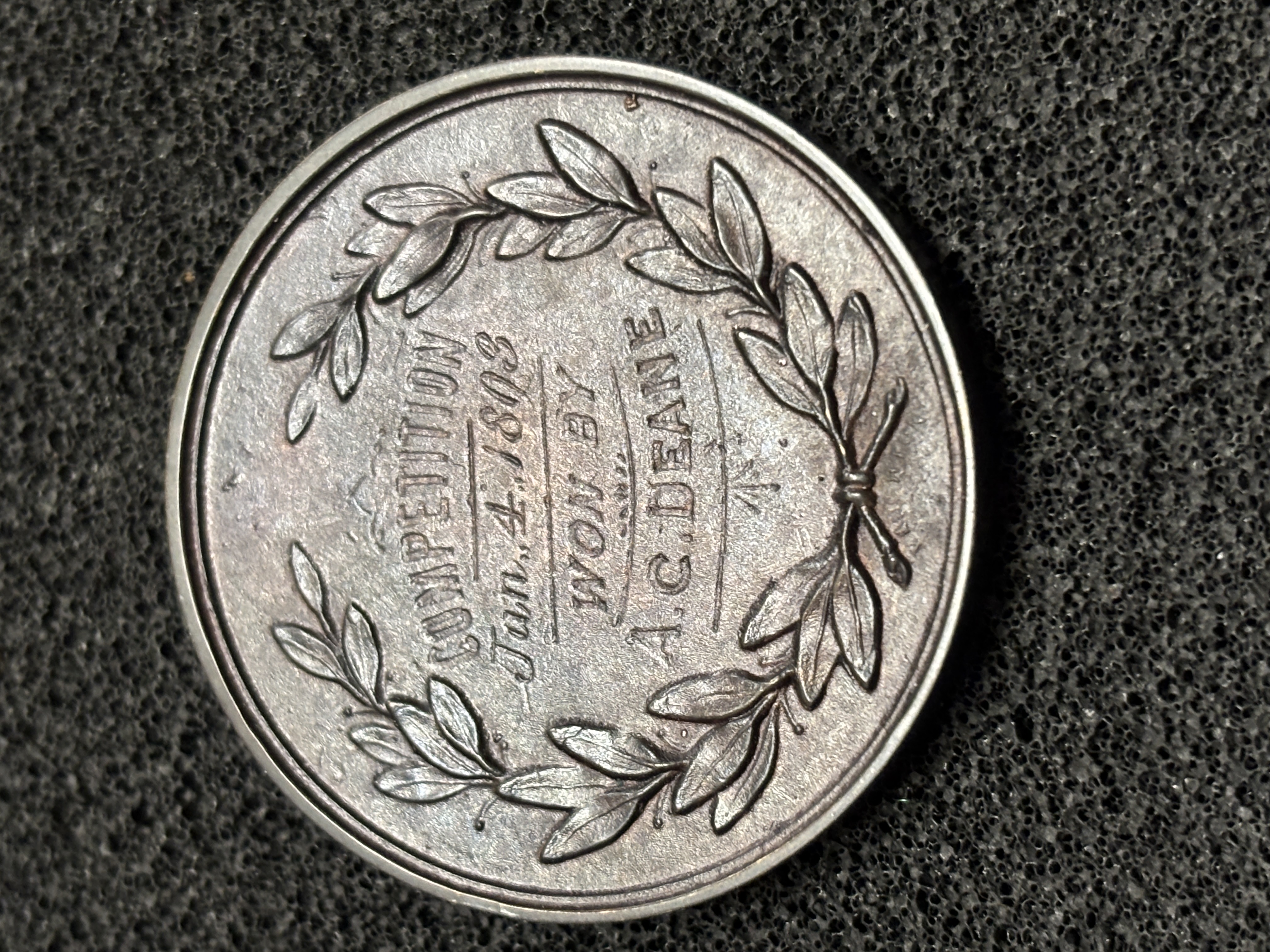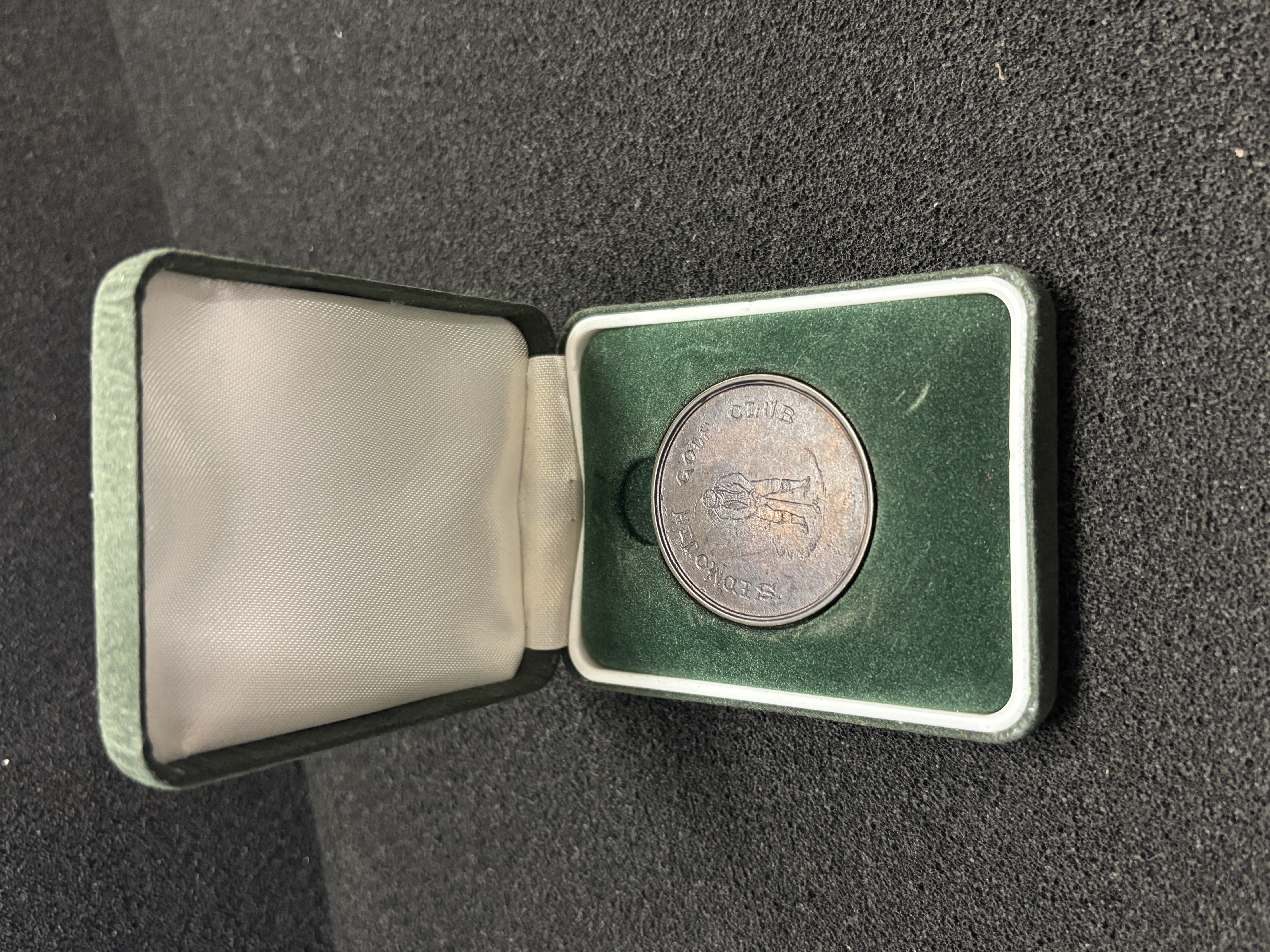 A boxed medallion from Sidmouth Golf Club, won by A C Deane on January 4th 1803