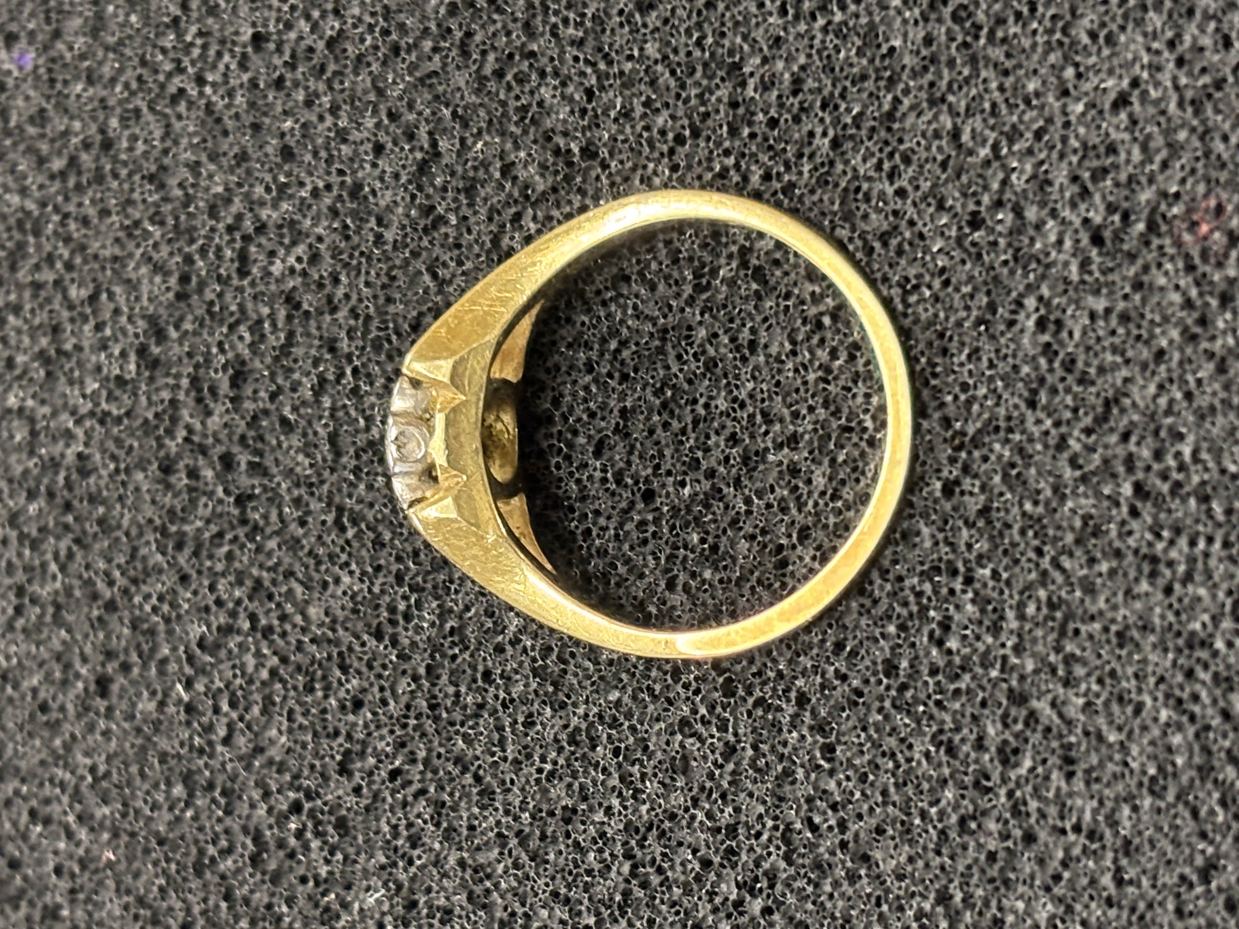 An 18 ct ring (stone missing) weighing 3.6gm