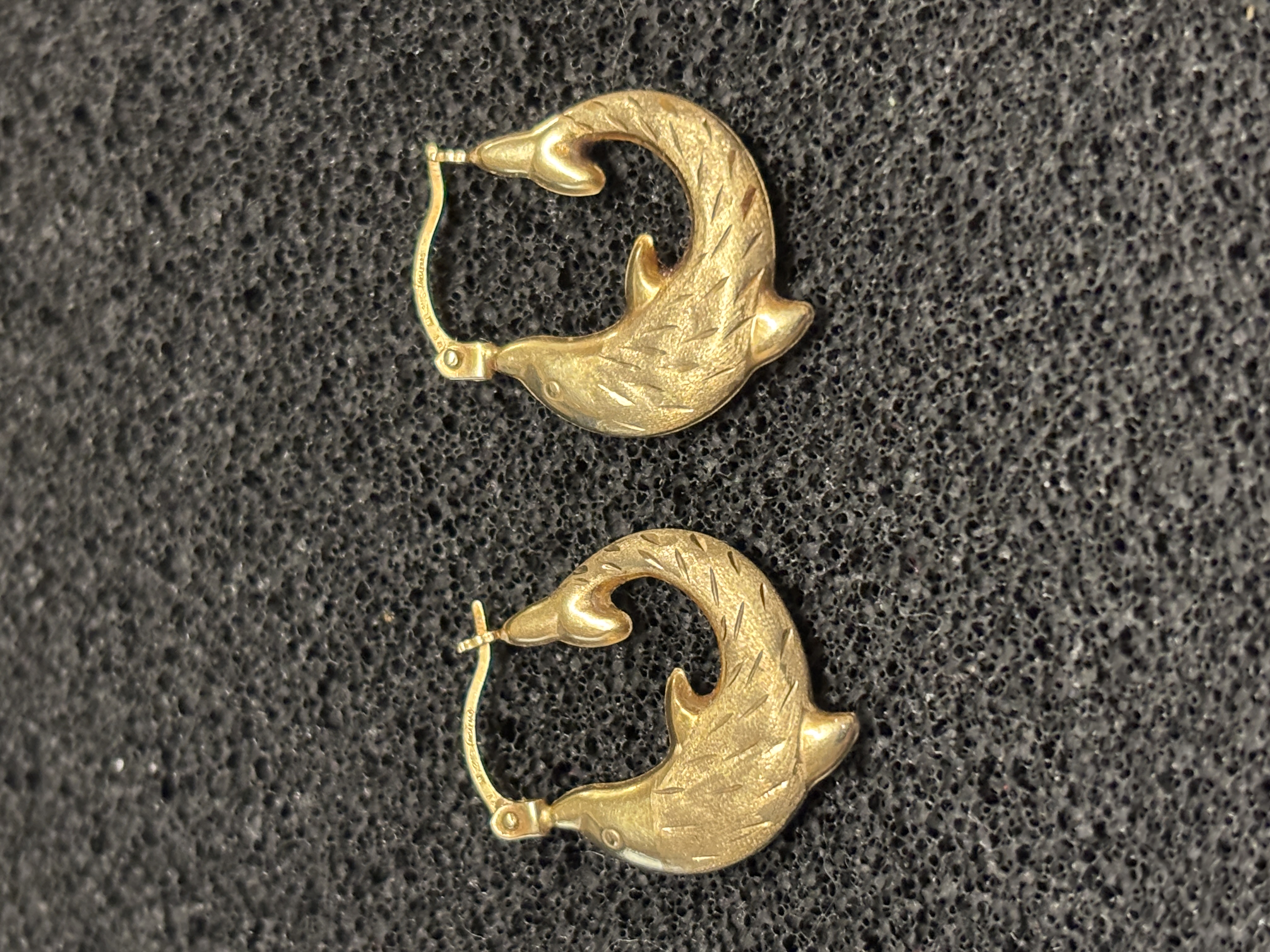 A pair of 9ct gold dolphin earrings weighing 0.59 gms