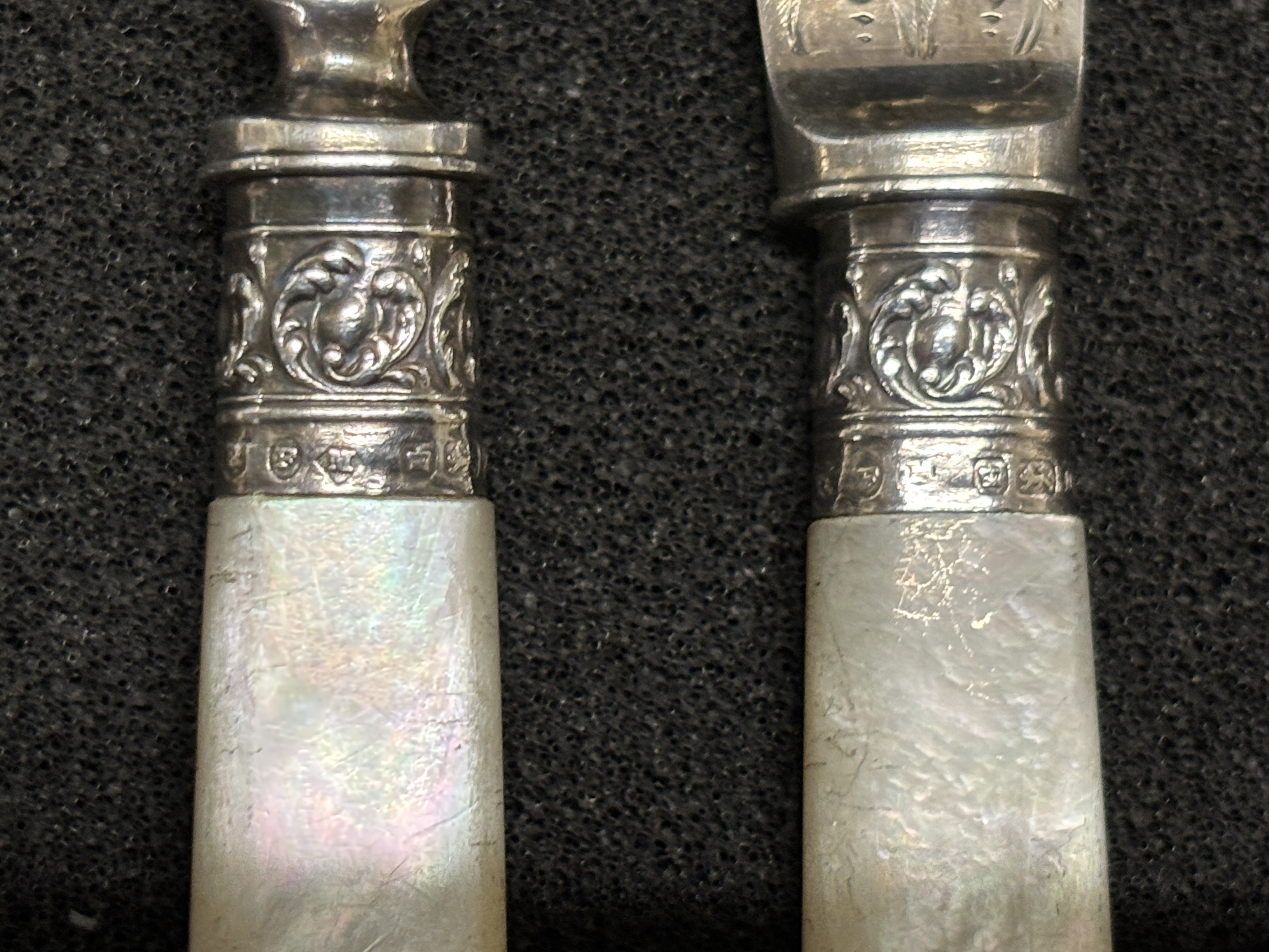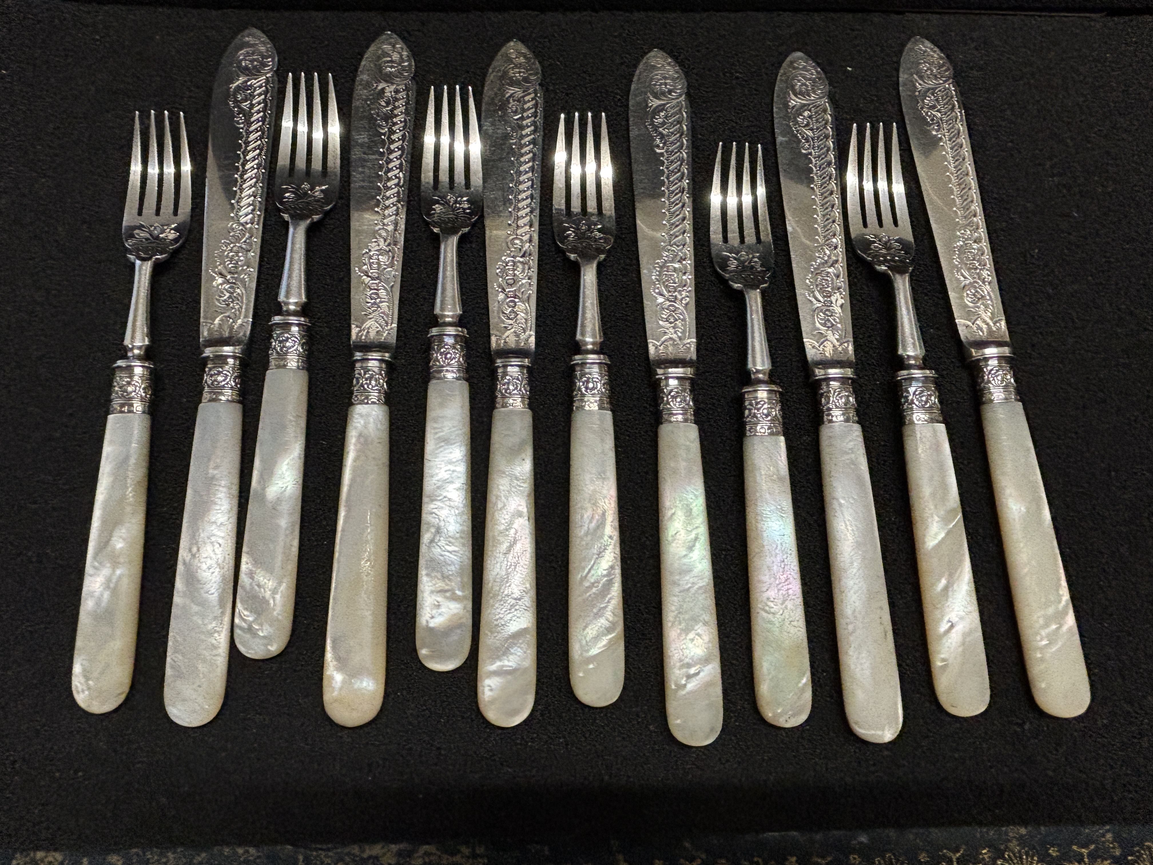 Six HM Silver fish knives and forks
