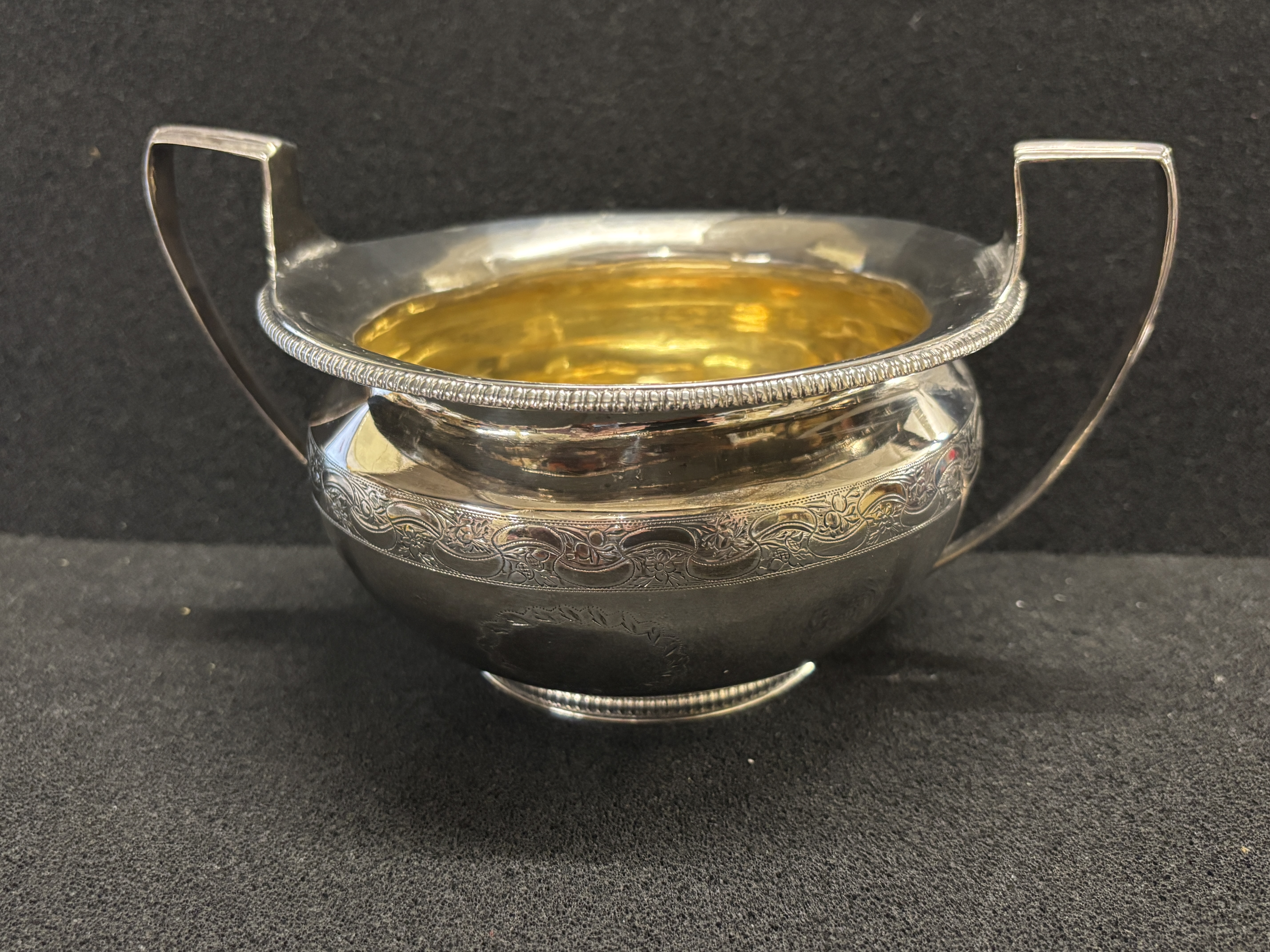 A Georgian HM silver sugar bowl with two handles weighing 318.31 grams