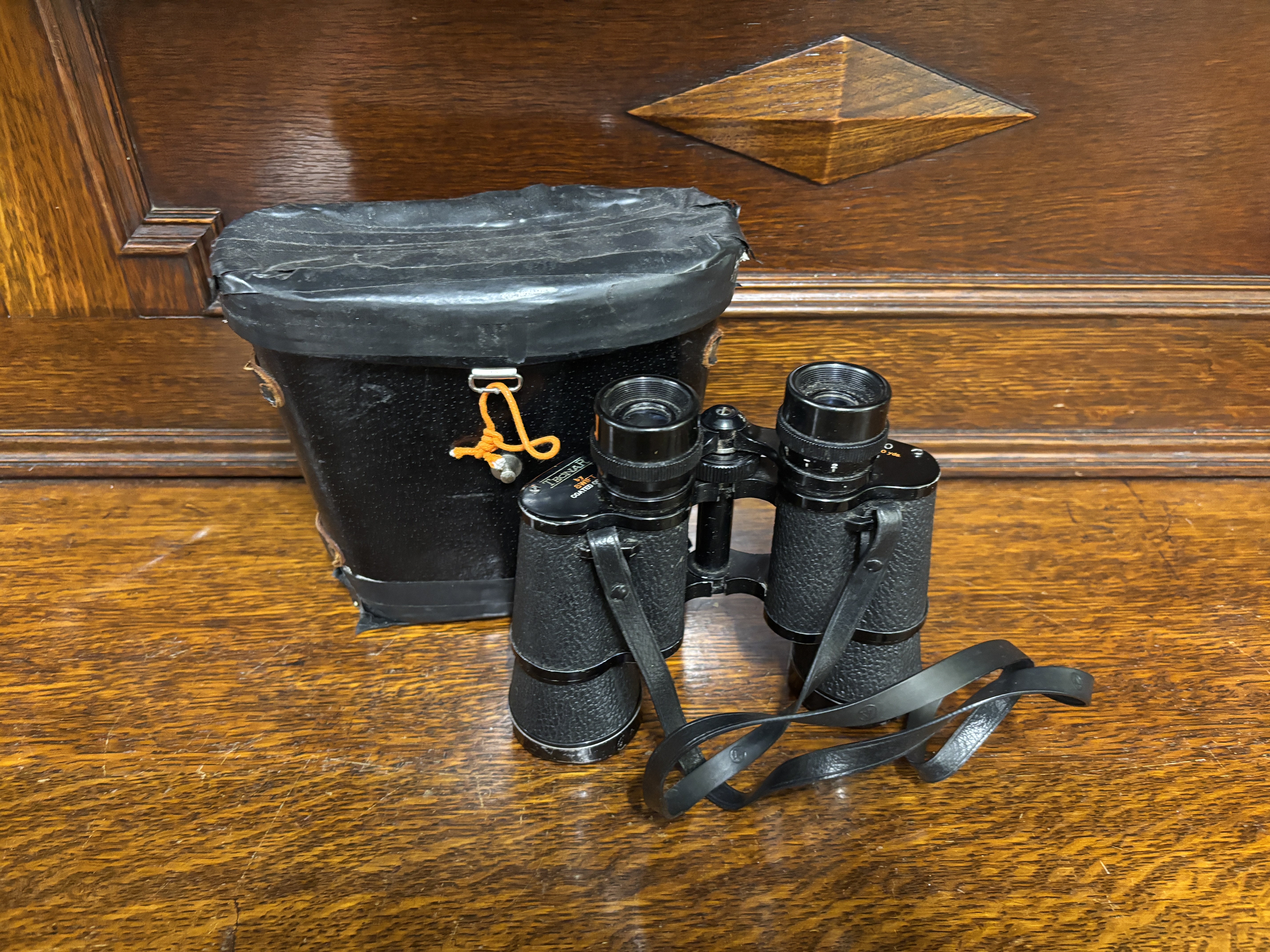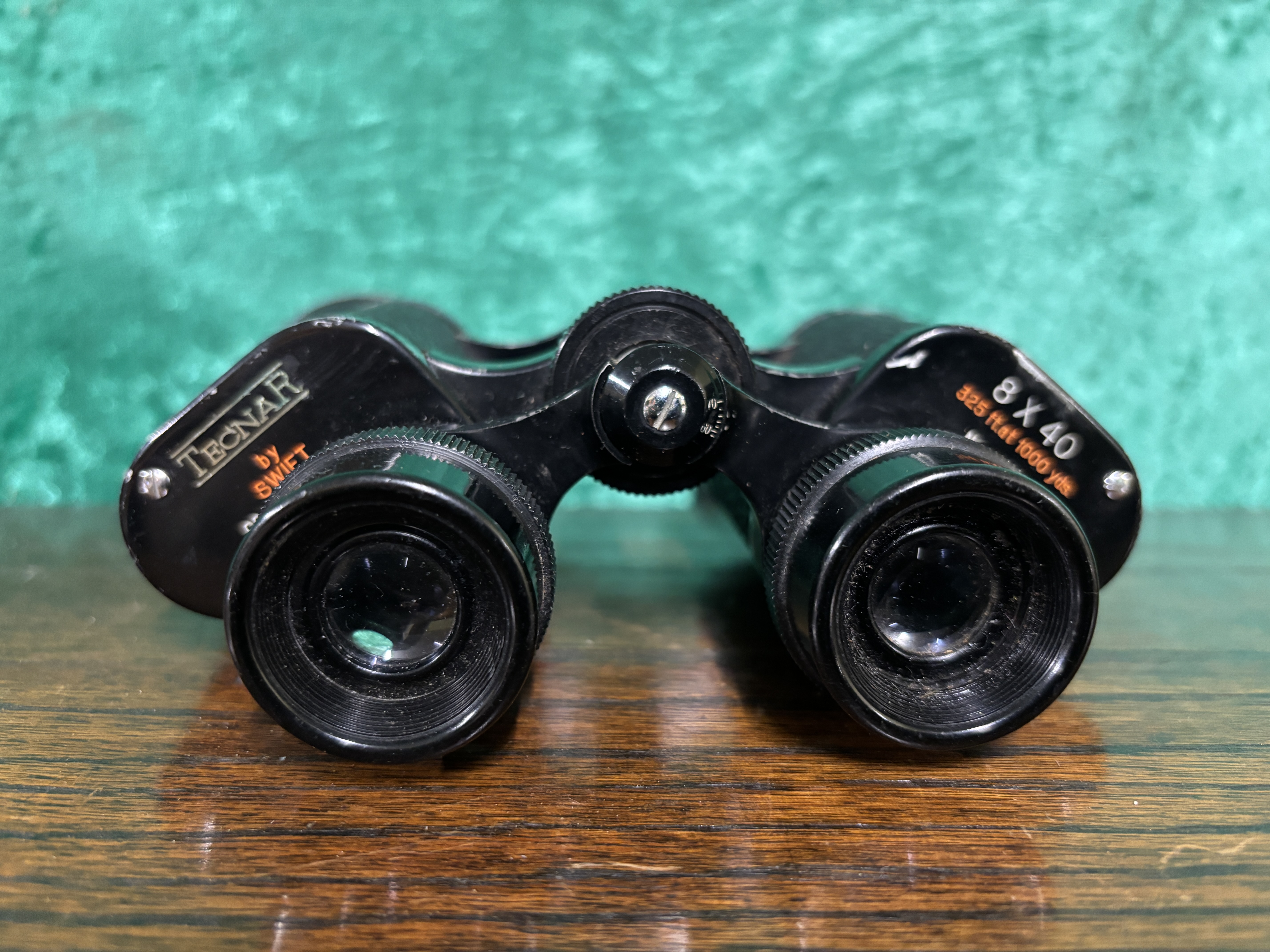 A pair of Tecnar by Swift binoculars 8×40 in repaired case