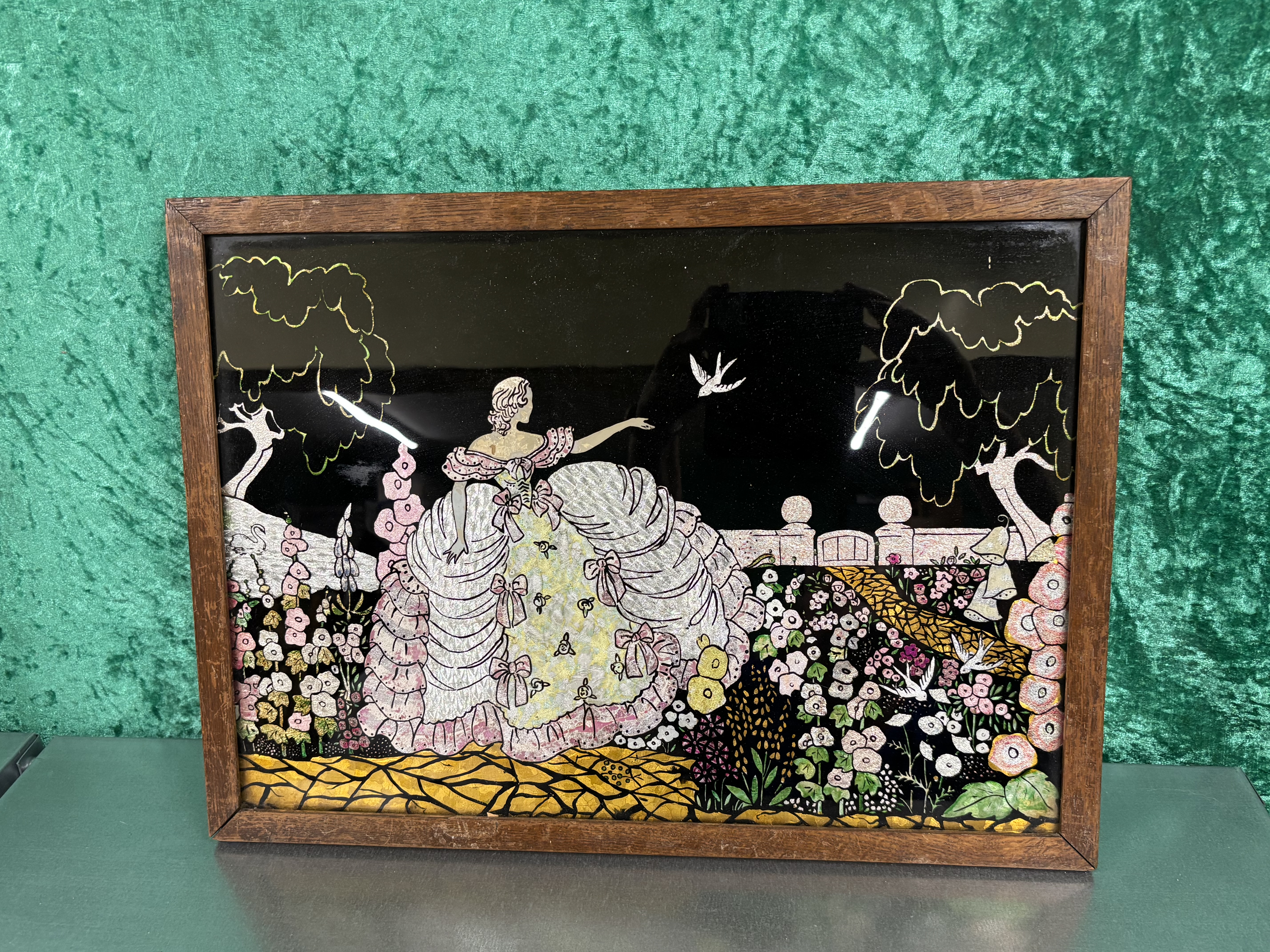A 1920’s foil picture of a crinoline lady 34cm high by 46 cm wide