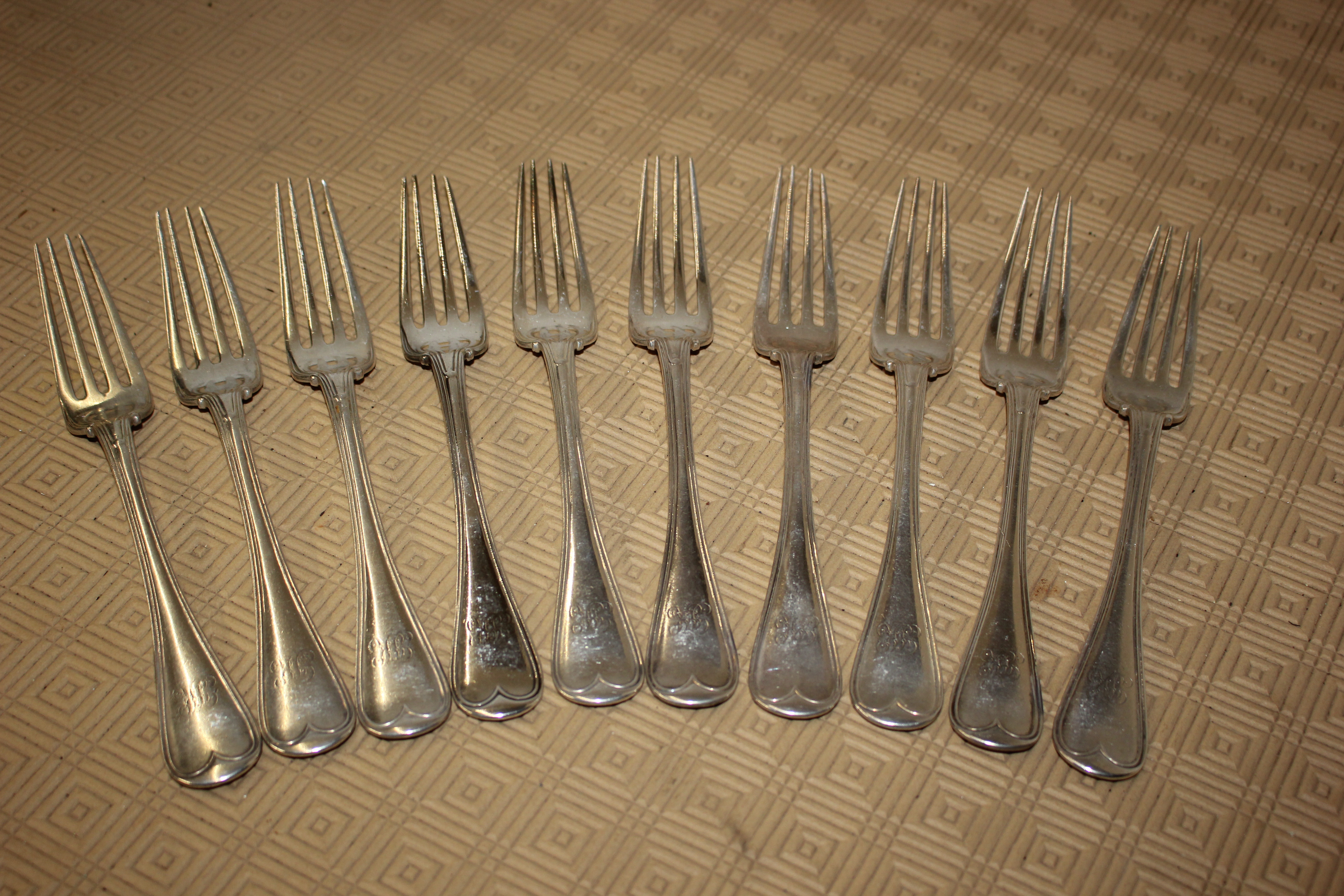Ten HM Silver forks weighing 873.16 gm