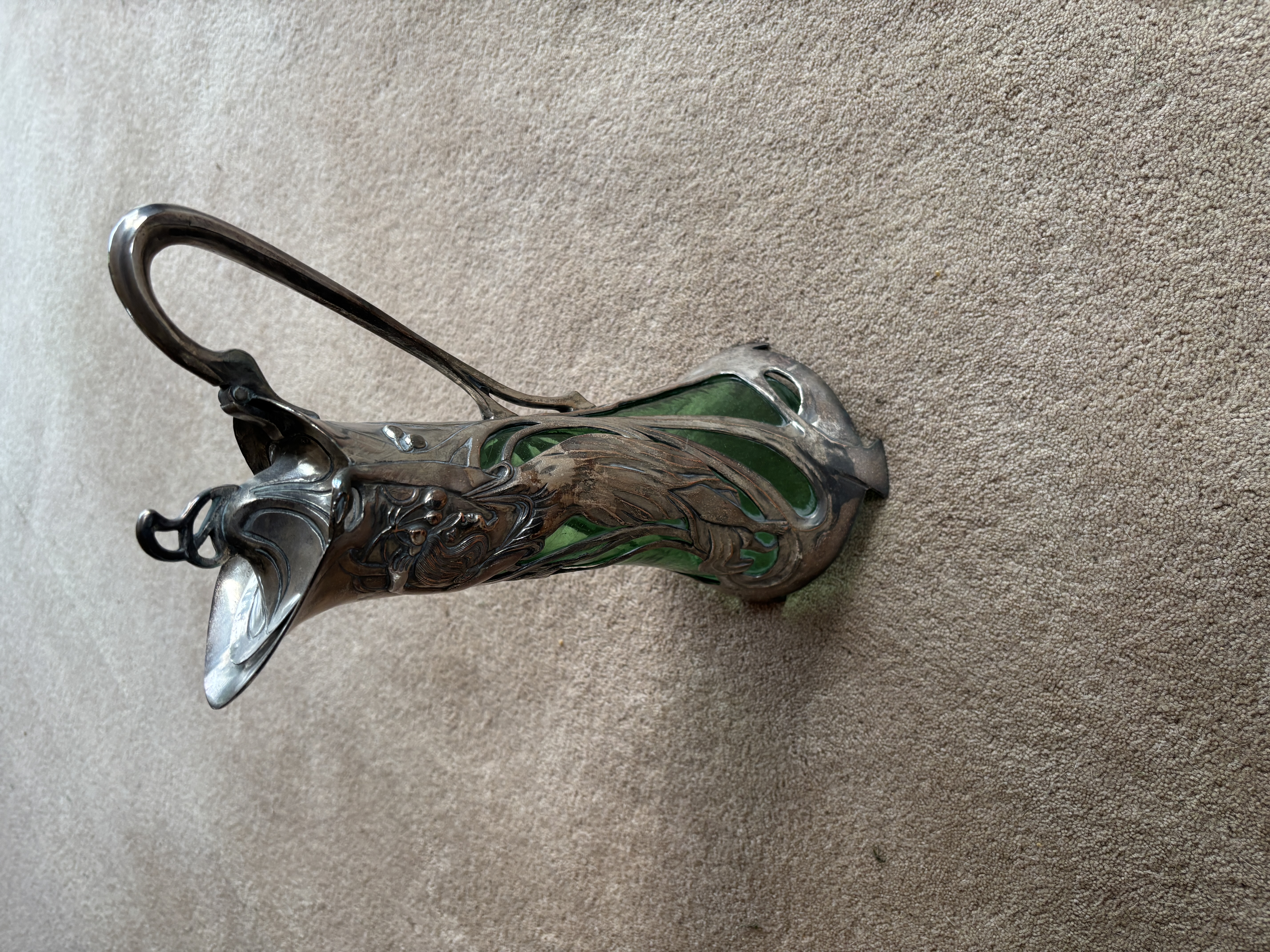 A silver plated 2 1/2 pint Claret jug with green glass liner