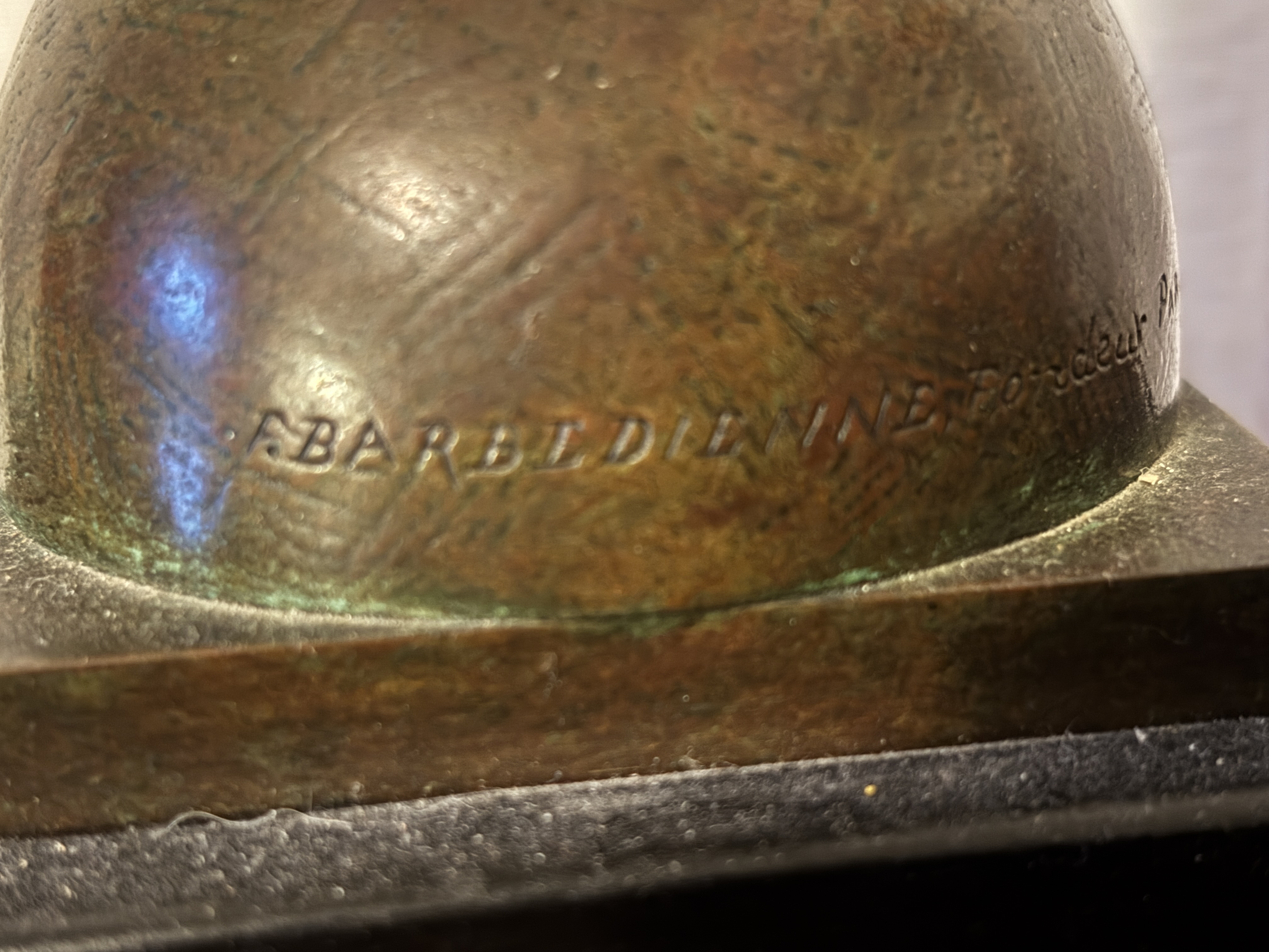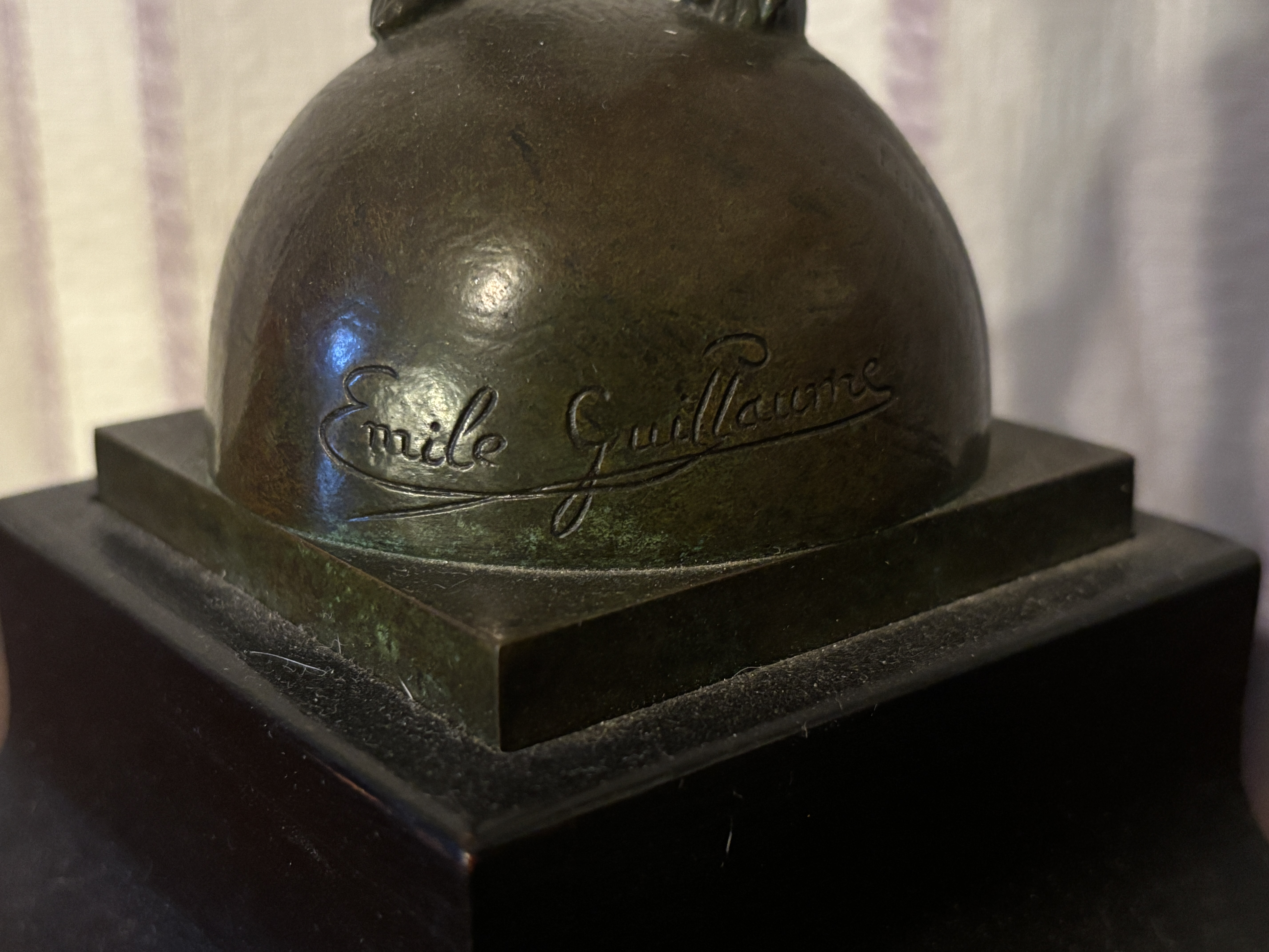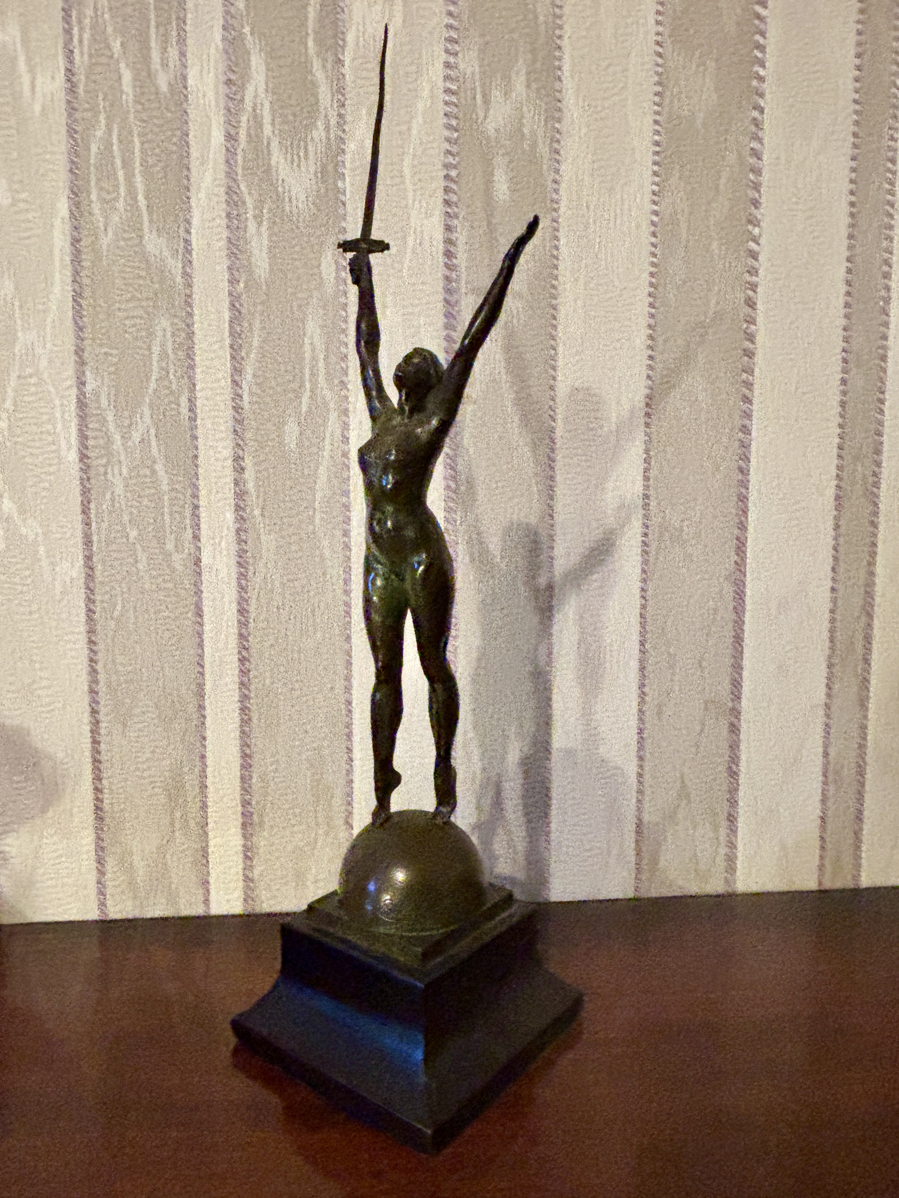 A statuette marked deliverance on the sword and Emile Guillaume (Paris) F Barbedienne Fondee, Paris to the base measuring 48 cm high