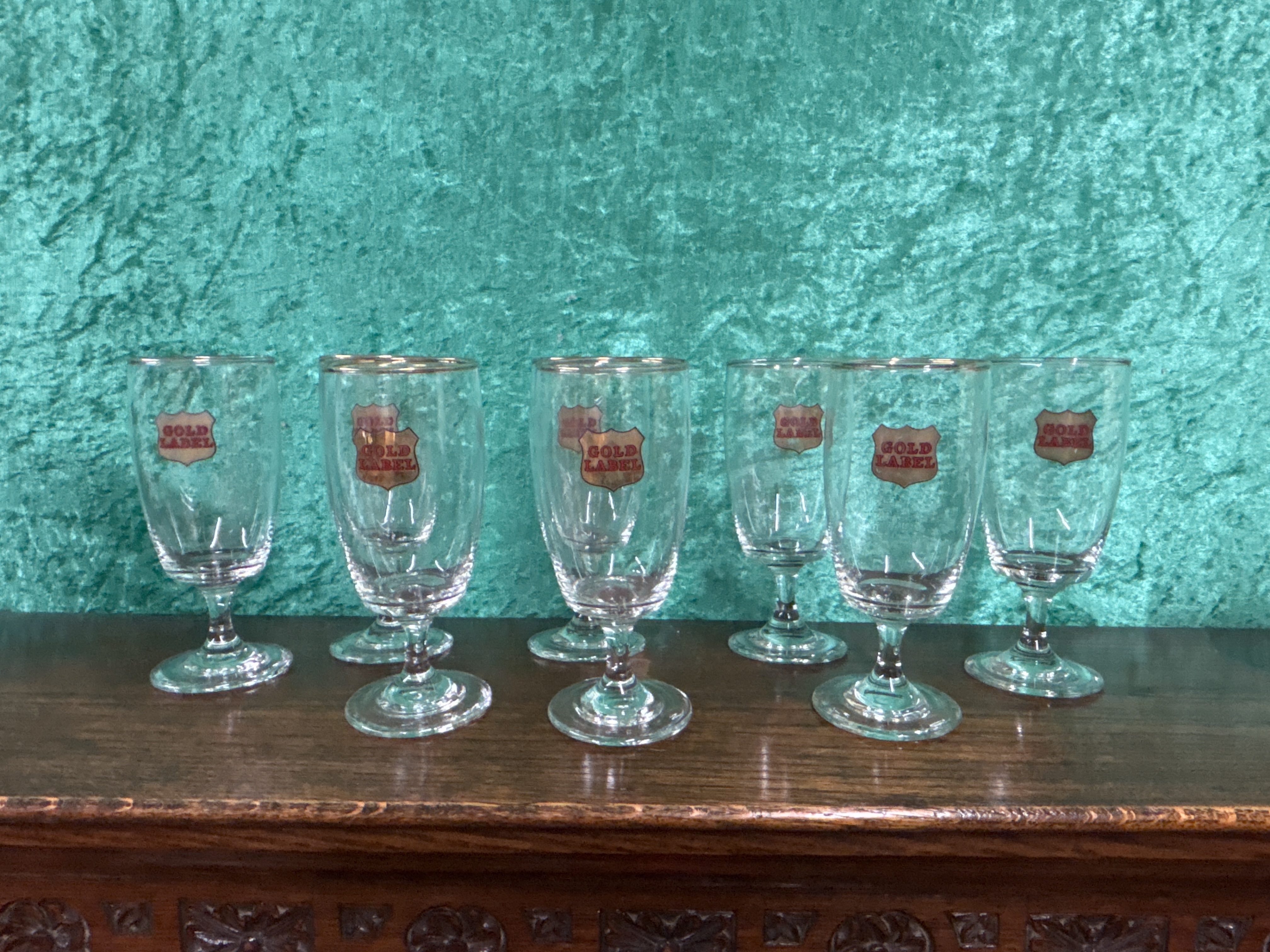 A Set of Six Mid-20th Century ‘Gold Label’ Promotional Stemmed Beer Glasses