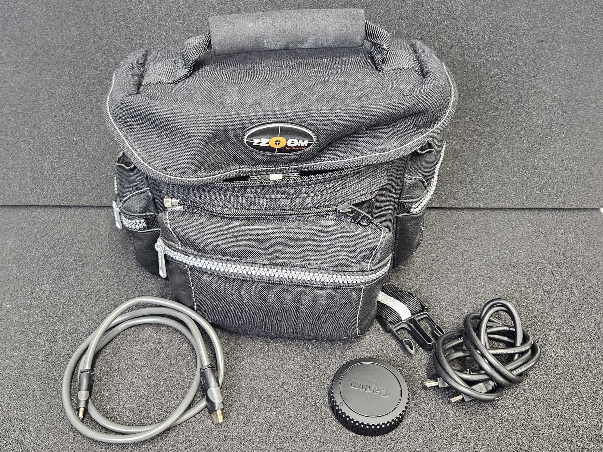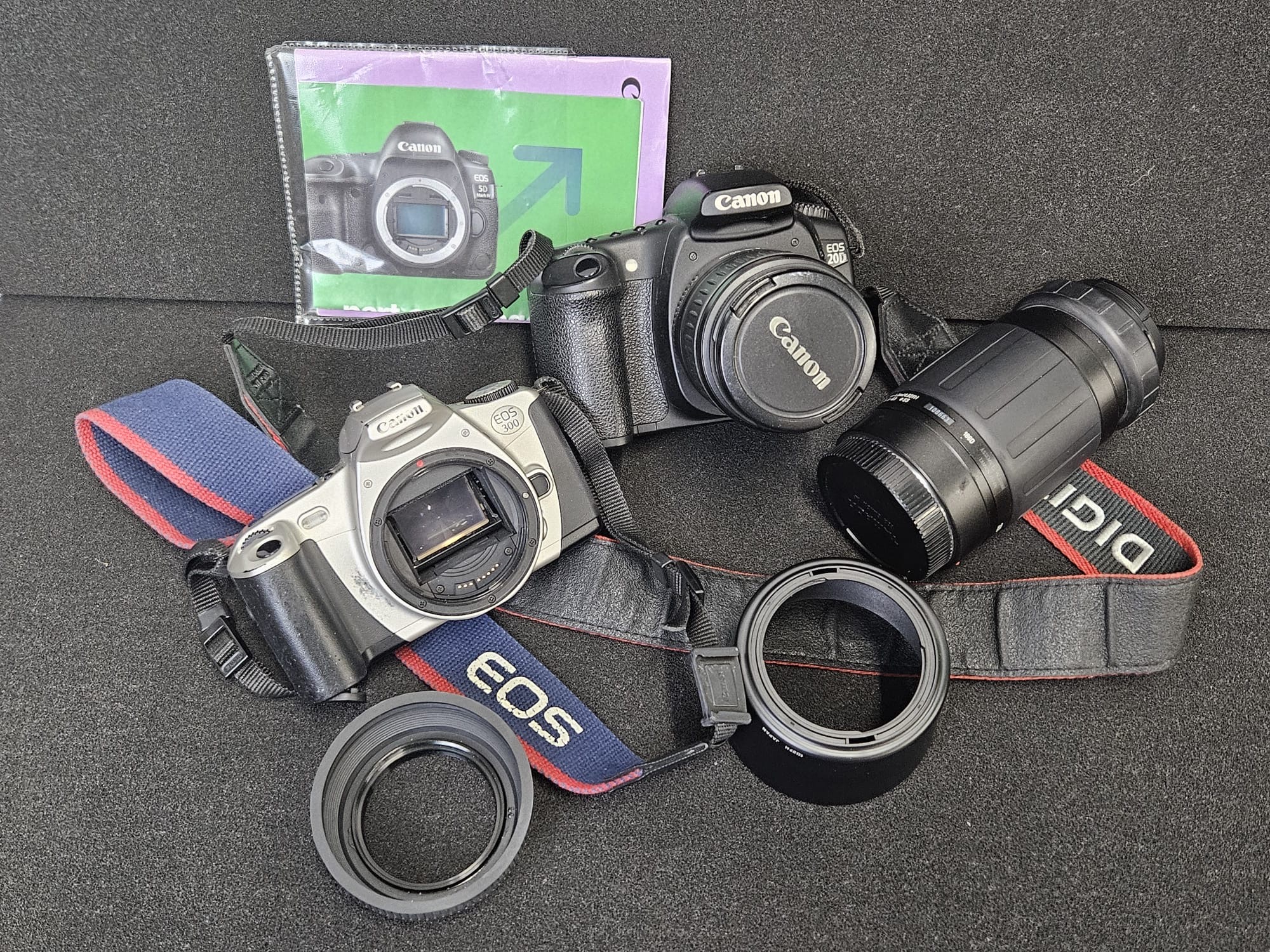 A Canon EOS 20D digital camera, a Canon EOS film camera body, lenses inc Tamron, filters, and a case etc