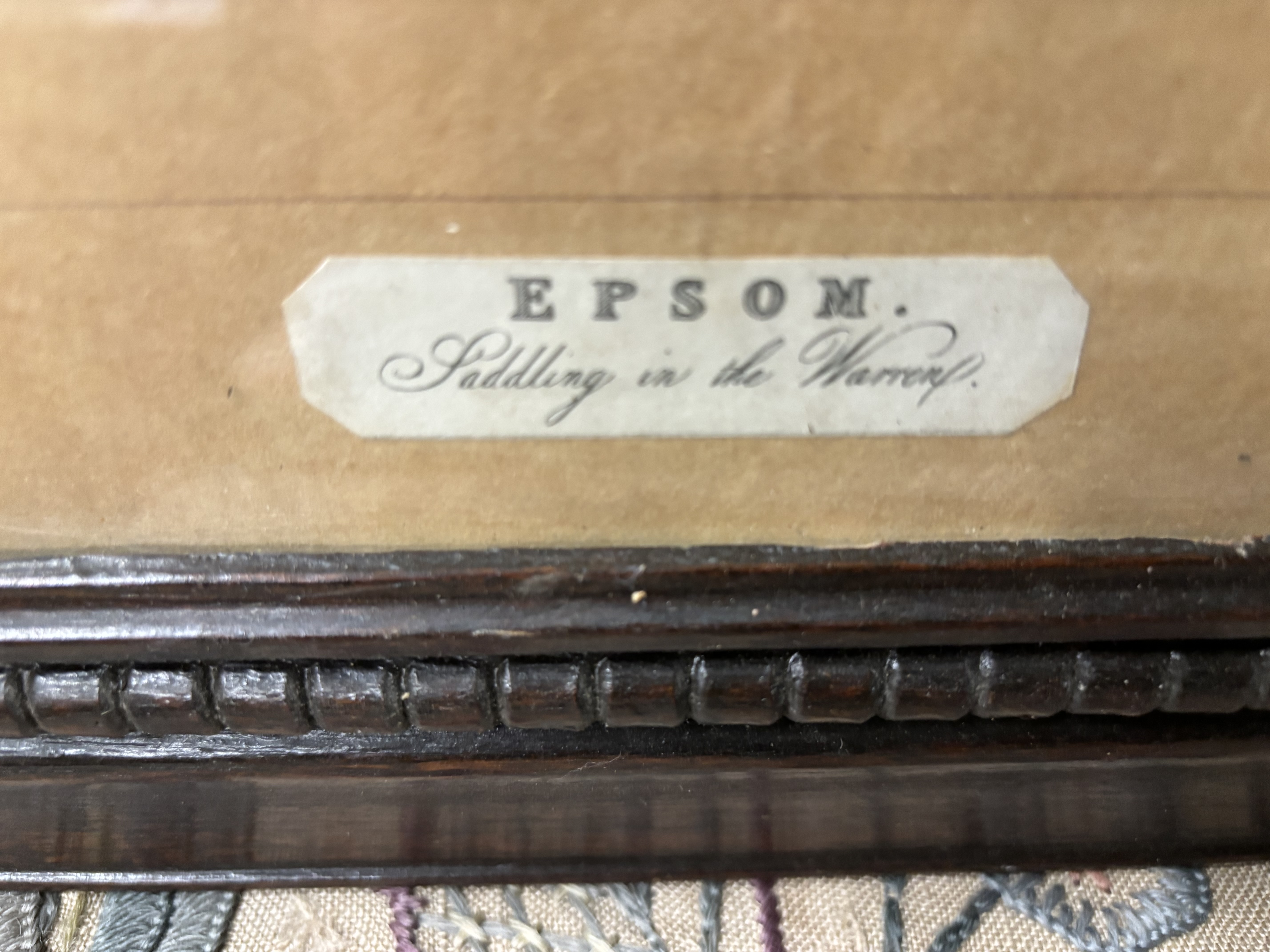 Attributed to James Pollard – ‘Epsom. Saddling in the Warren.’ Hand-Colored Engraving