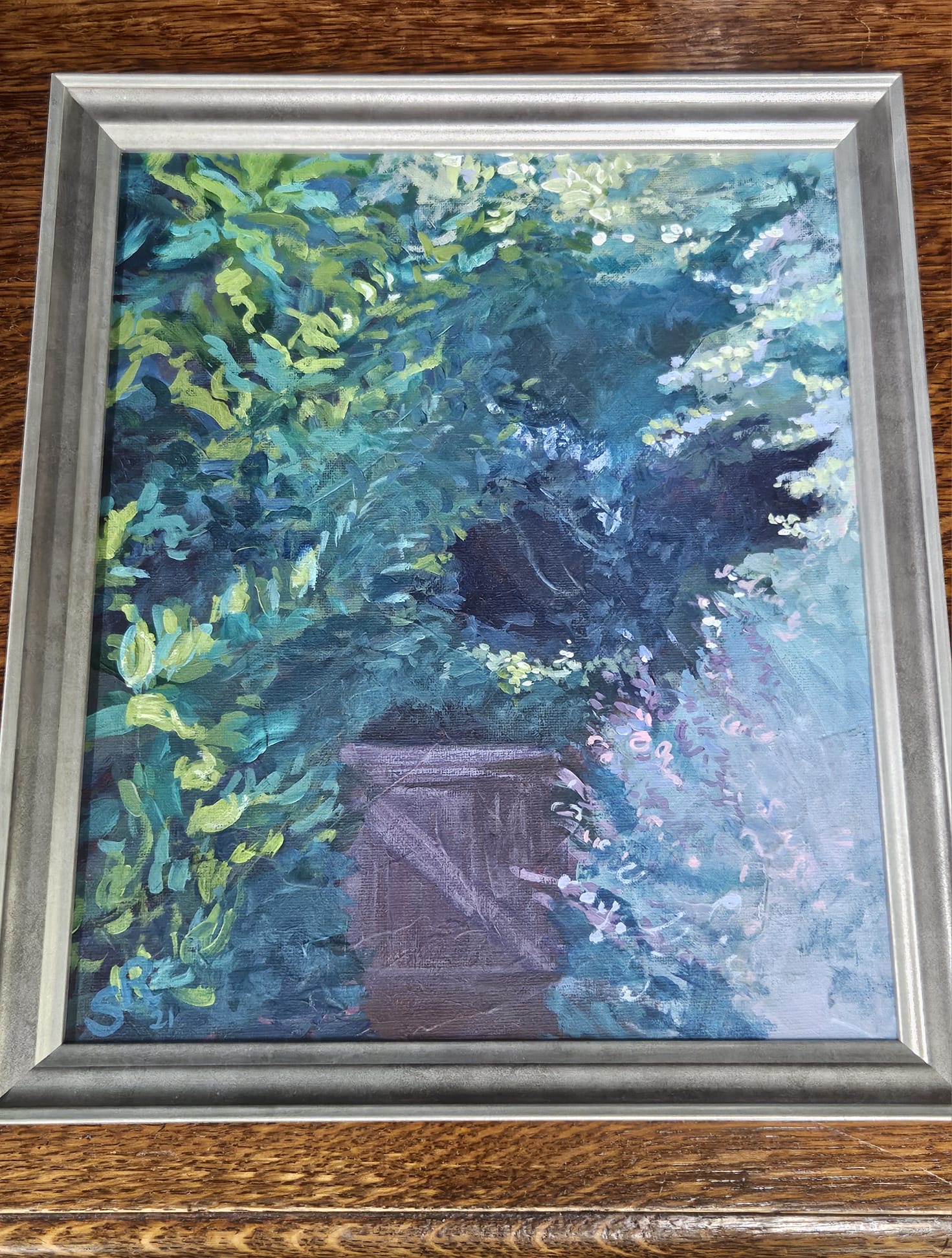 A framed Impressionistic style Garden Scene Painting 34 cm x 28 cm