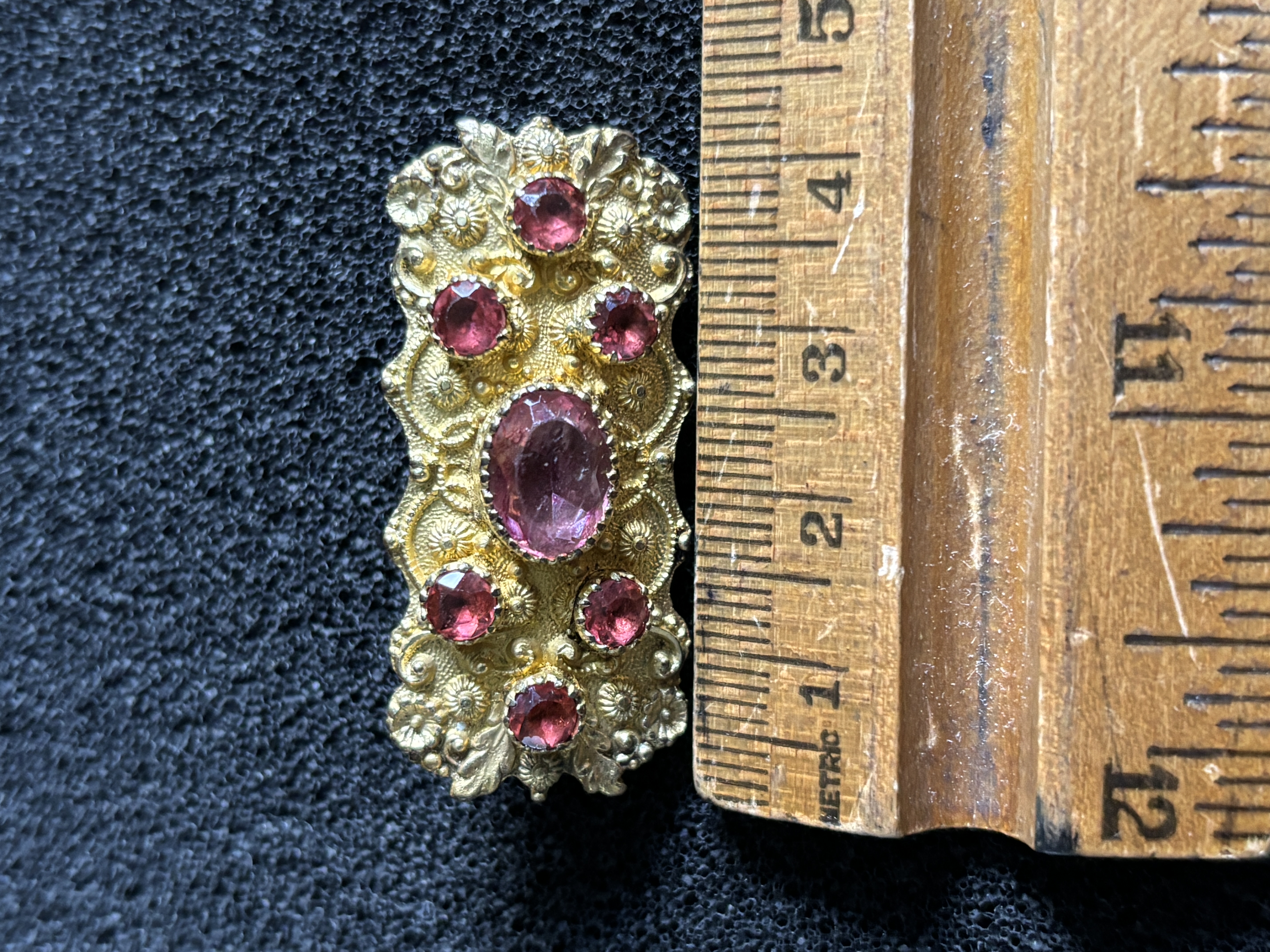 A 19th century gilt metal or pinchbeck brooch, inset with stones 12 gm