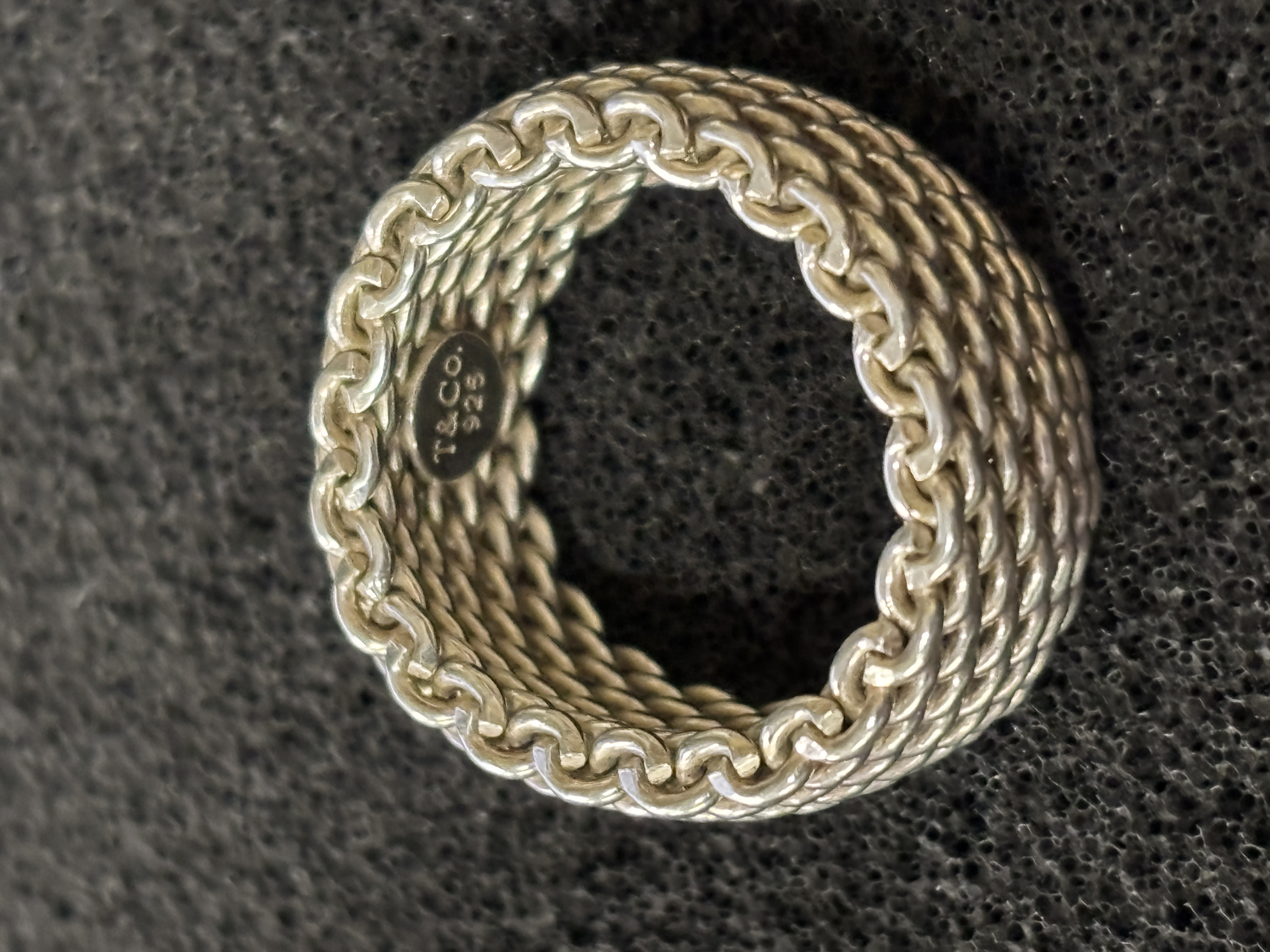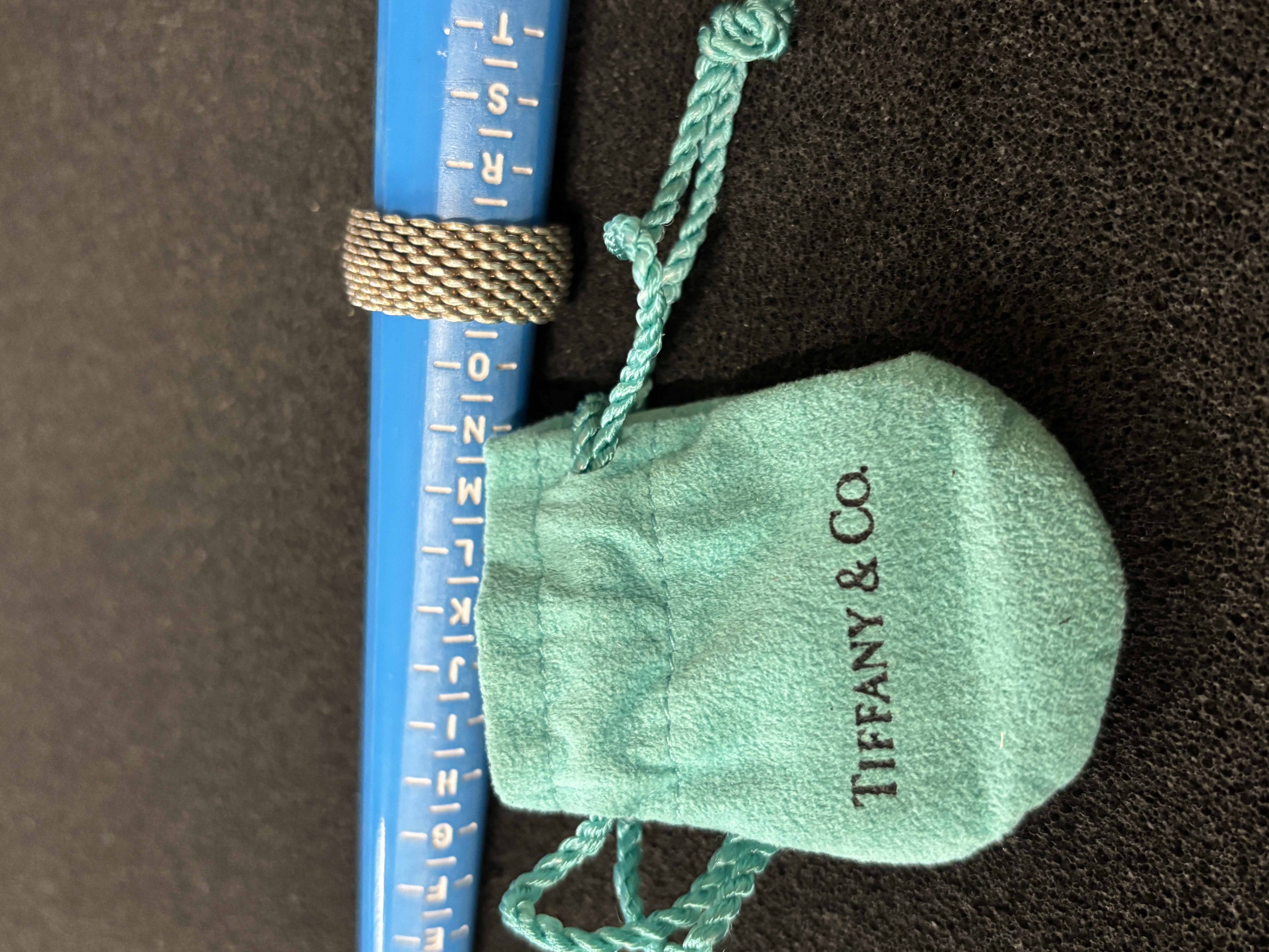 A Tiffany & Co silver Somerset Mesh ring (925) with drawstring pouch weighing 9.04 gm