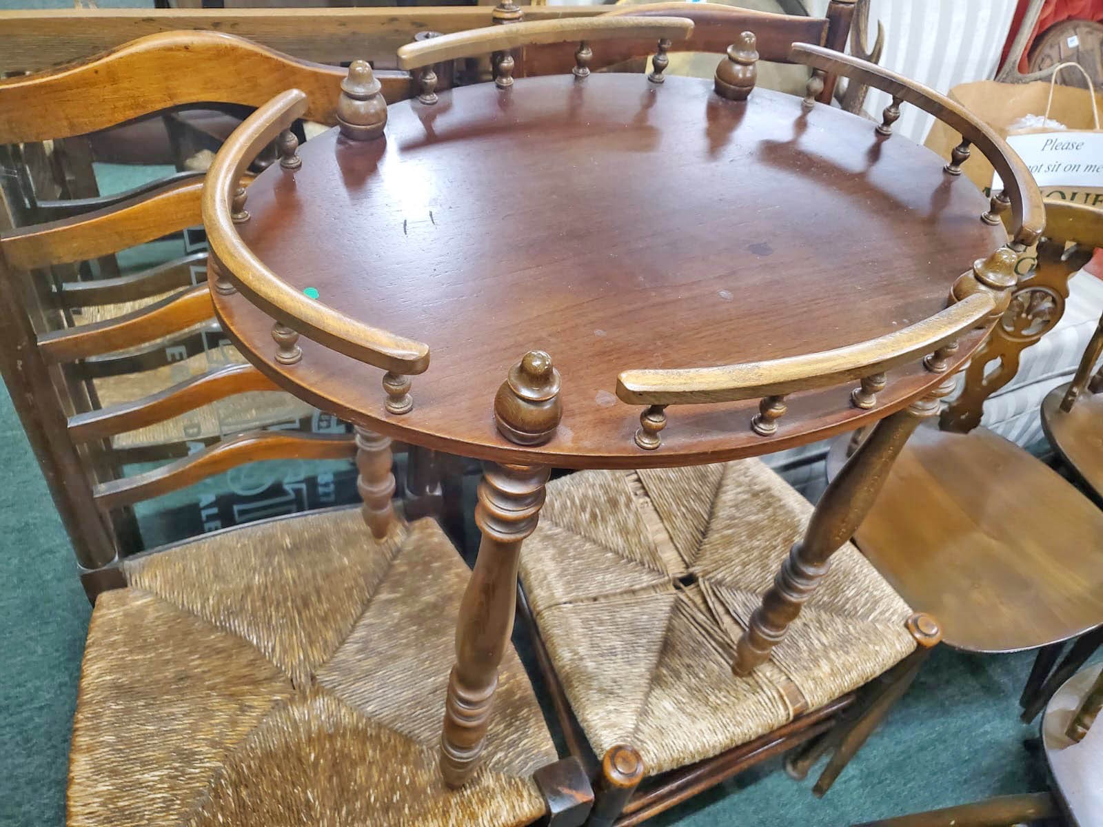 A late 20th reproduction gallery top table, H60cm, W61cm, D42cm