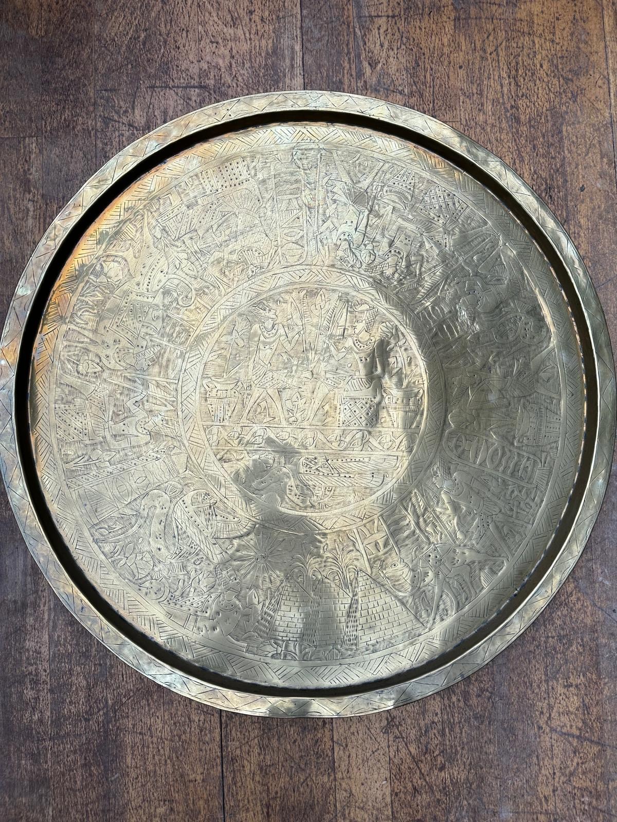 A large Egyptian design brass tray 64cm diameter