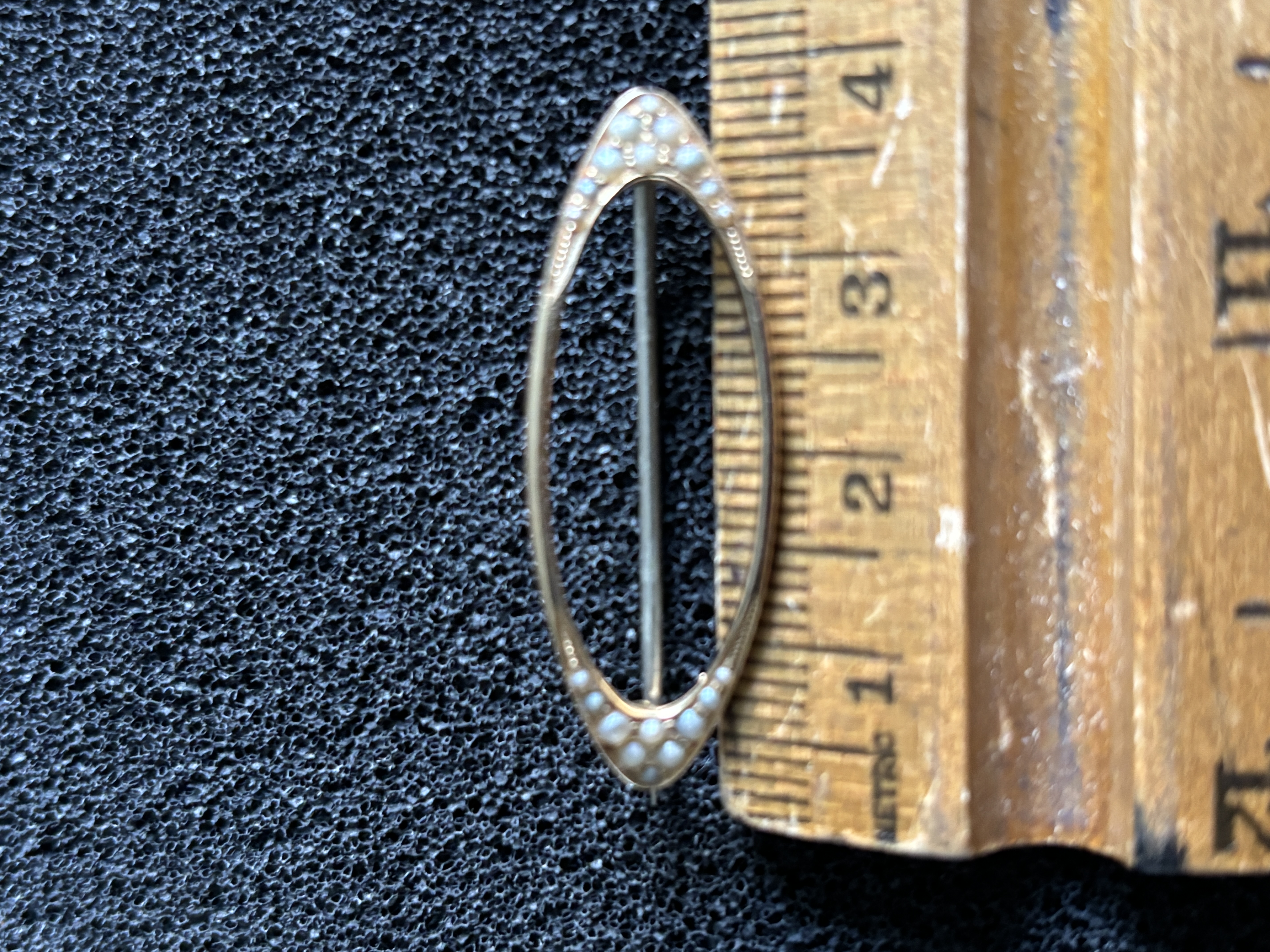 Aa oval brooch stamped 14 K decorated with seed pearls weighing 2.29 gm
