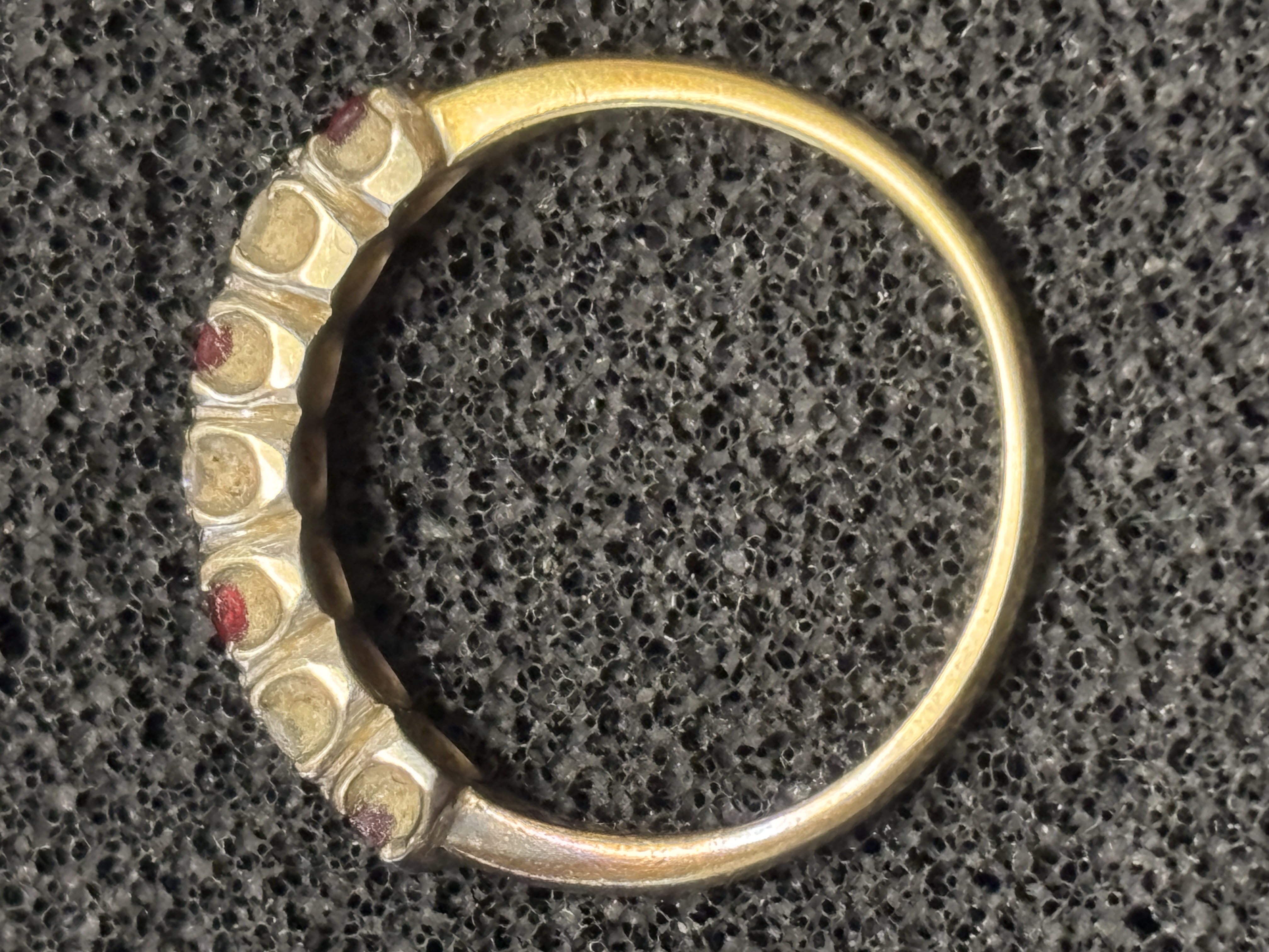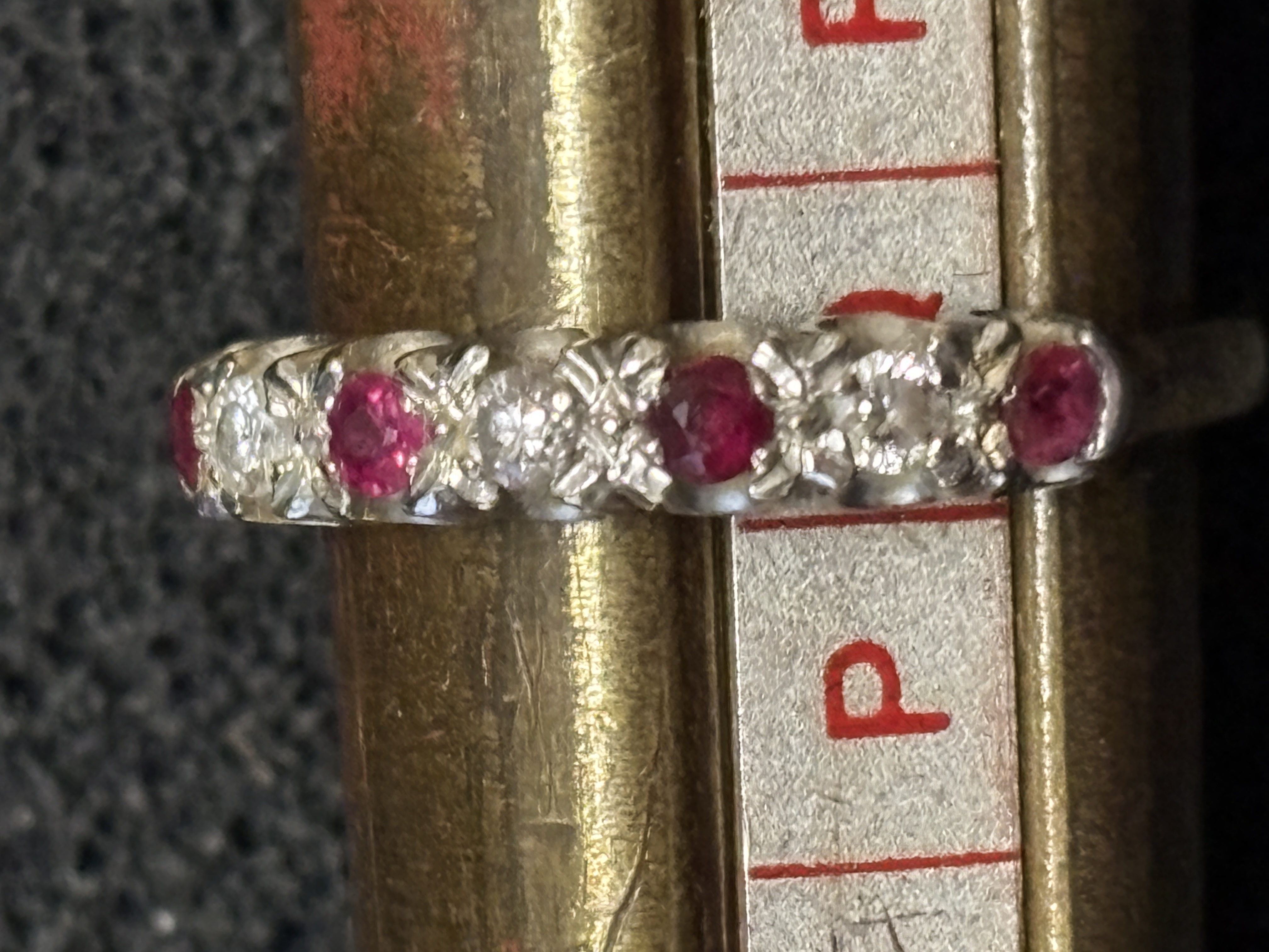 An 18ct gold ruby and diamond ring having seven stones alternating in colour 3.46 gm