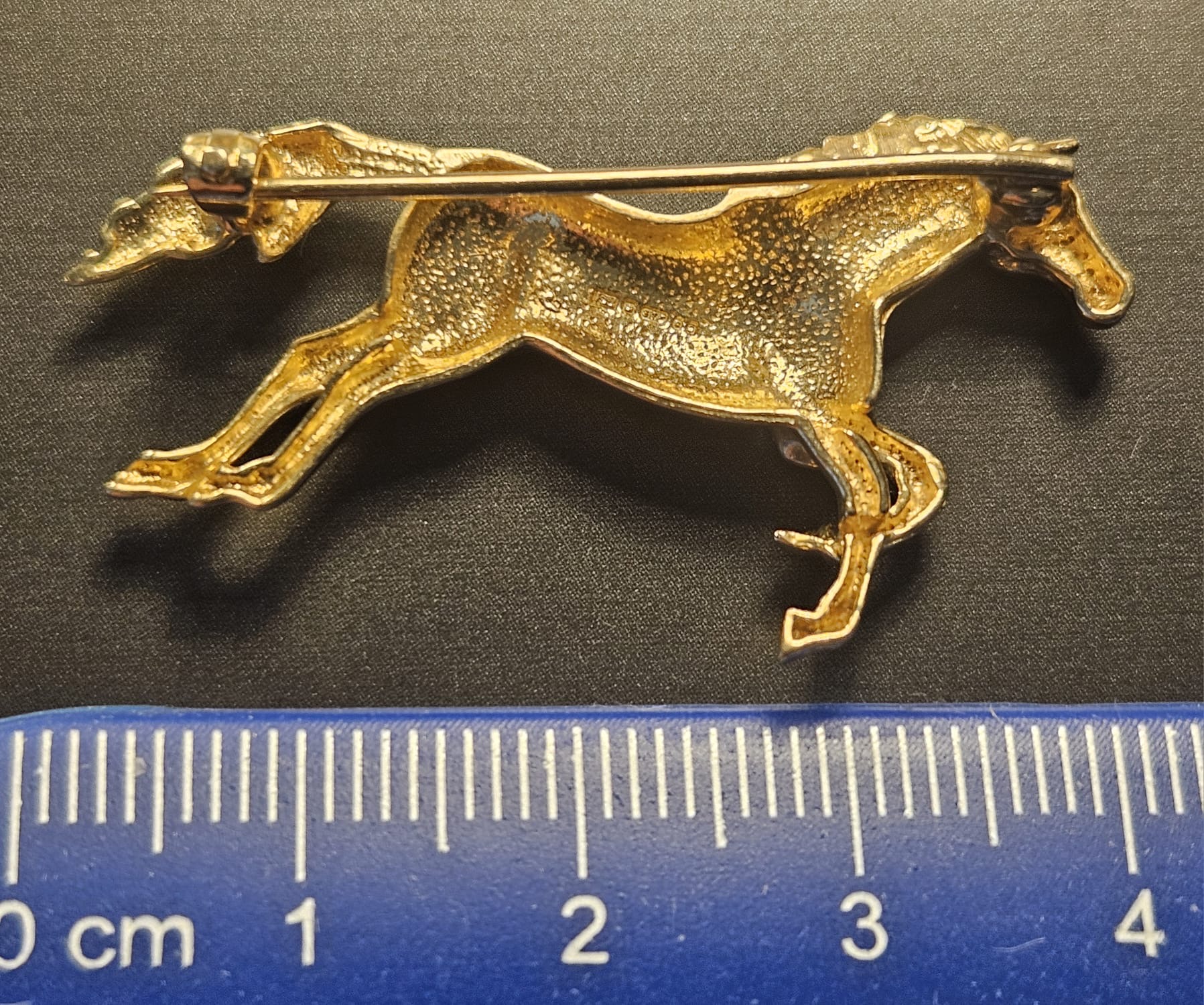 A 9ct gold brooch, modelled as a prancing horse, length 4cm, 4.3g