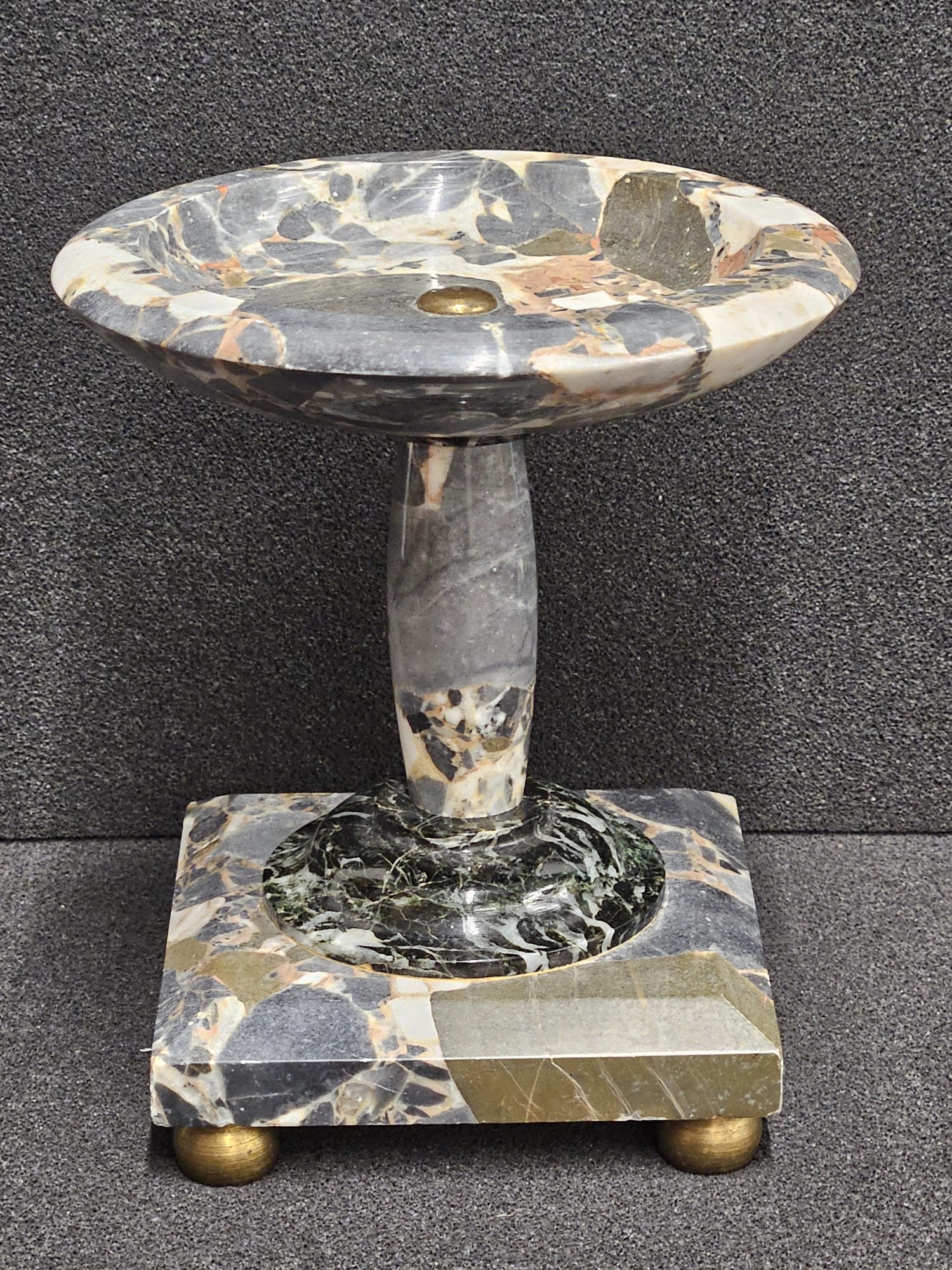An Italian grey and sienna marble tazza on brass ball feet, Height 17cm