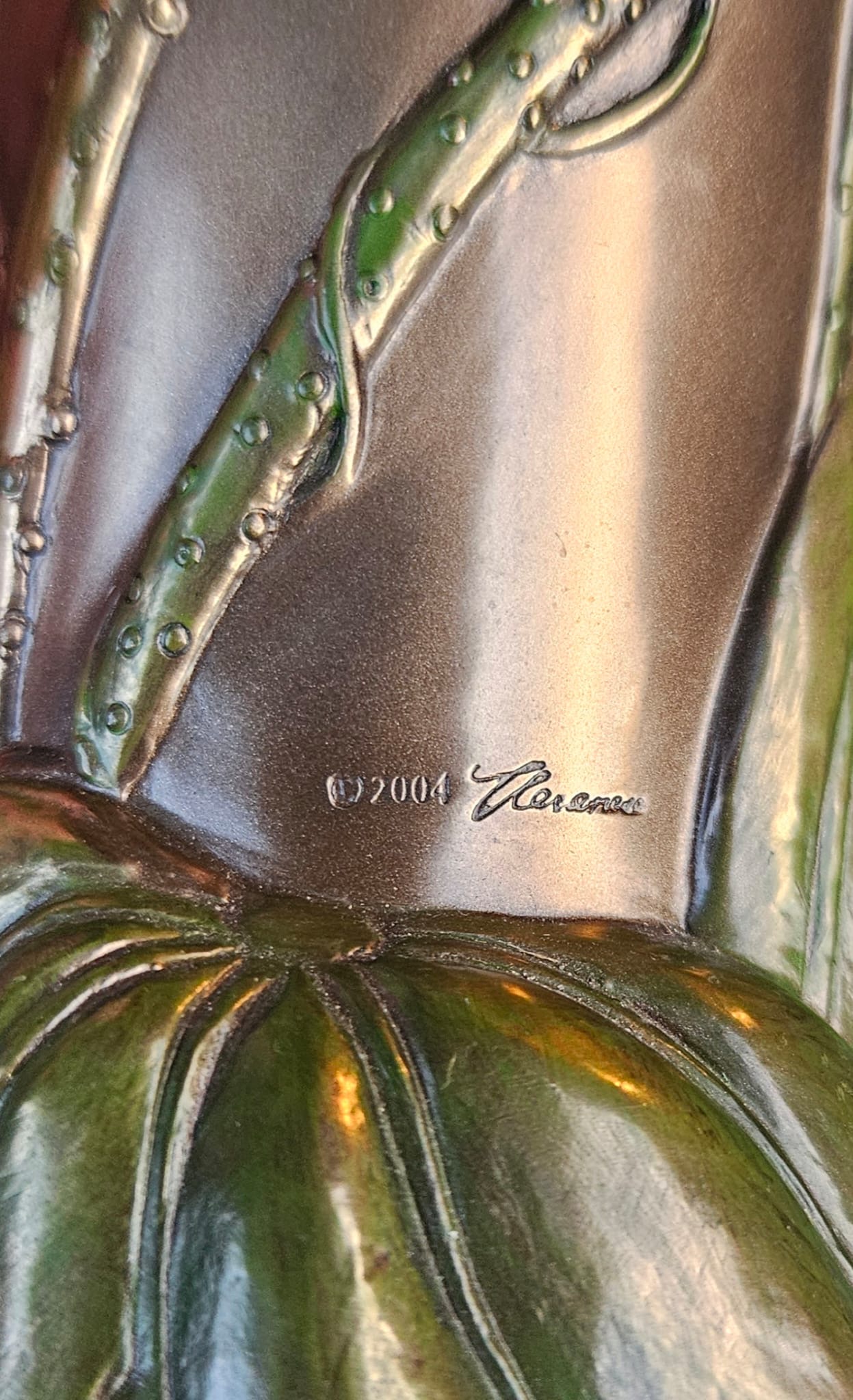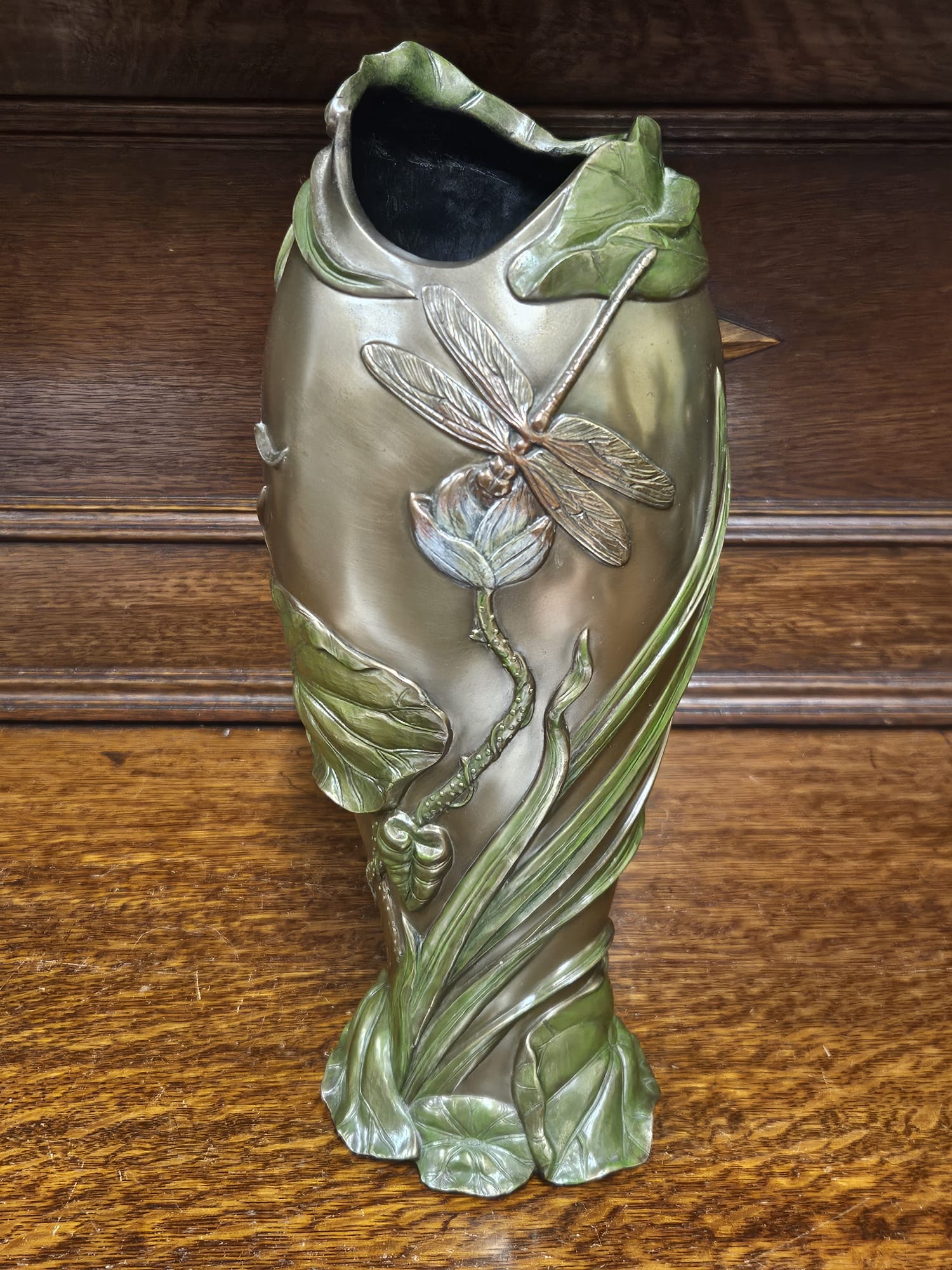 A Veronese Past Times art nouveau style metallic effect vase having dragon fly decoration, signed and dated 2004, Height 31cm