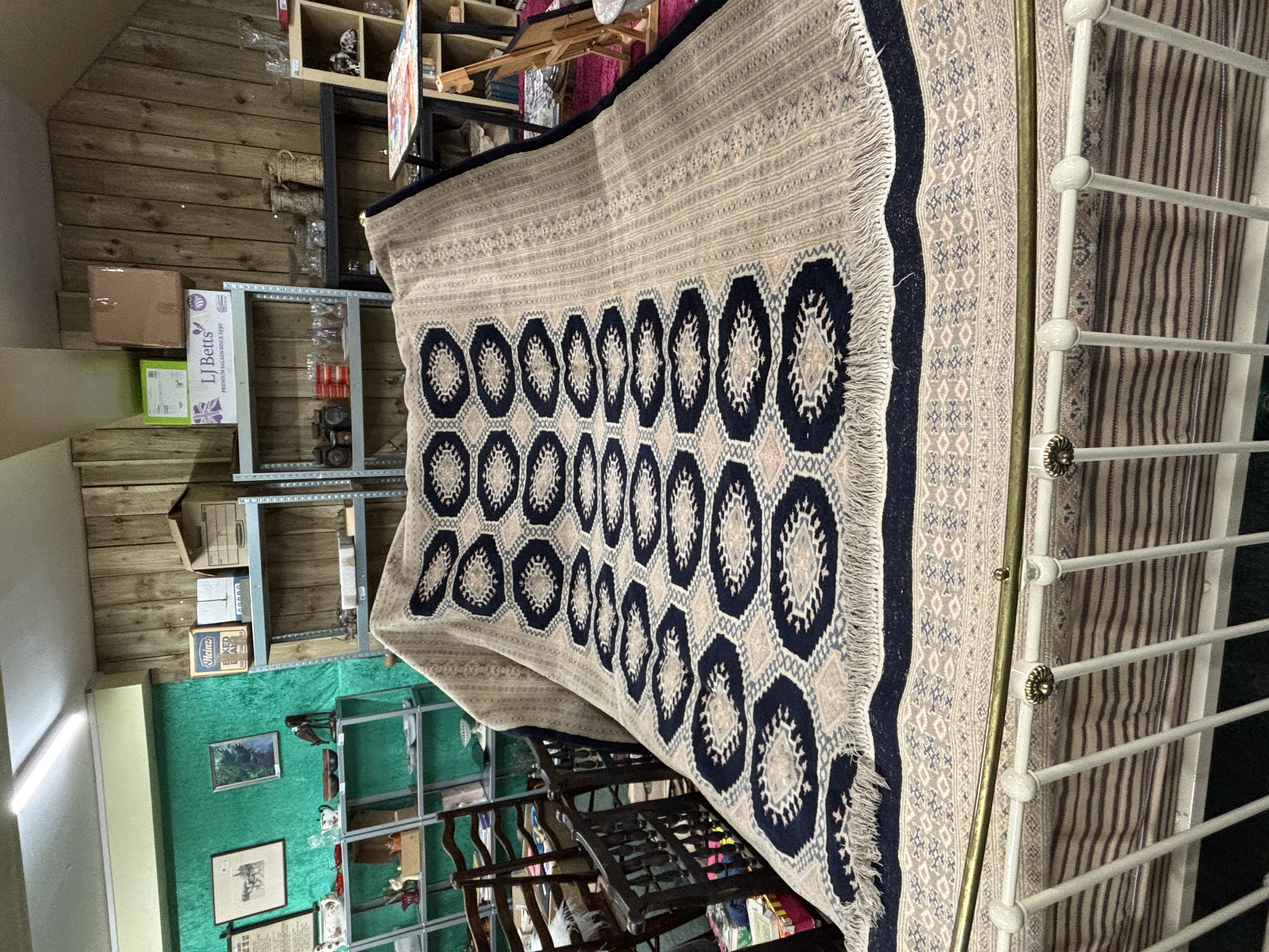 A fringed rug of Turkish design measuring 190 cm x 270 cm