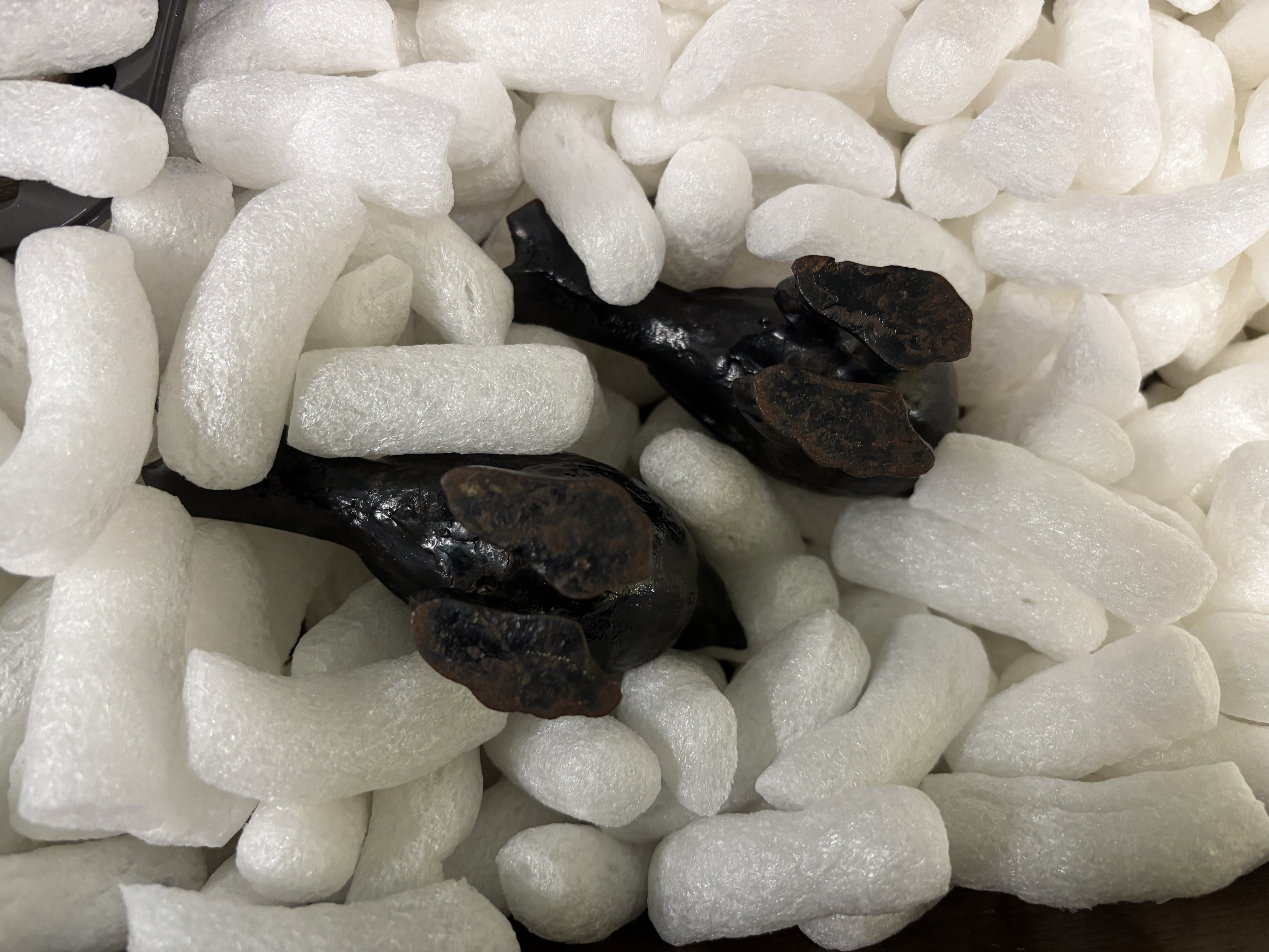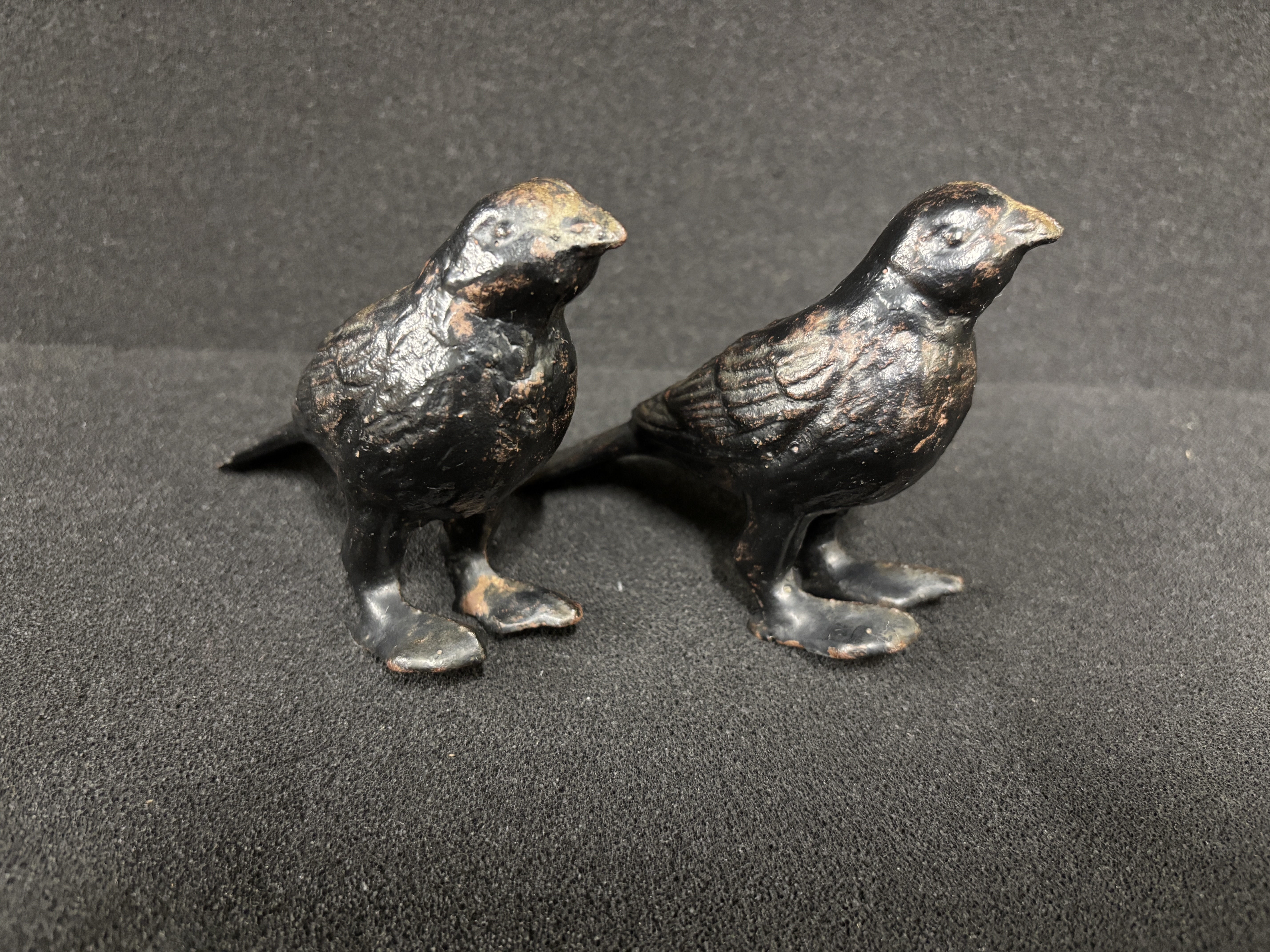 Pair of cast iron birds being 8 cm tall and weighing 782 gm