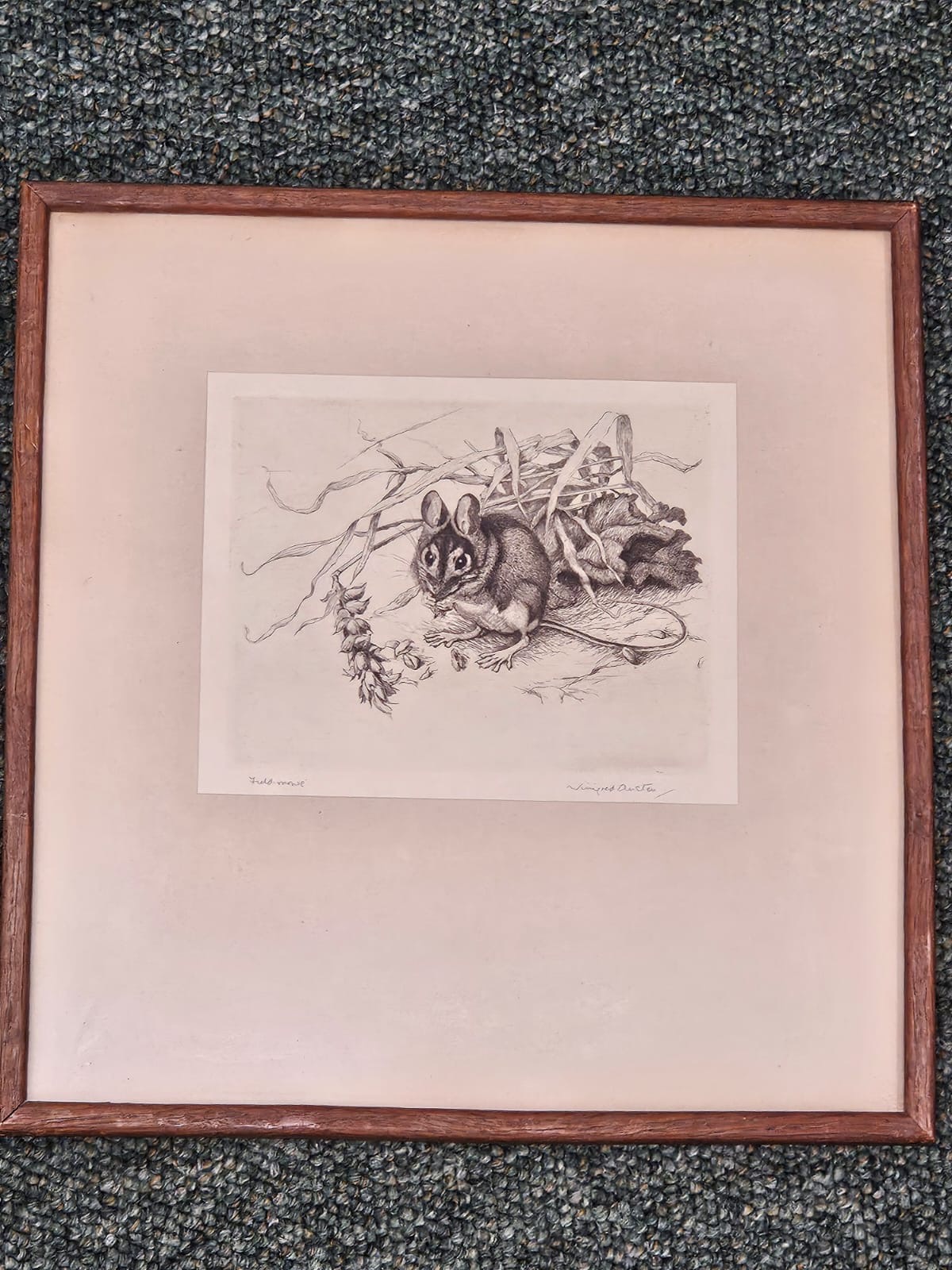 An etching by Winifred Austen of a Field Mouse etching