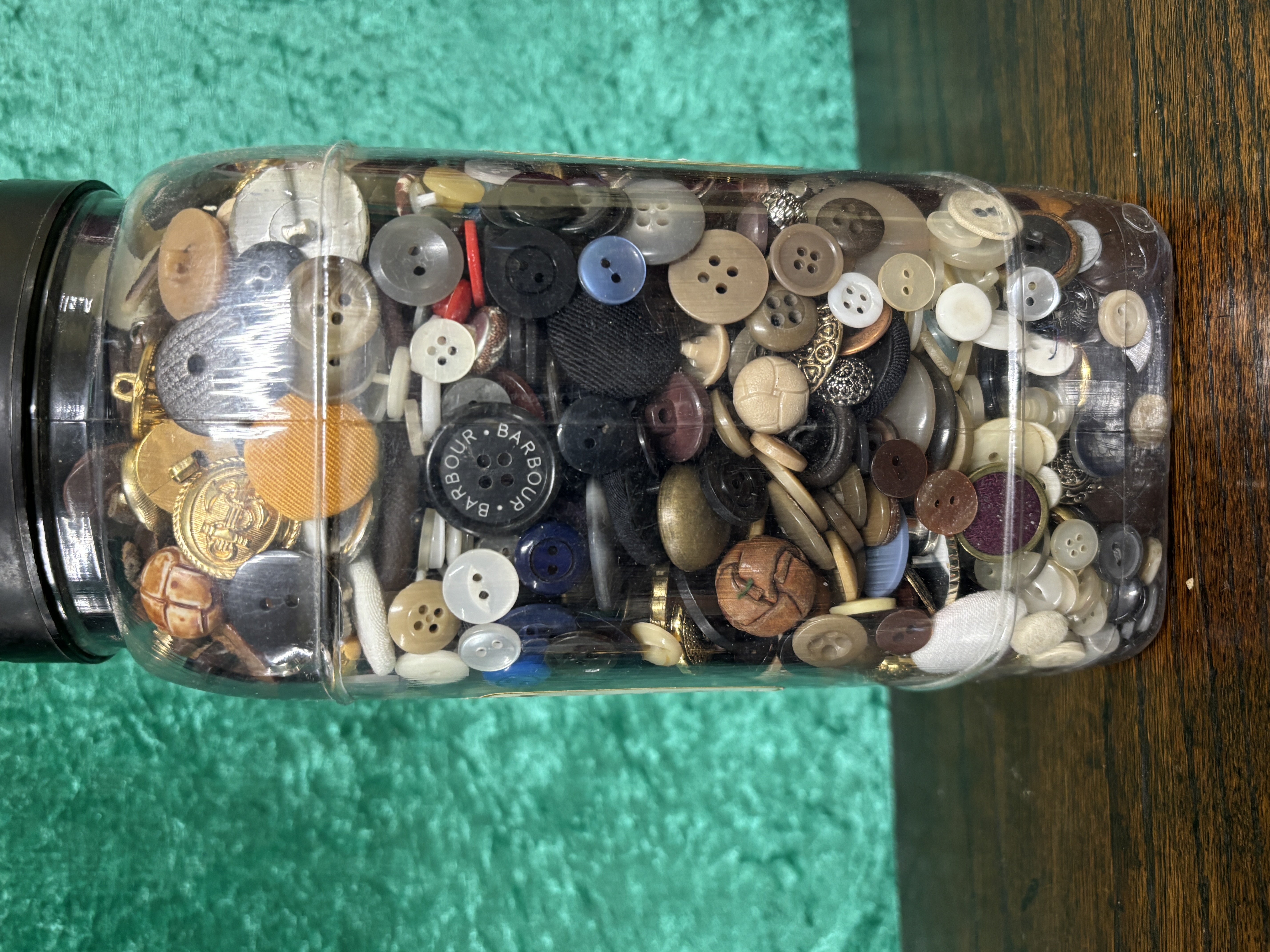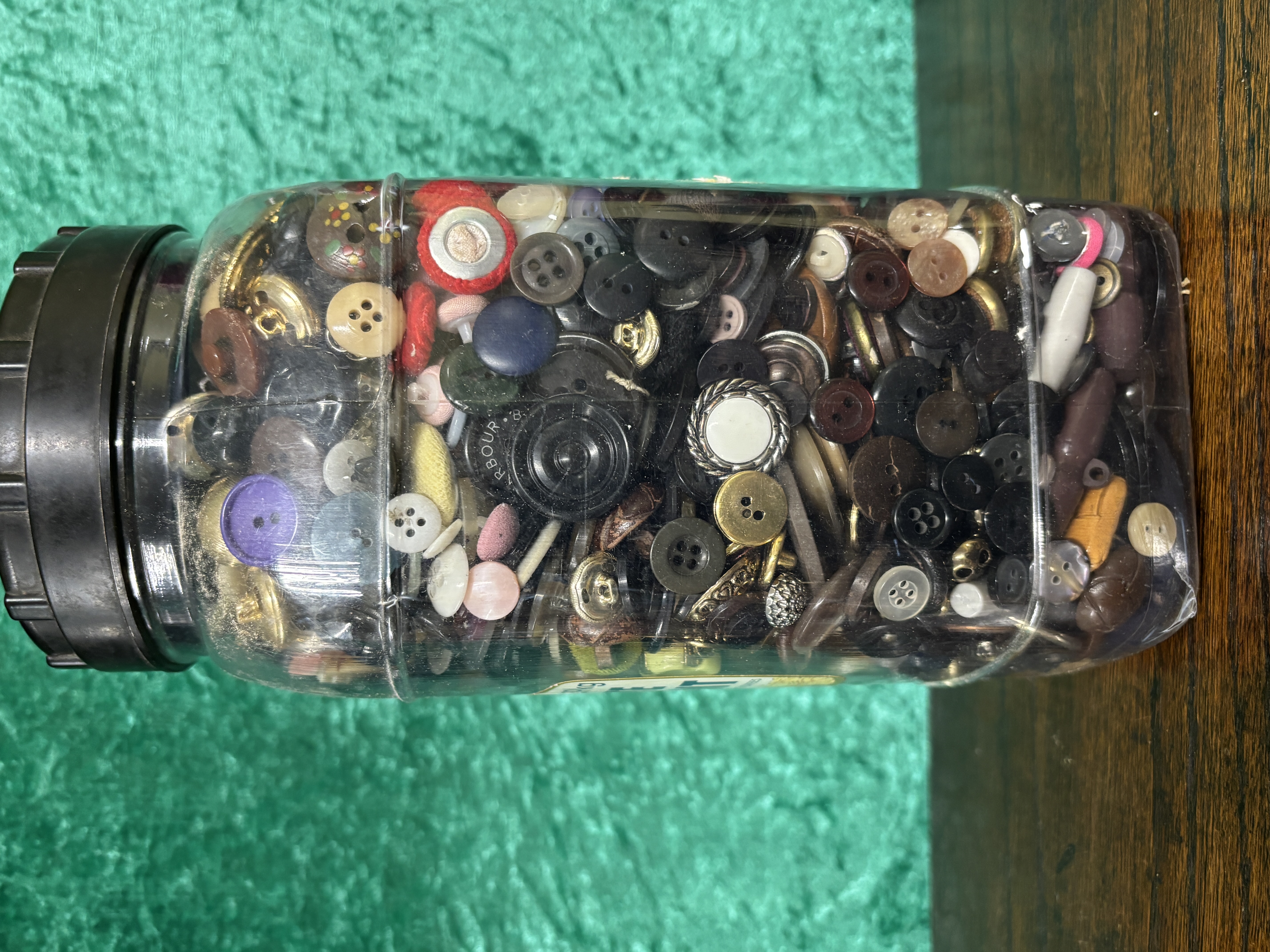 A sweet jar containing assorted buttons