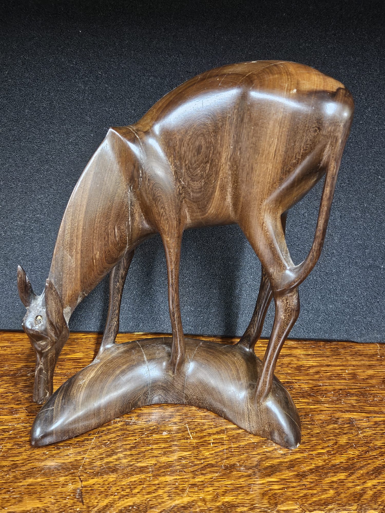 A vintage Hand Carved Wooden Antelope/Deer Figurine being 27 cm tall