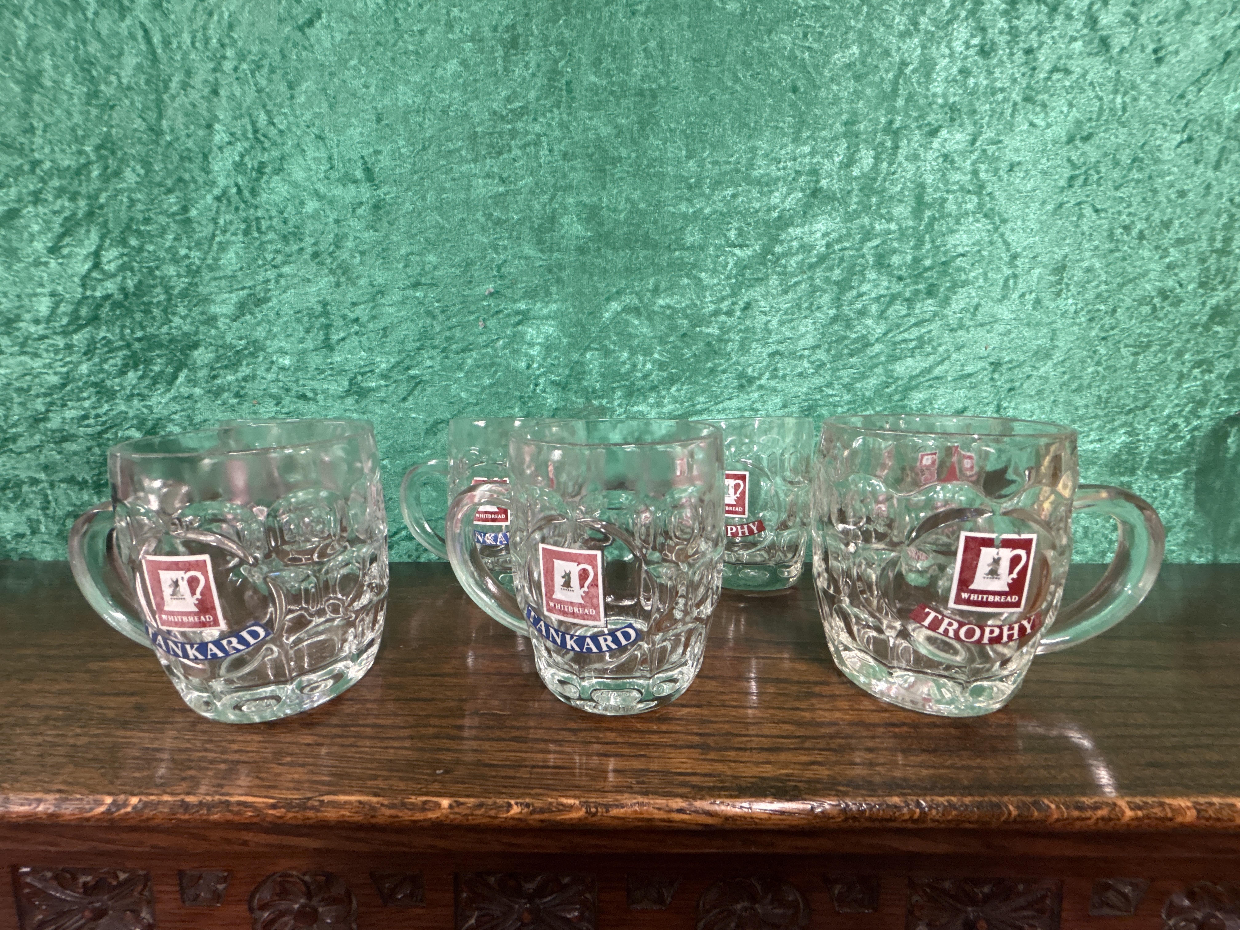 A Collection of Five Vintage Whitbread Glass Miniature Tankards
