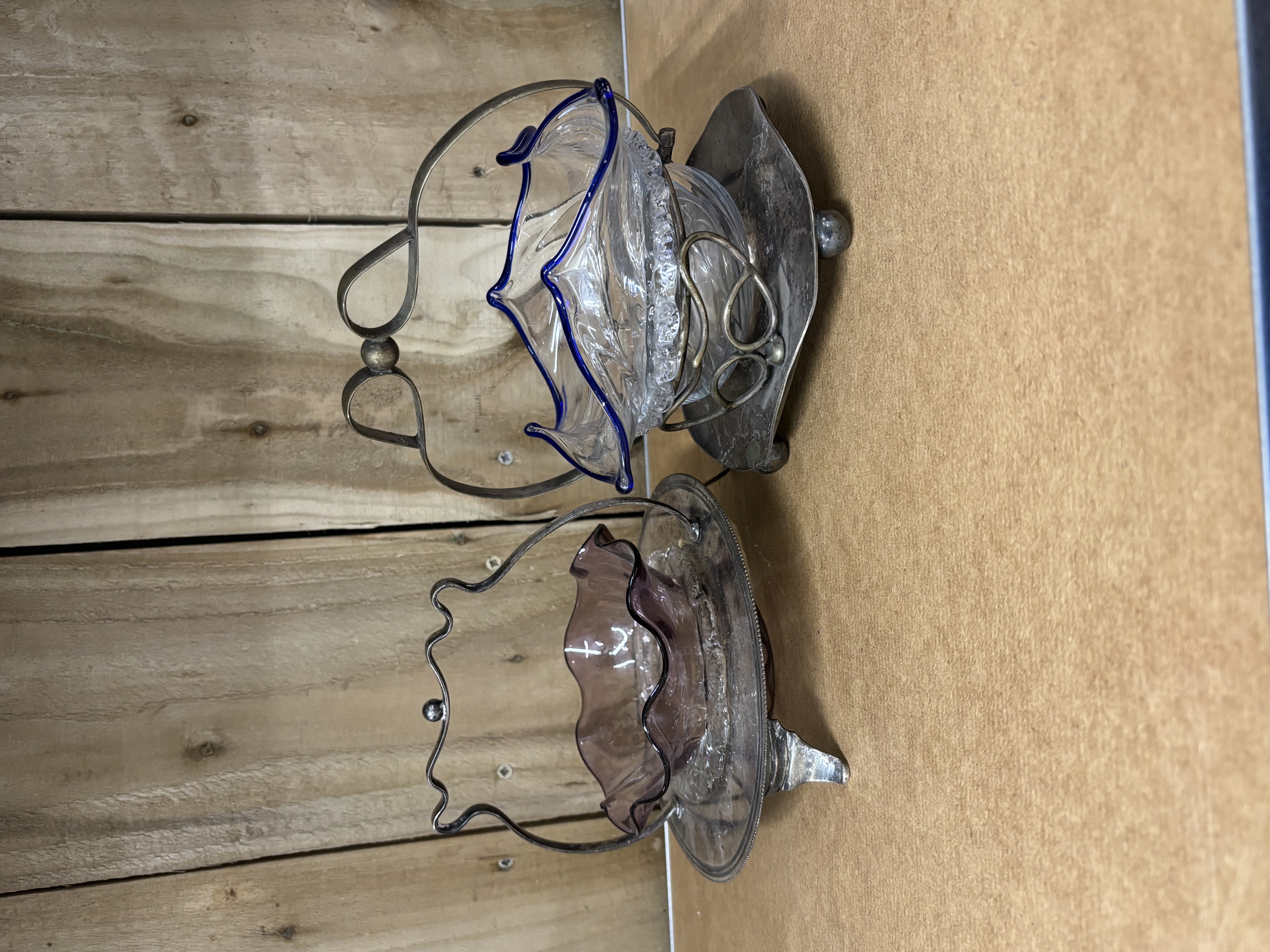 A Pair of Vintage Silver-Toned Metal and Glass Decorative Bowls