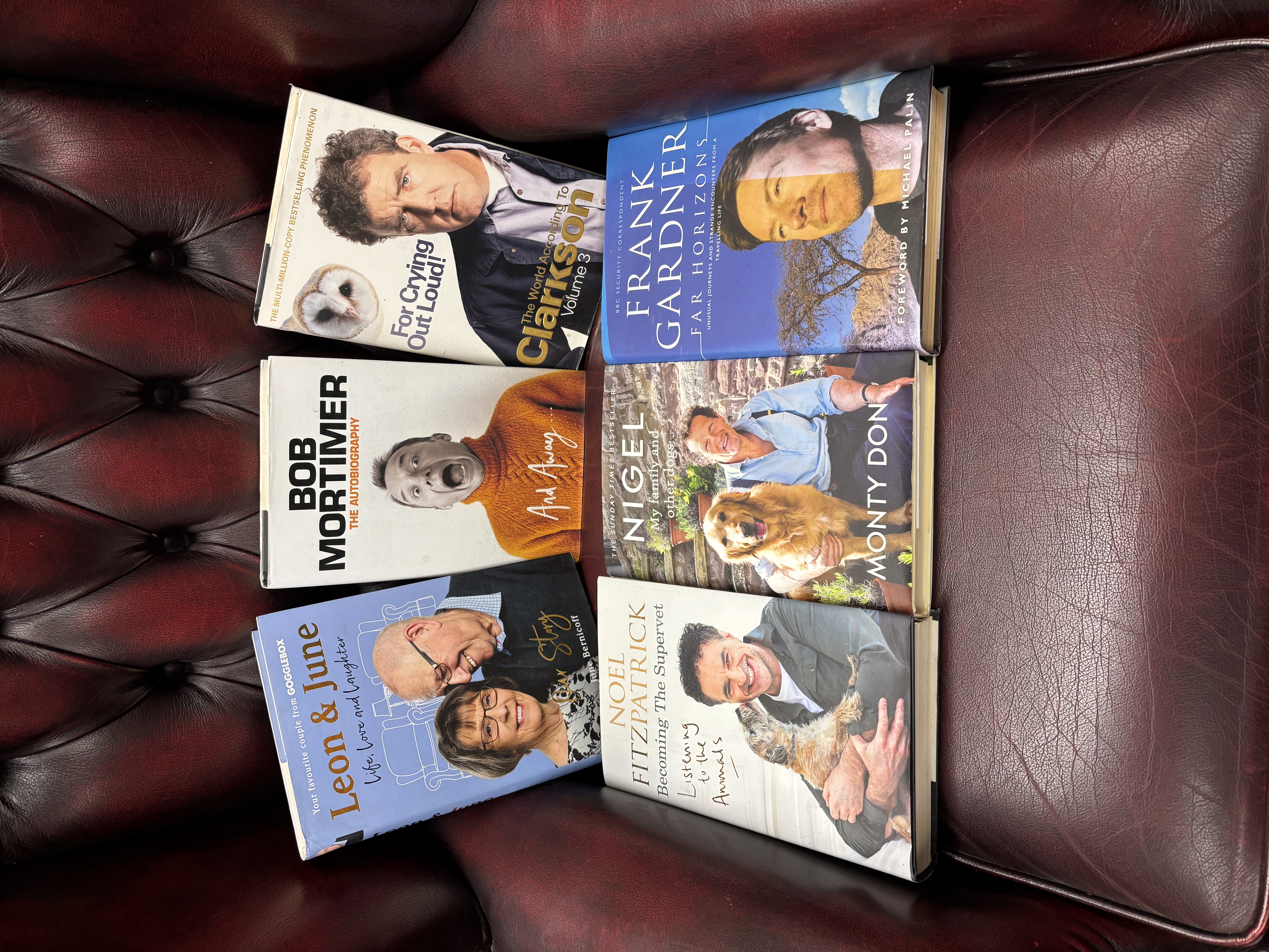 Six autobiographies to include Bob Mortimer, Jeremy Clarkson, Noel Fitzpatrick, Monty Don, Frank Gardner and Leon & June (from Gogglebox)