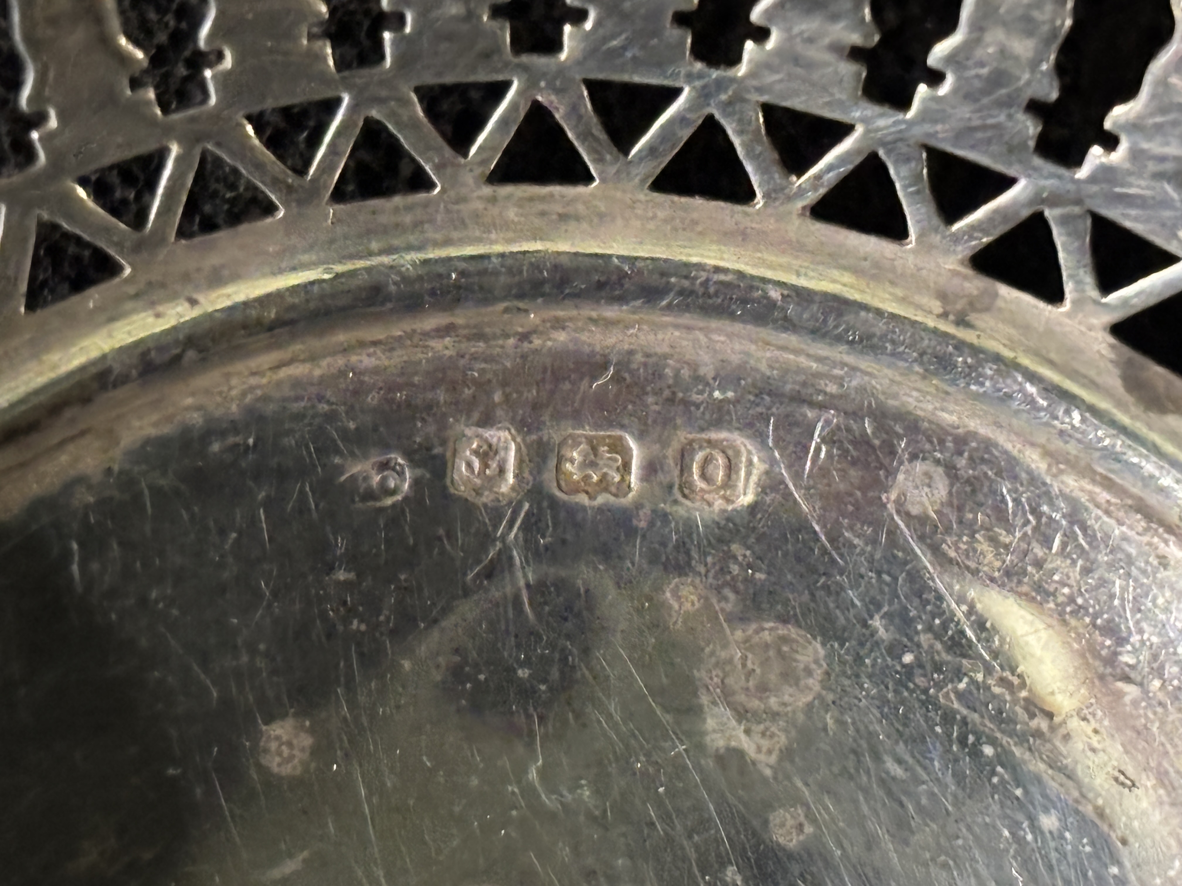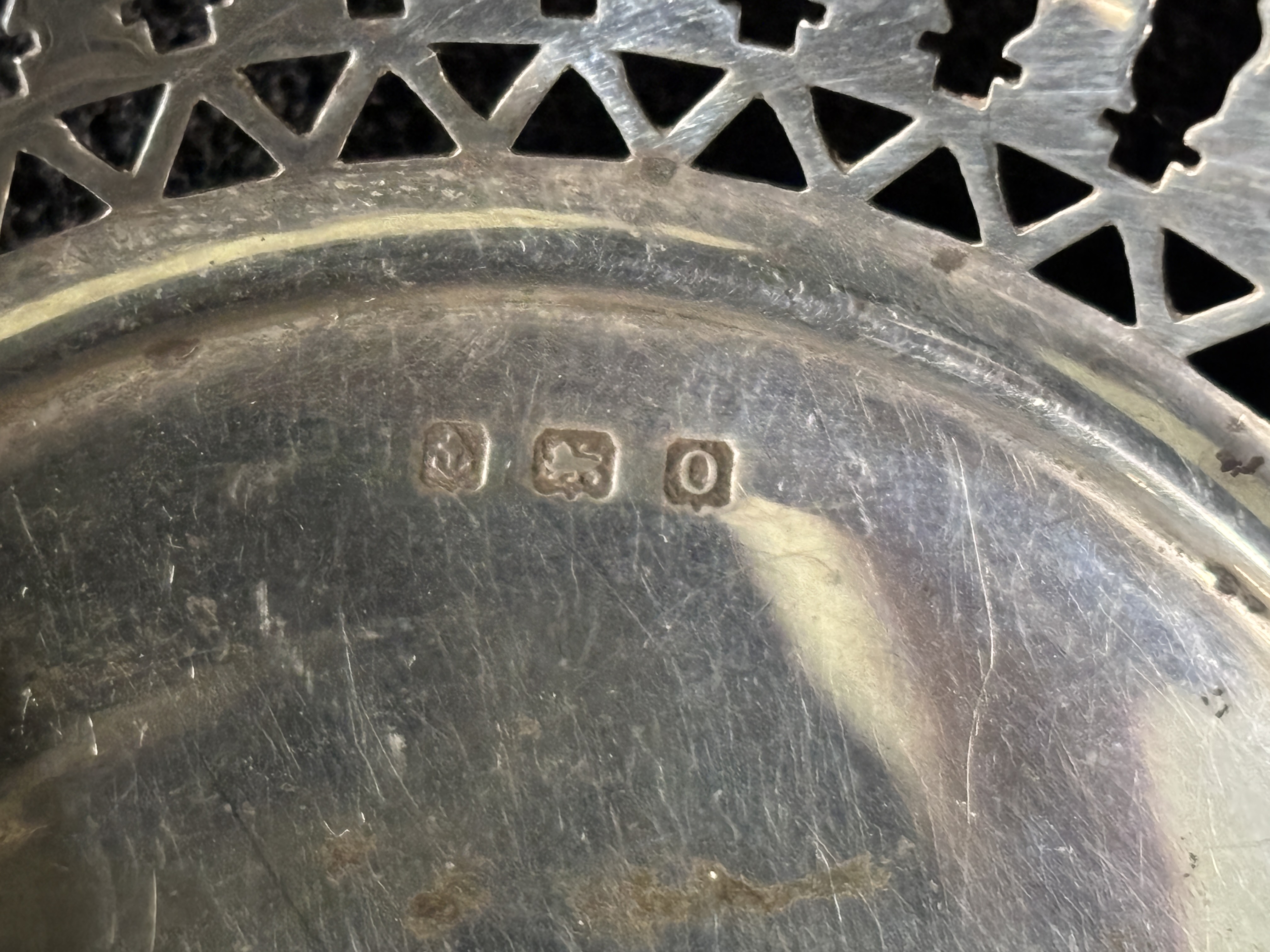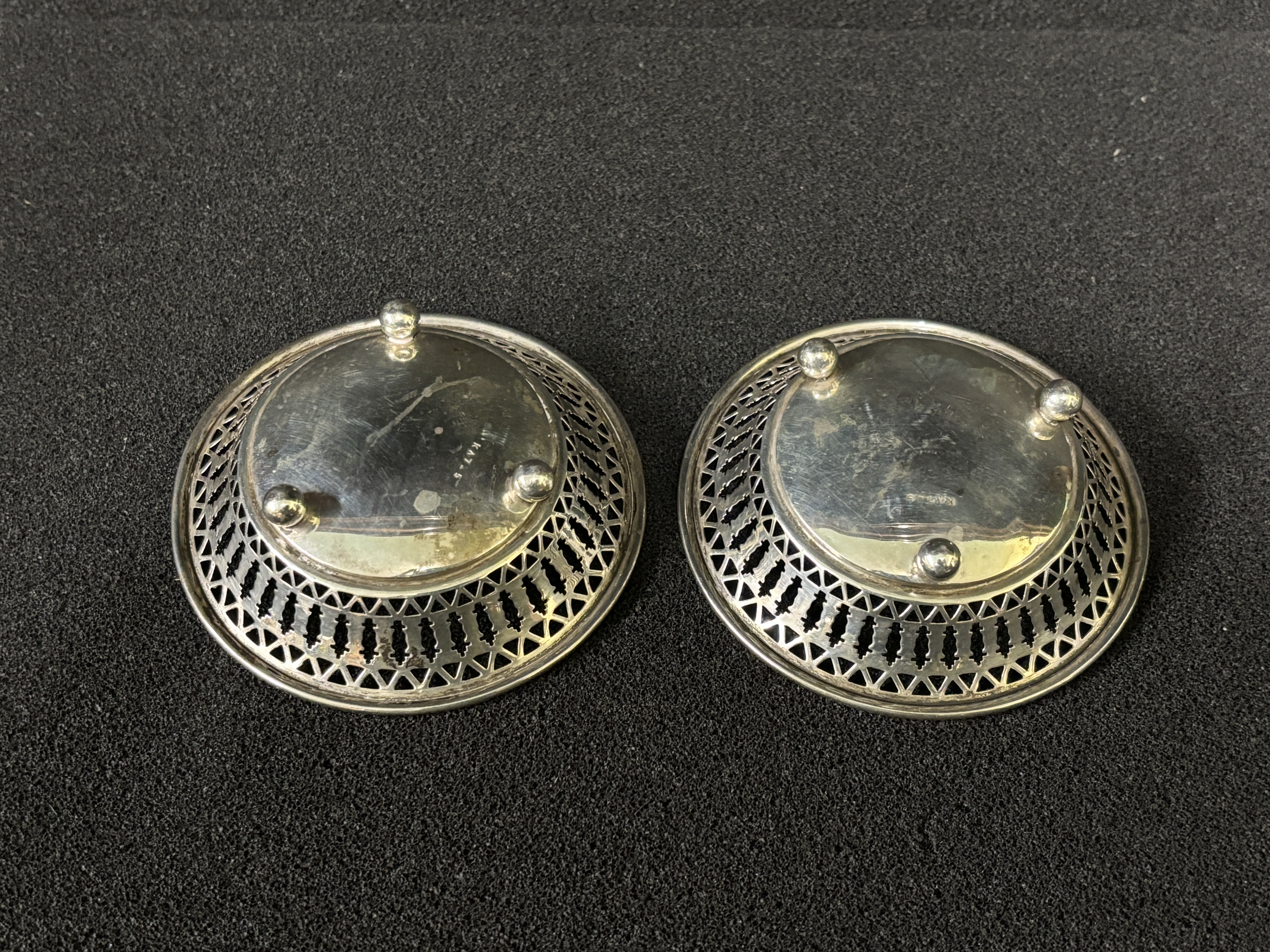 A pair of HM silver dishes on three feet weighing 48.79 cm. Diameter 8 cm