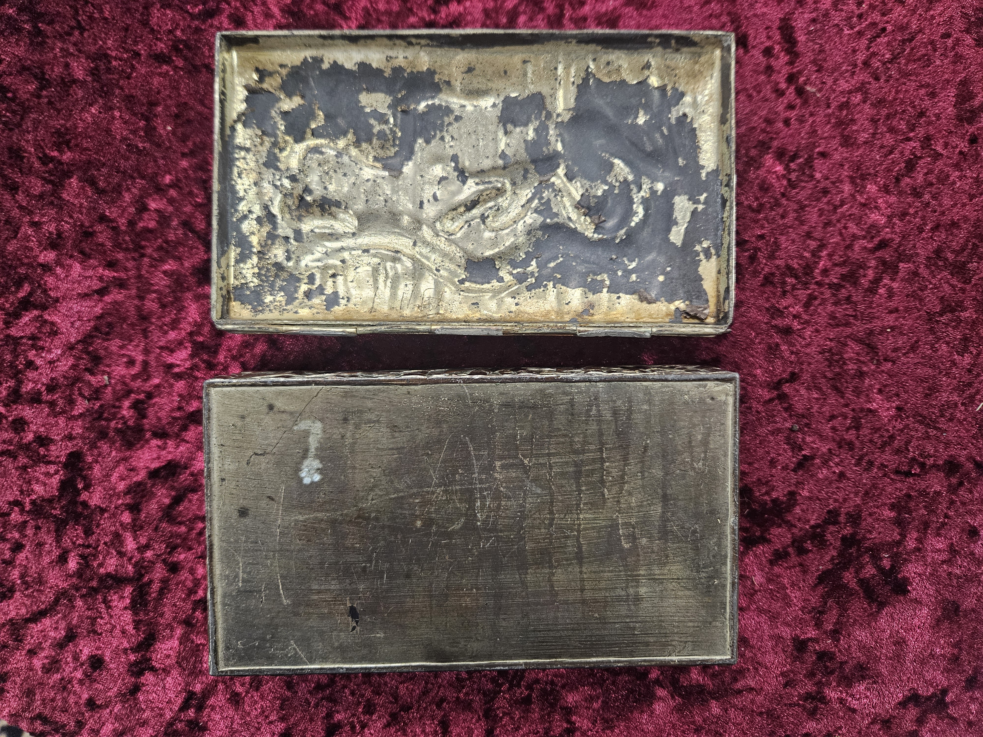 An Oriental metal alloy dragon trinket cigarette box,...