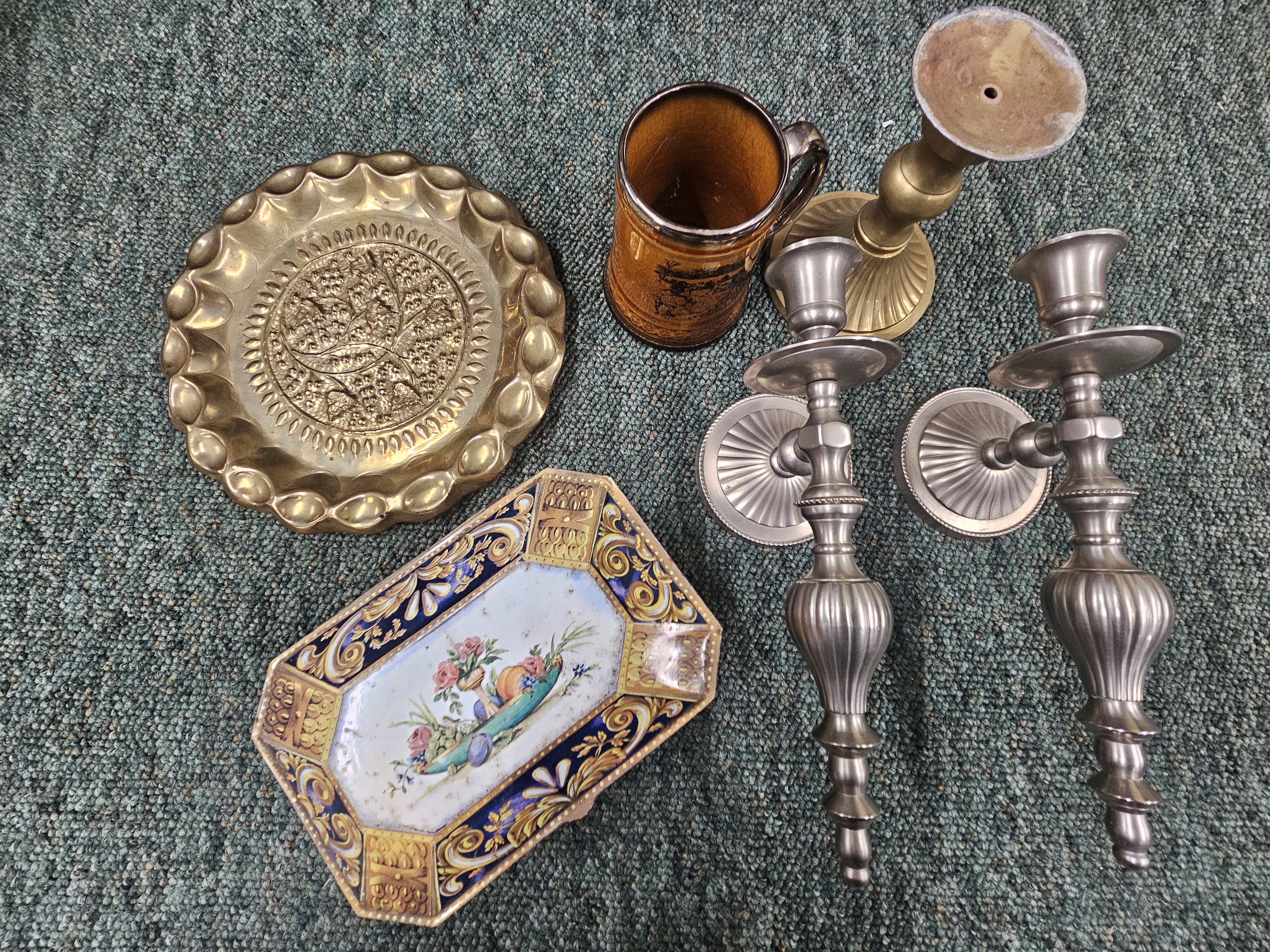 A pair of modern metal wall sconces, and other miscellaneous interest