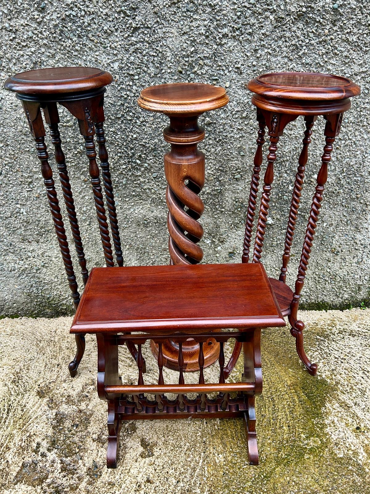 Three torcheres and a Magazine table