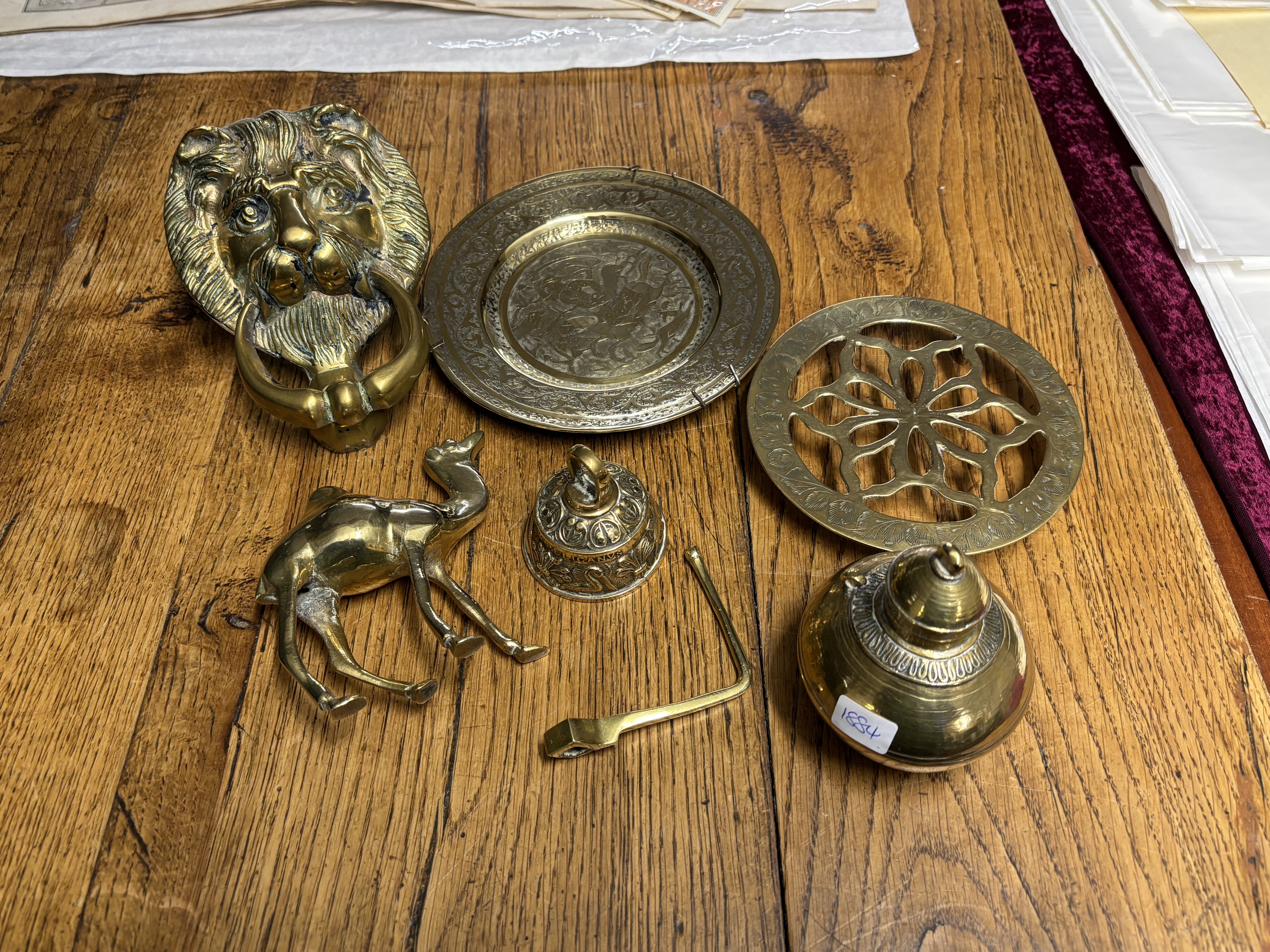 A quantity of Brass to include a Lion’s head door knocker, trivet etc
