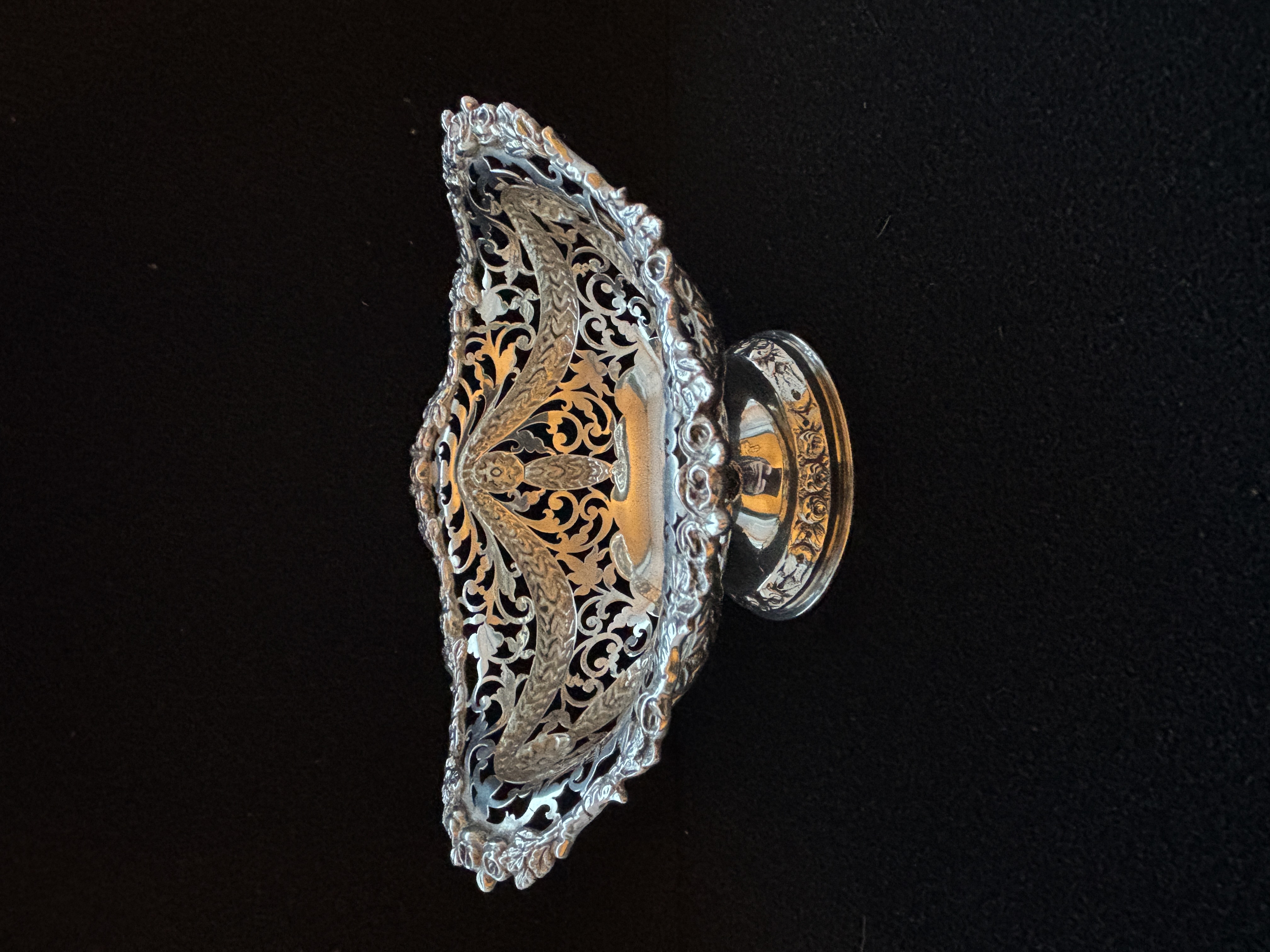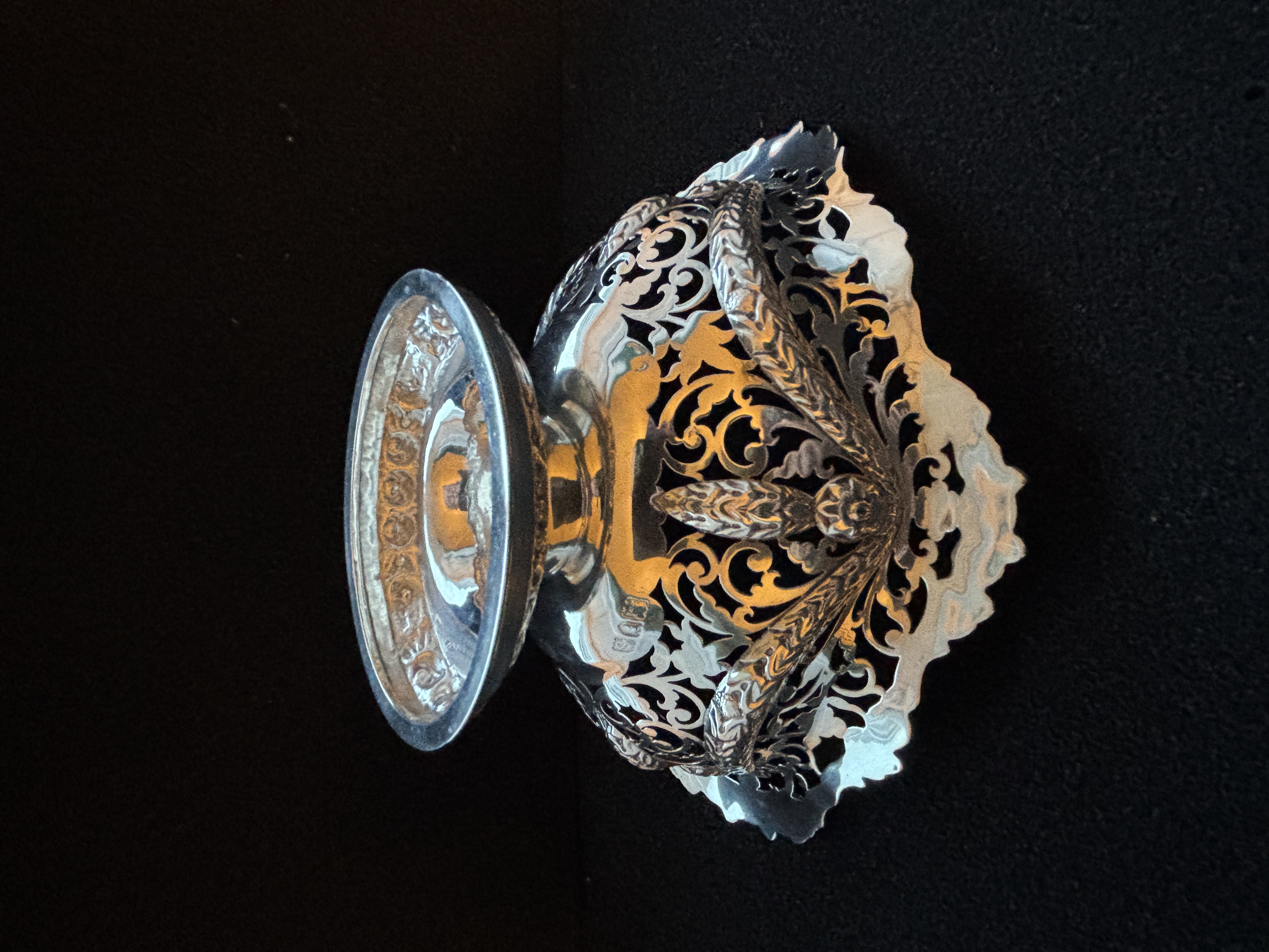 A 1913 HM silver dish on stand being...