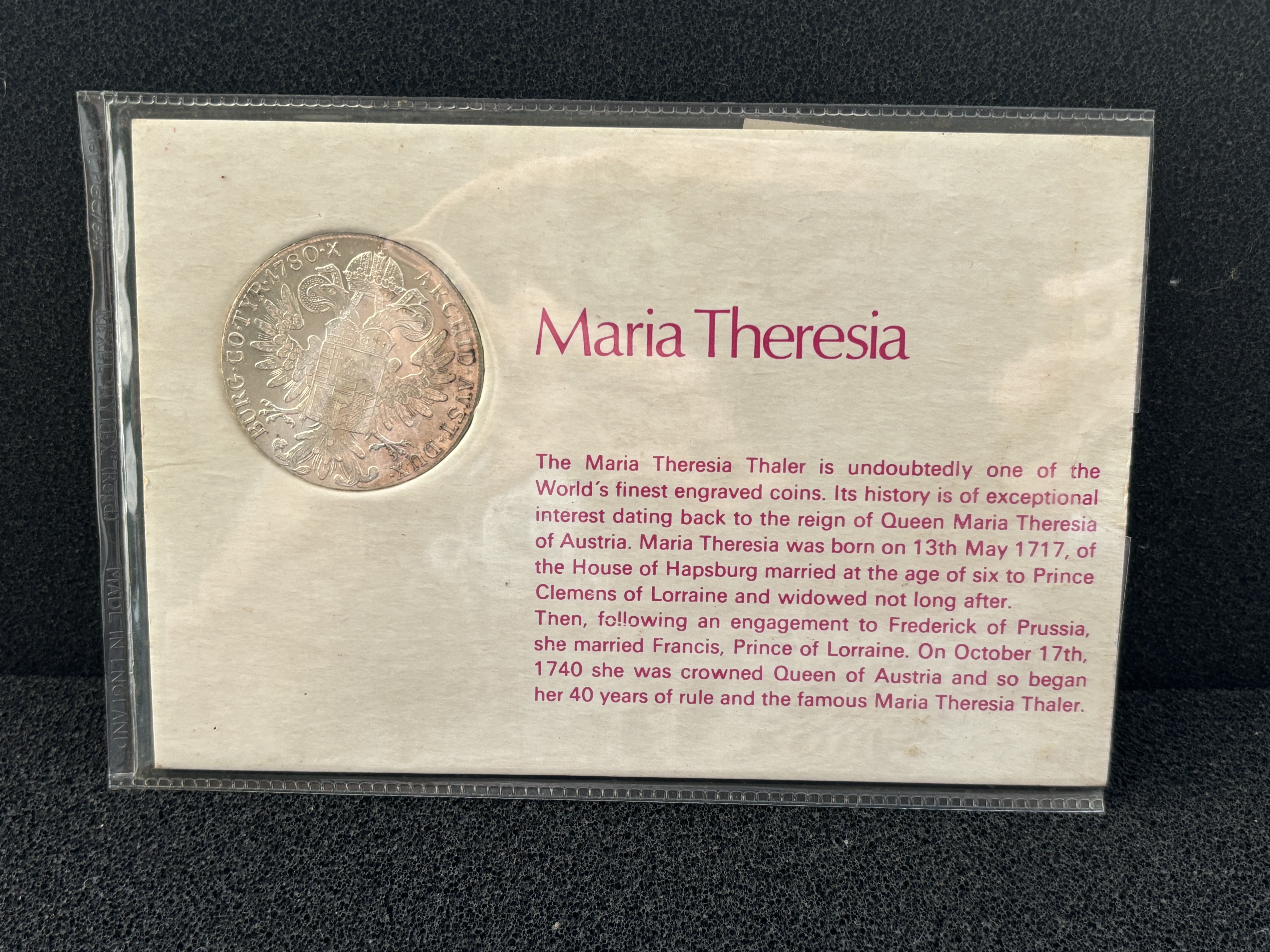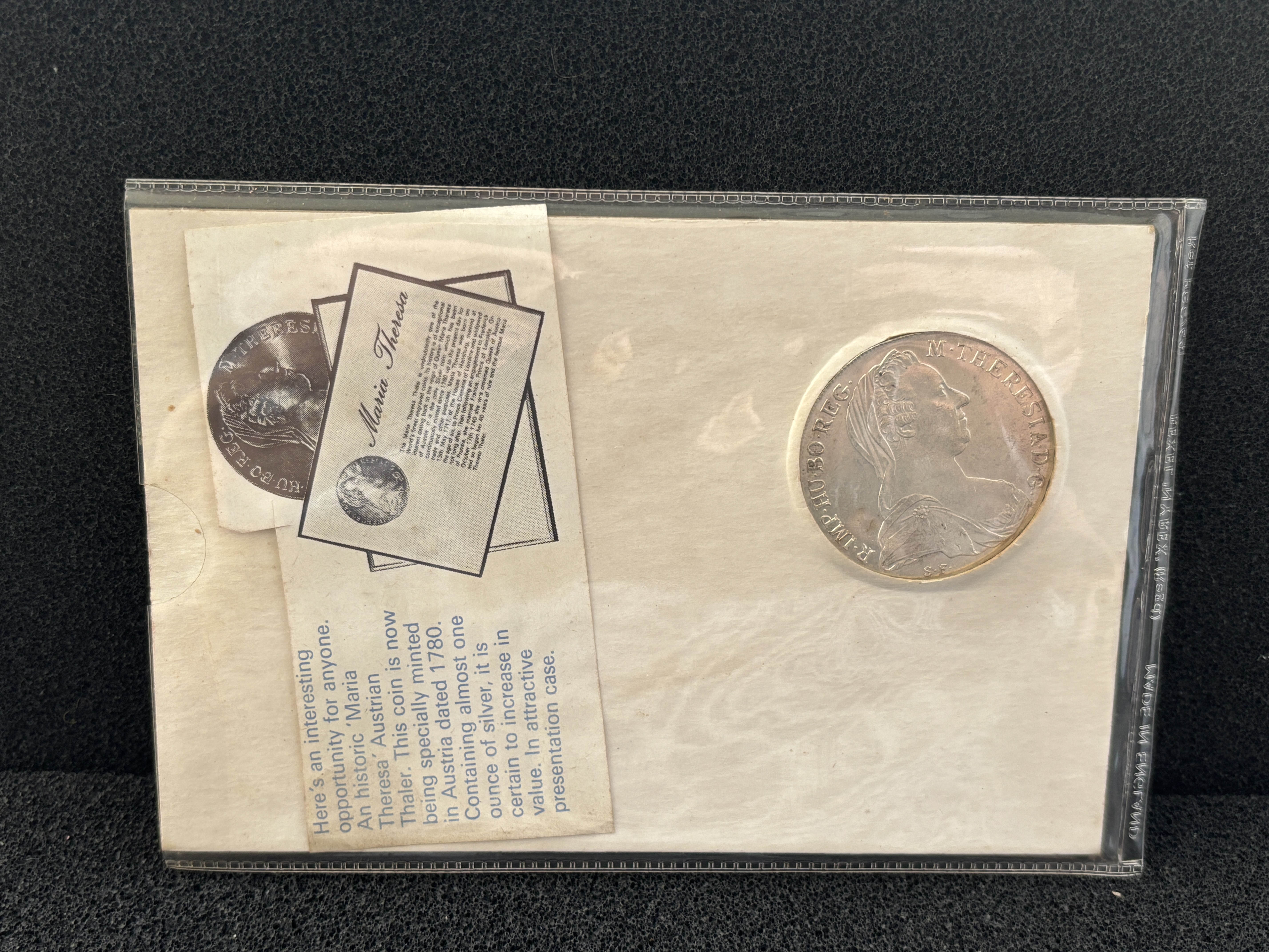 A Maria Theresia coin weighing 28 gm in original presentation pack