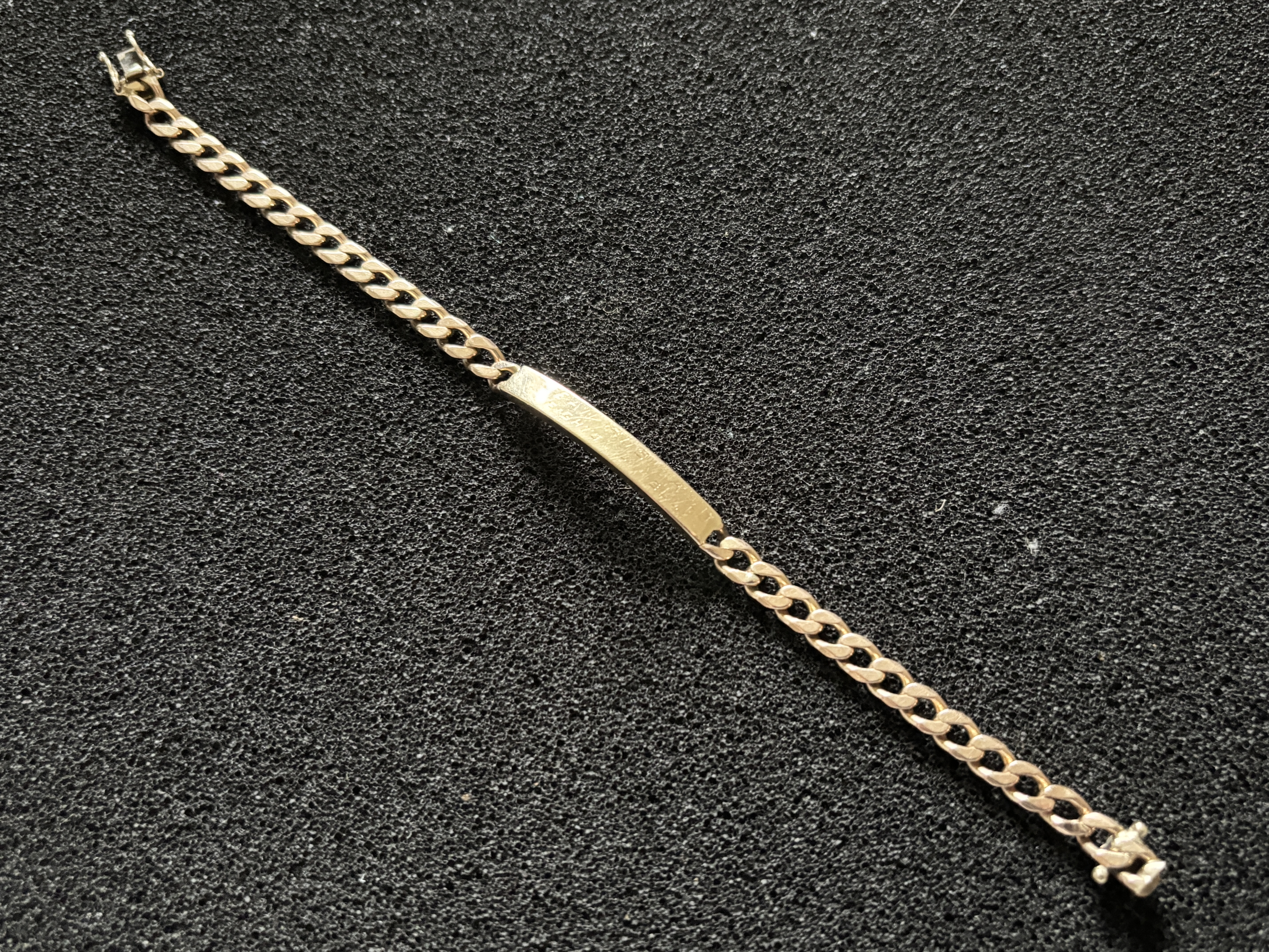 A ladies gold identity bracelet, engraved both front and back weighing 14.46 gm