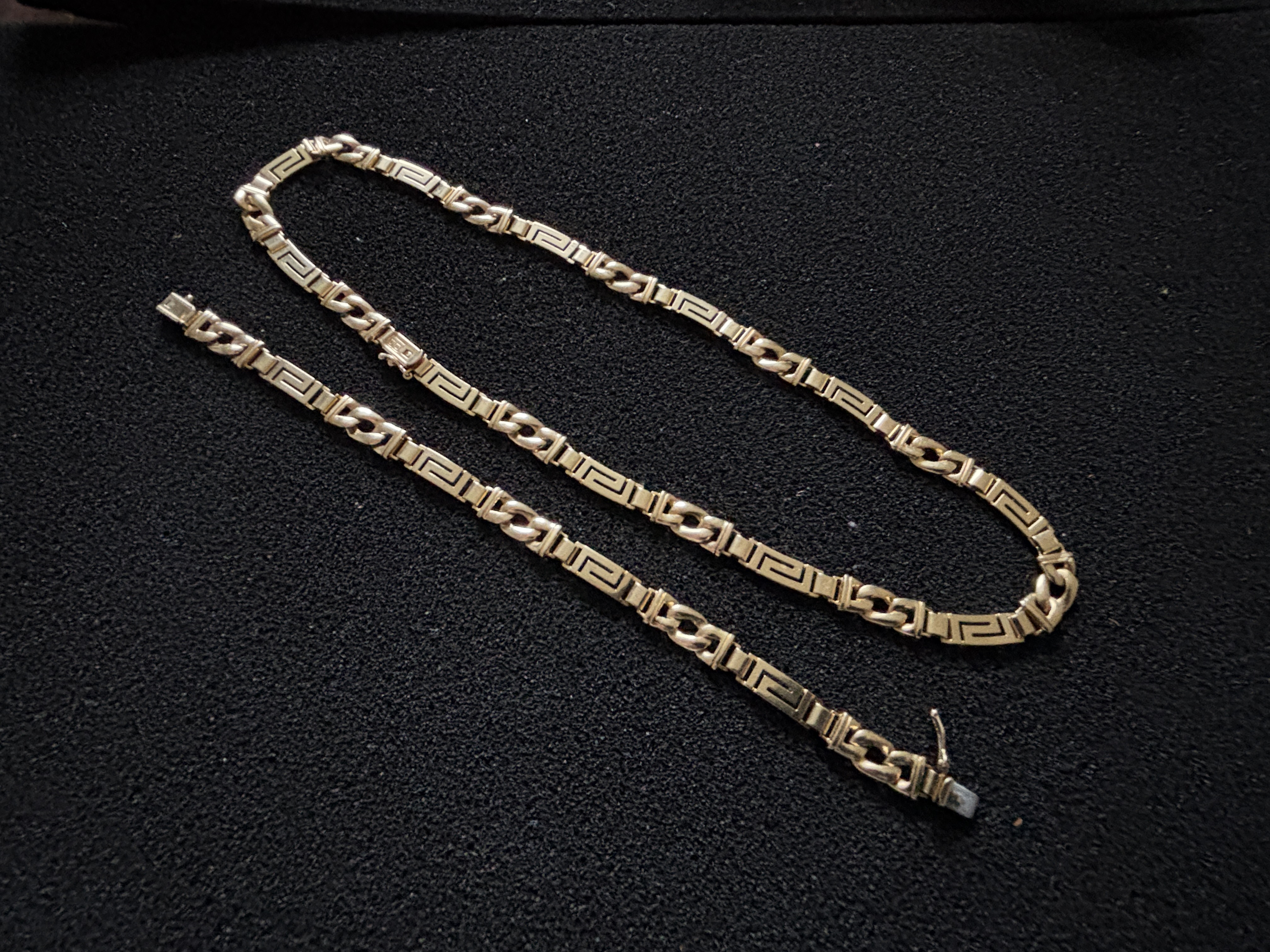 A 14ct (565) Greek Key Necklace and matching bracelet weighing 43.2 gm